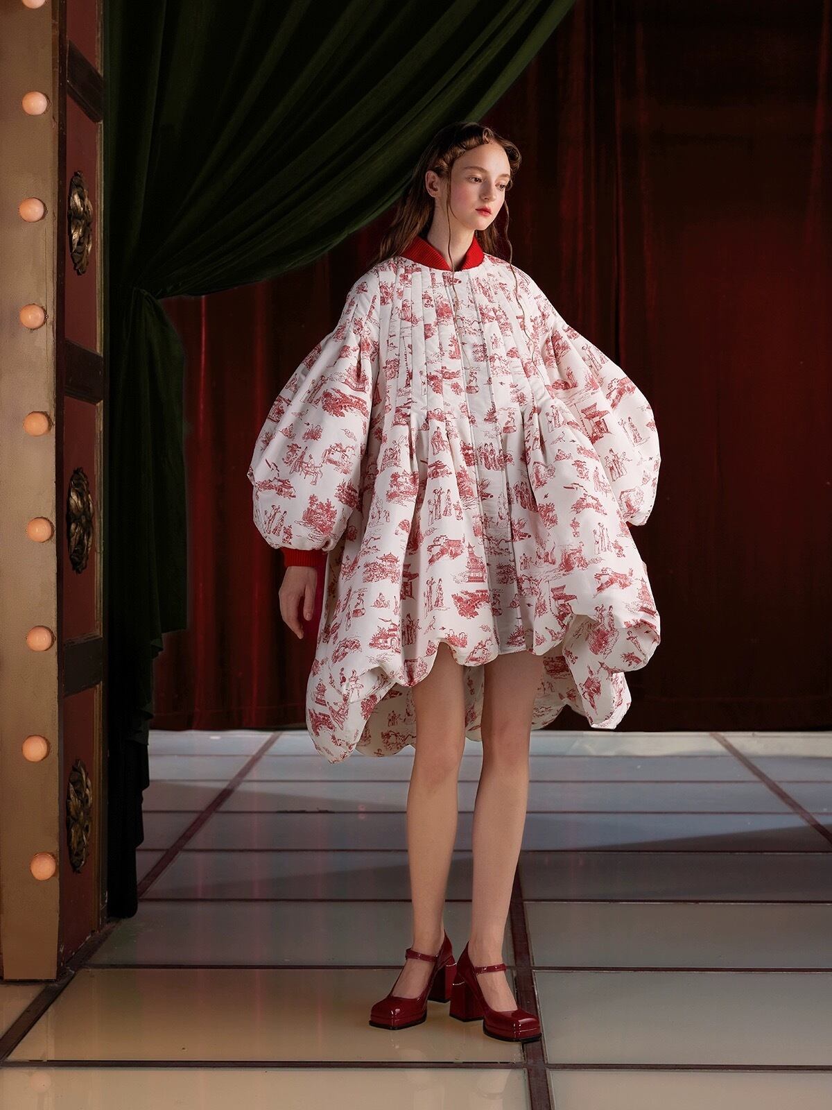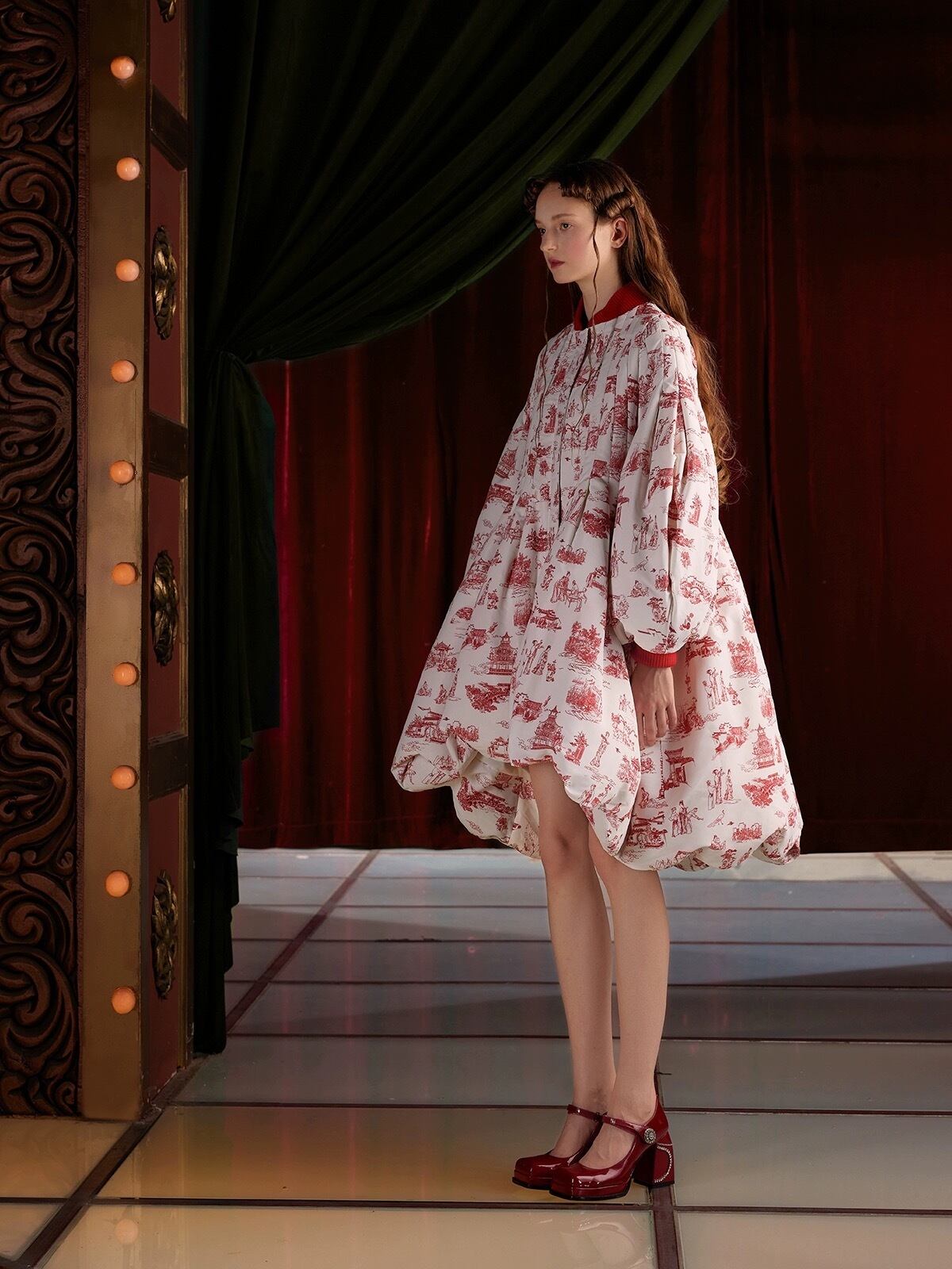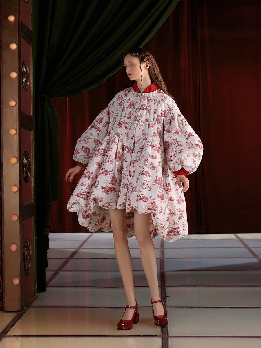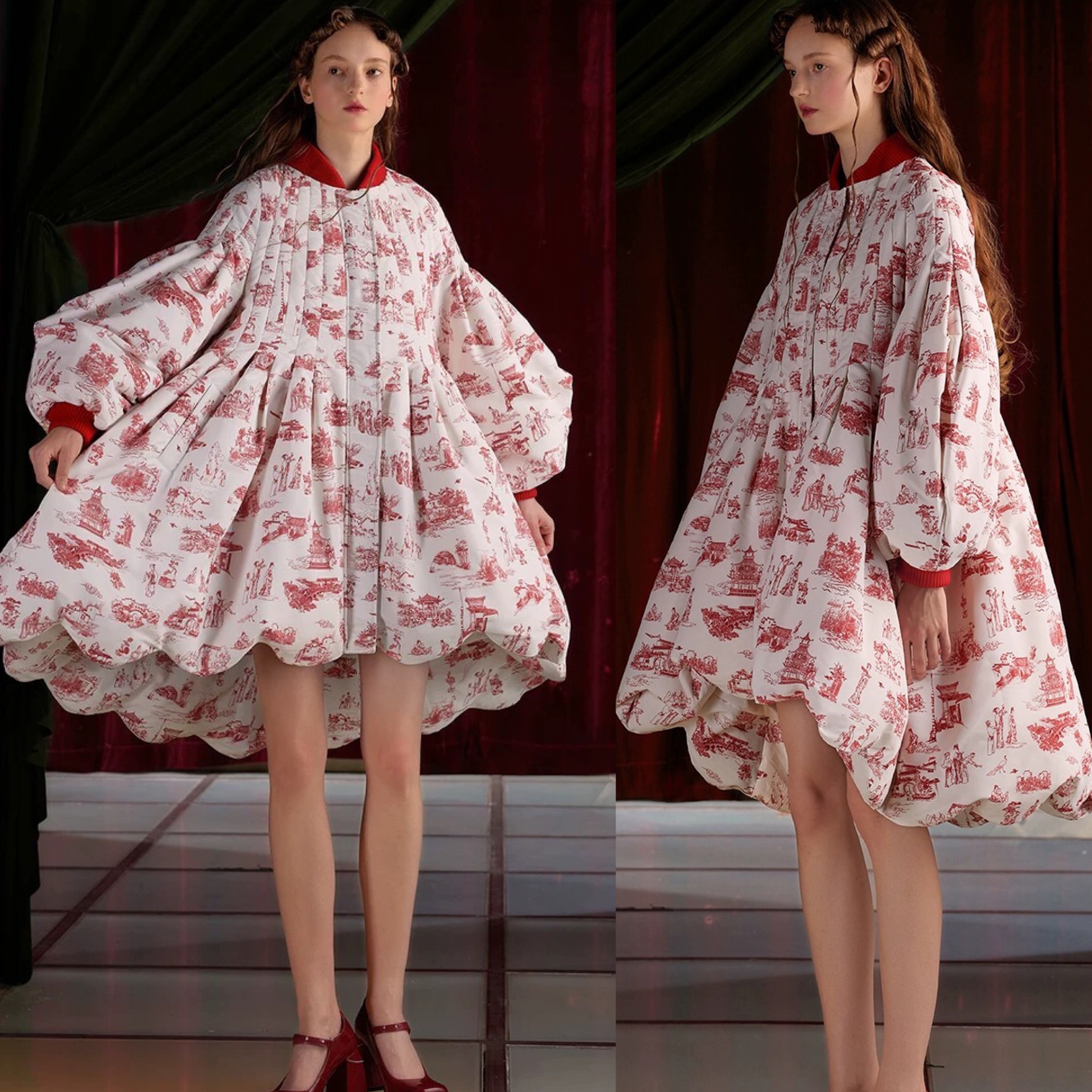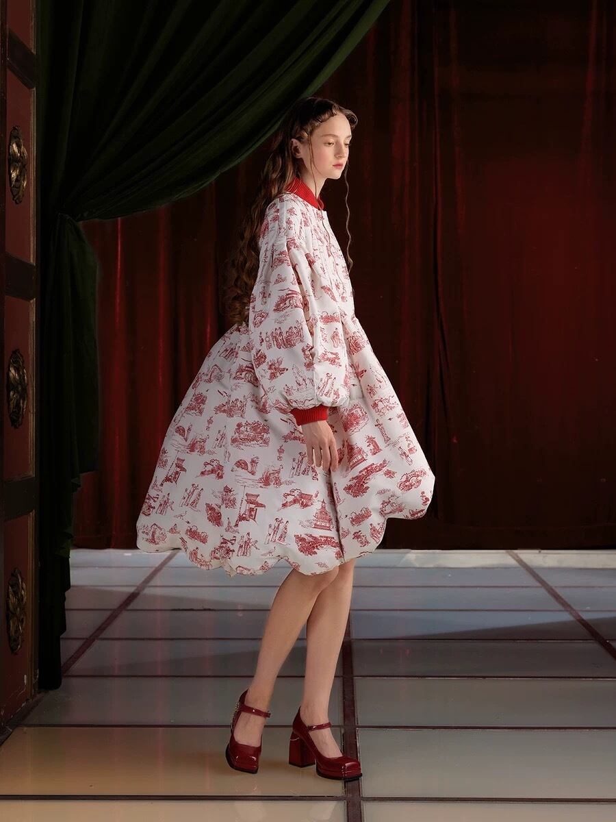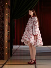 赤 白 ゆったり チュニック ワンピース 花柄 ドレス