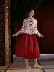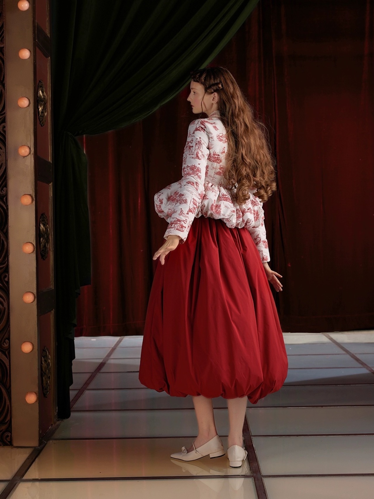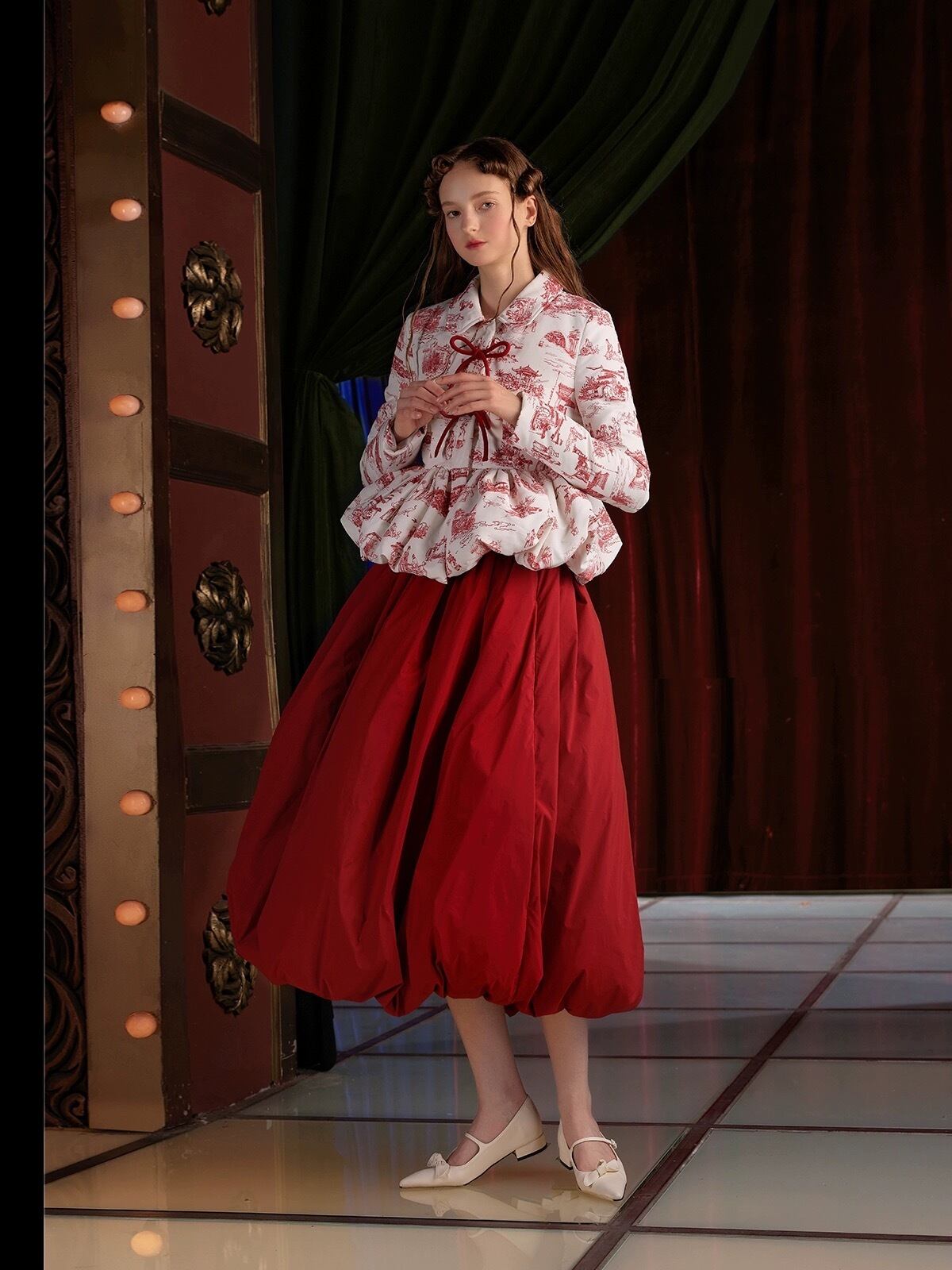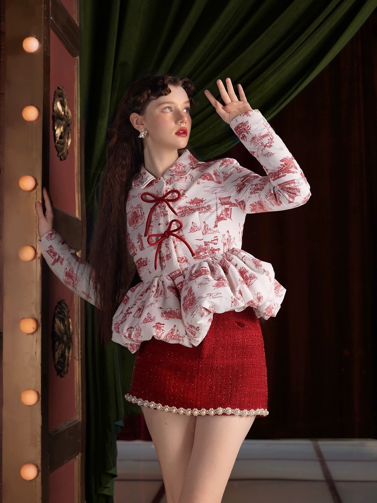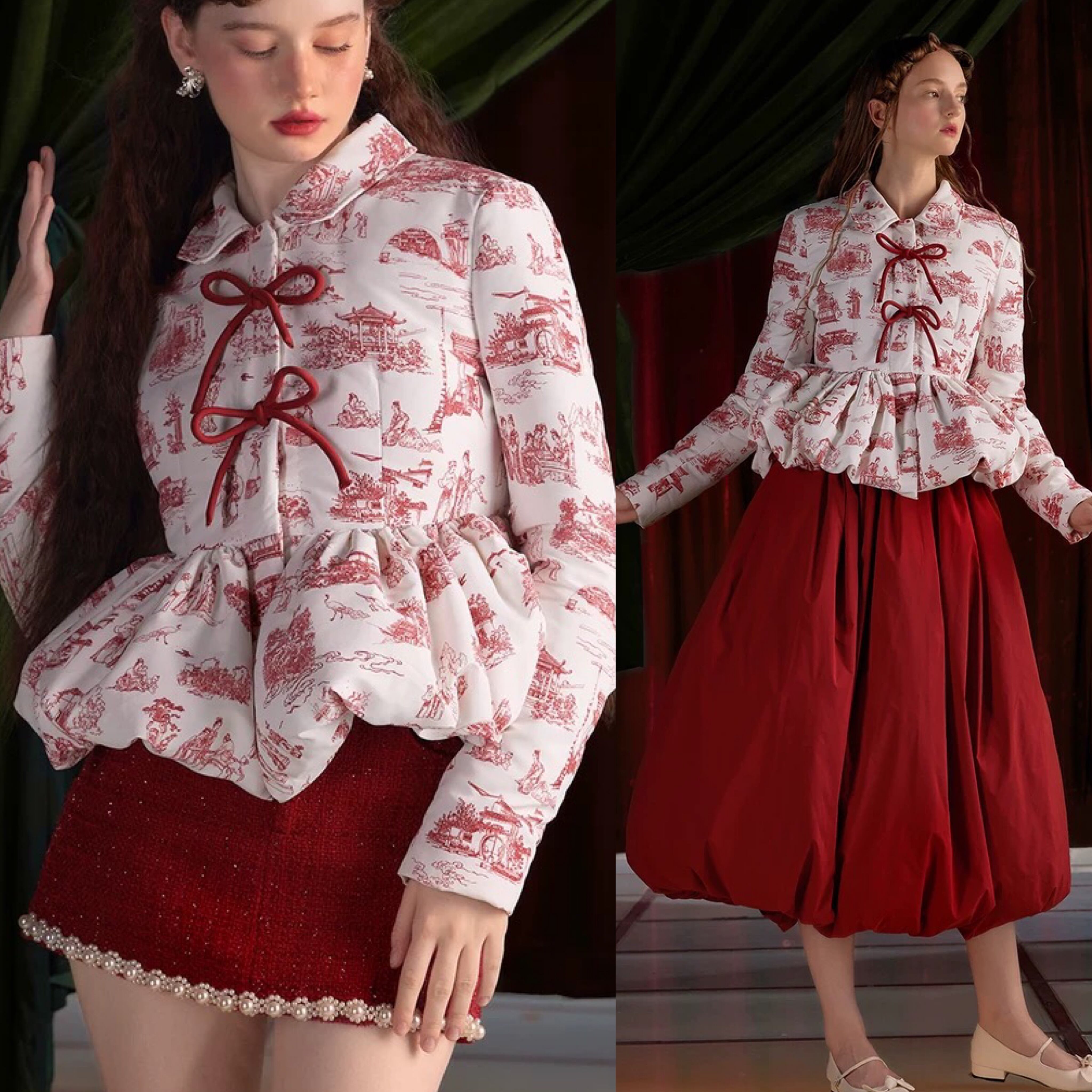 ジャケット アウター 赤 白 花柄 リボン コート カーディガン