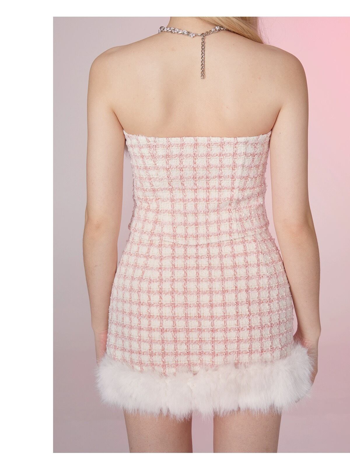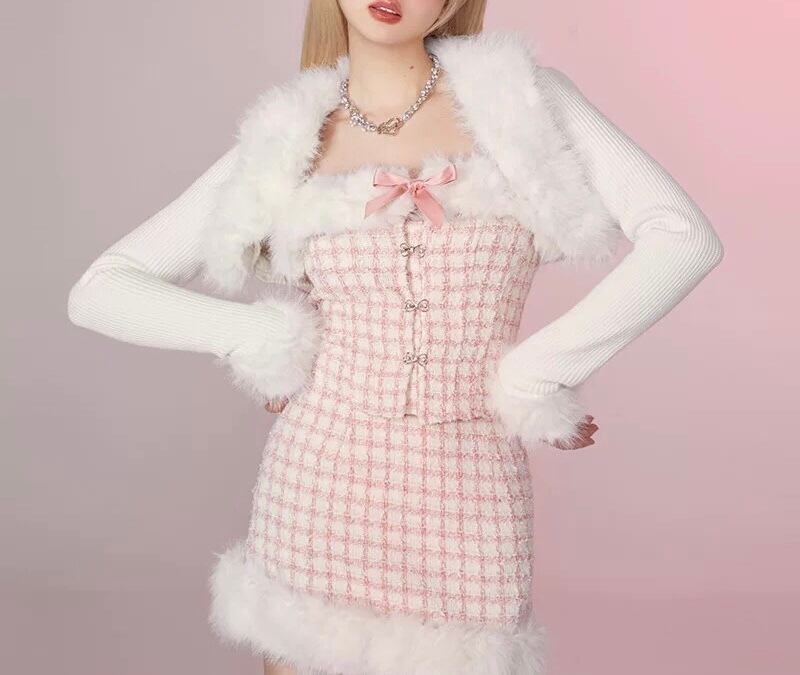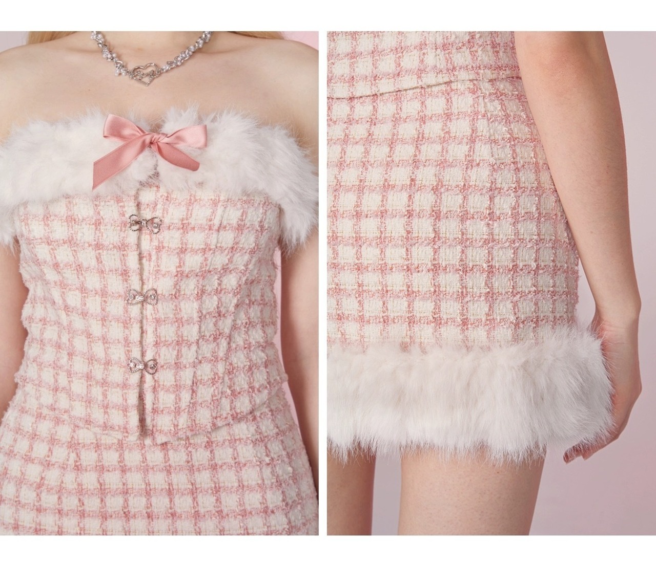 チェック トップス スカート セットアップ ピンク リボン ガーリー
