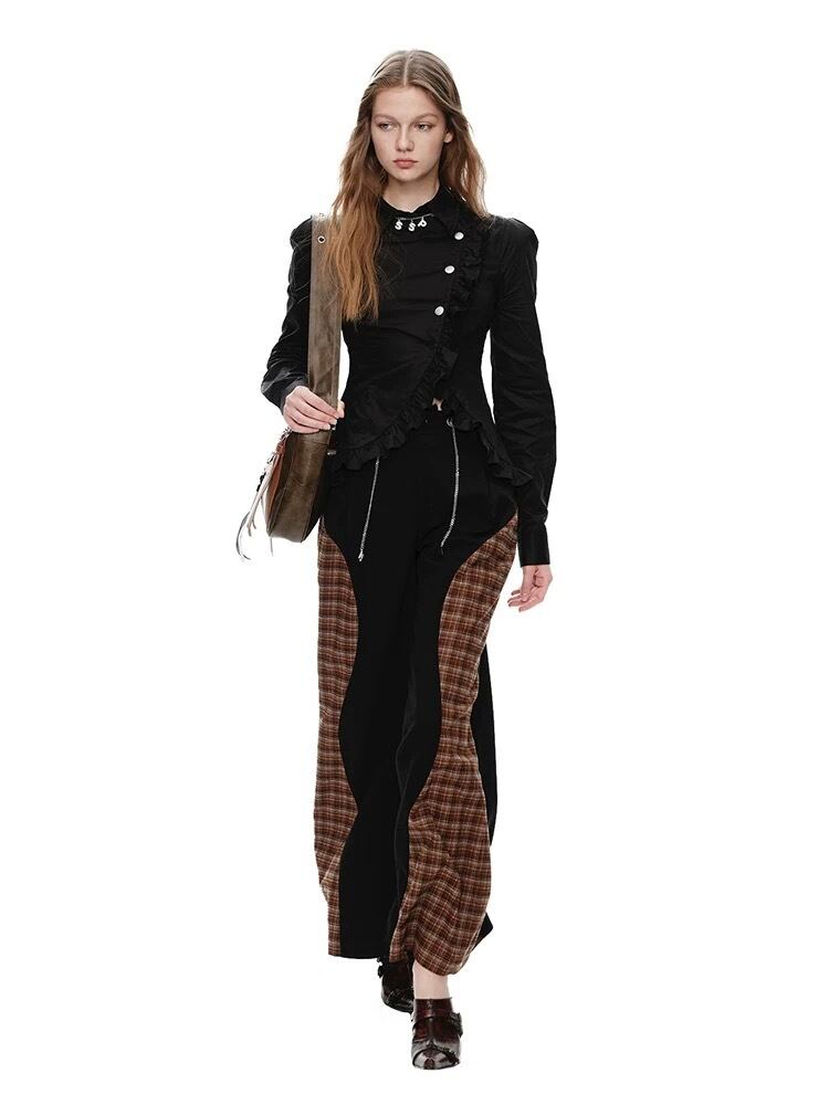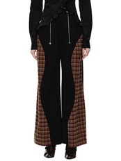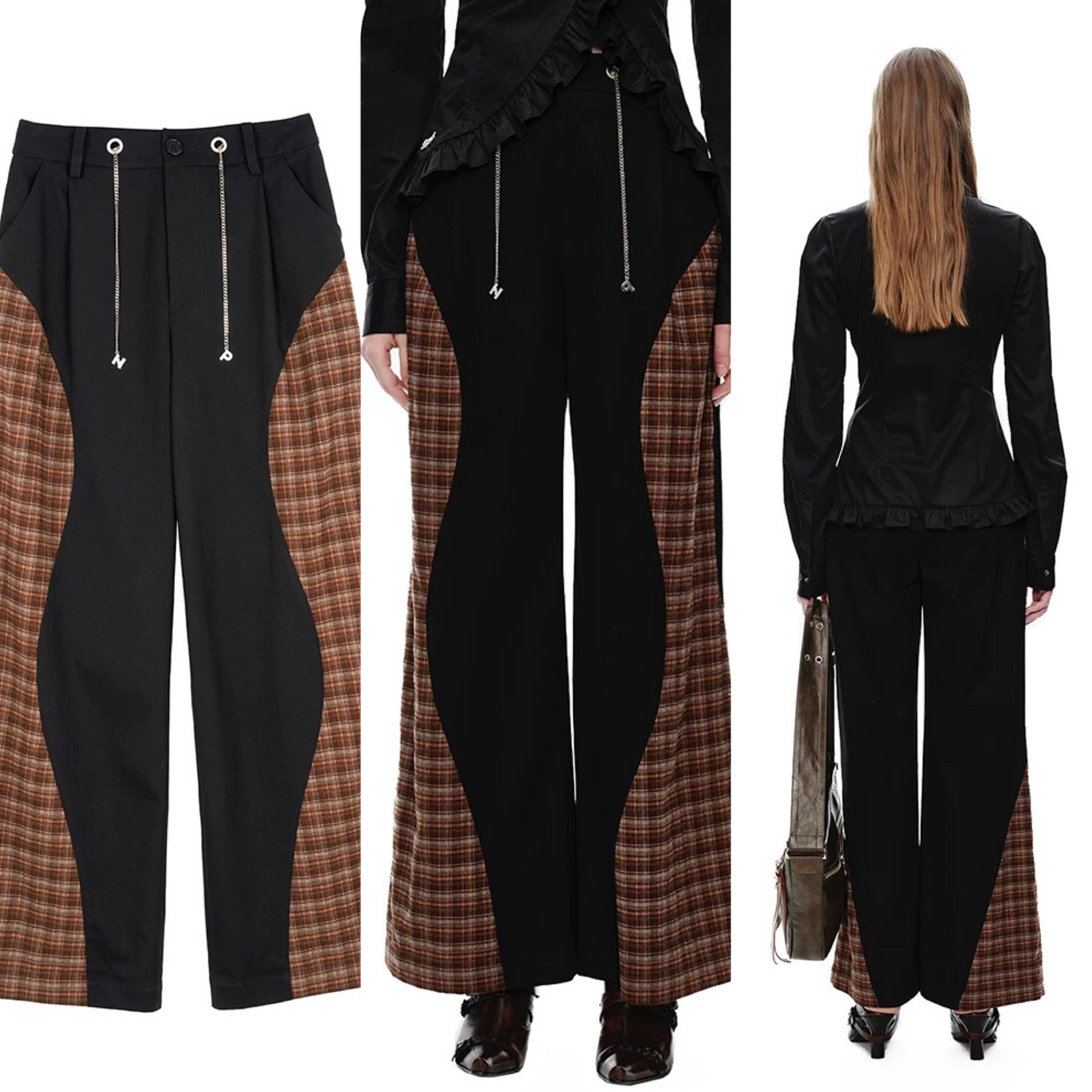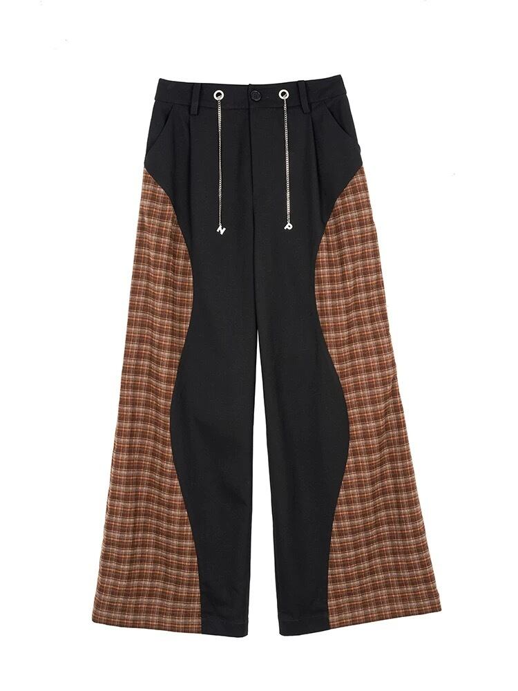 パンツ ズボン ボトムス 茶色 ベージュ チェック バイカラー スウェット