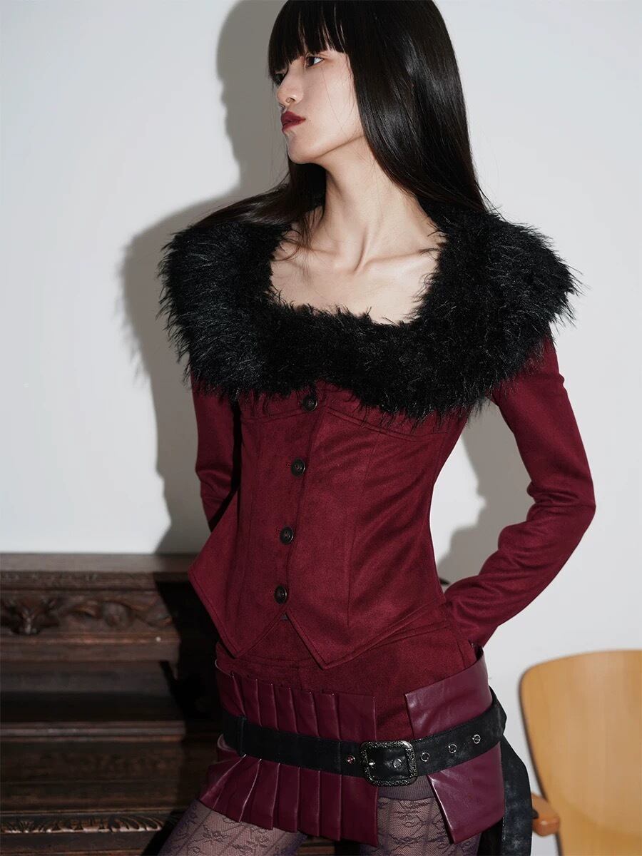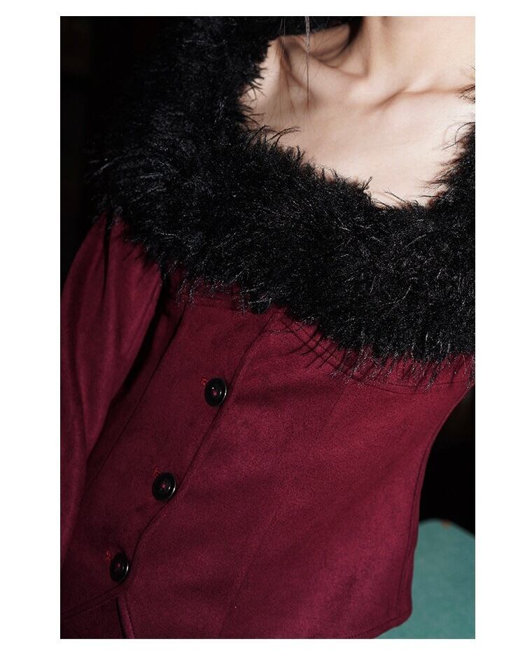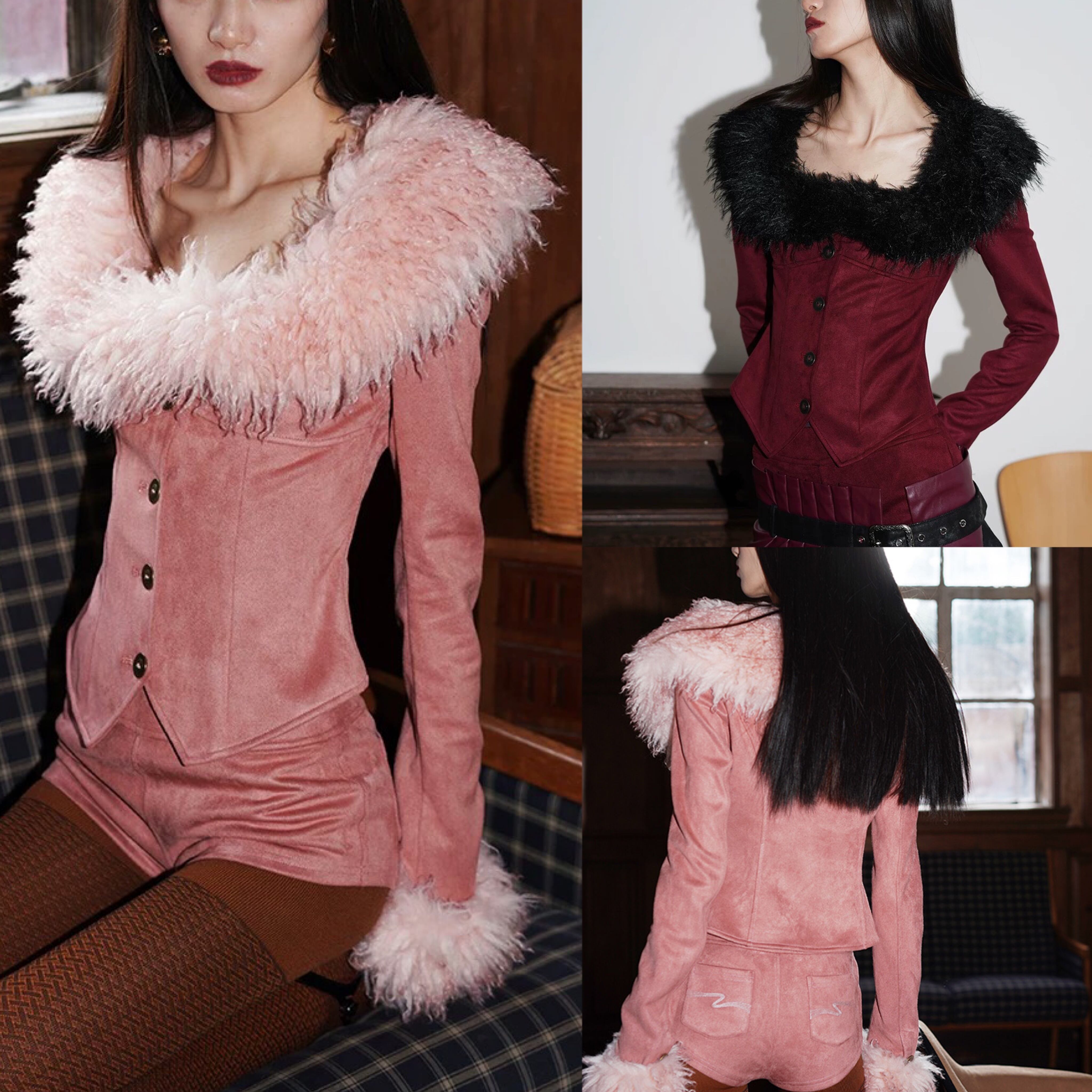 【ファー取り外し可能【2way】赤 ピンク ファー ジャケット アウター
