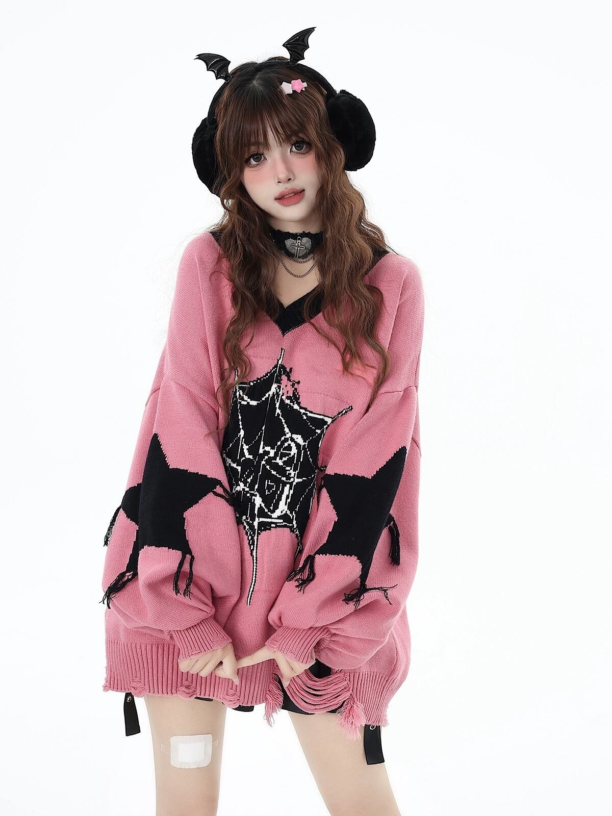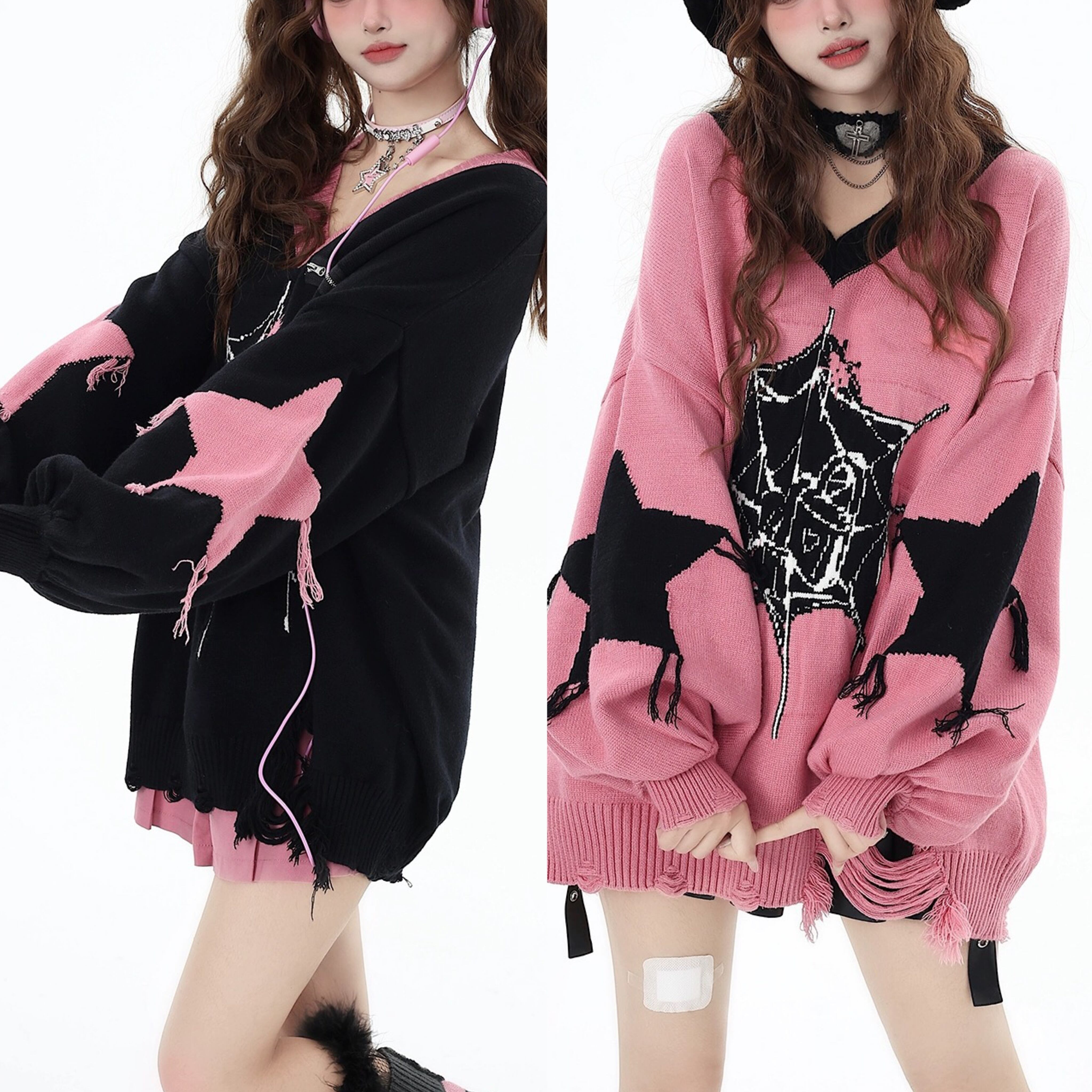 ニット セーター 星 ピンク カーディガン カジュアル ワンピース 黒 ピンク