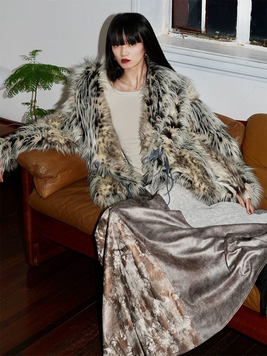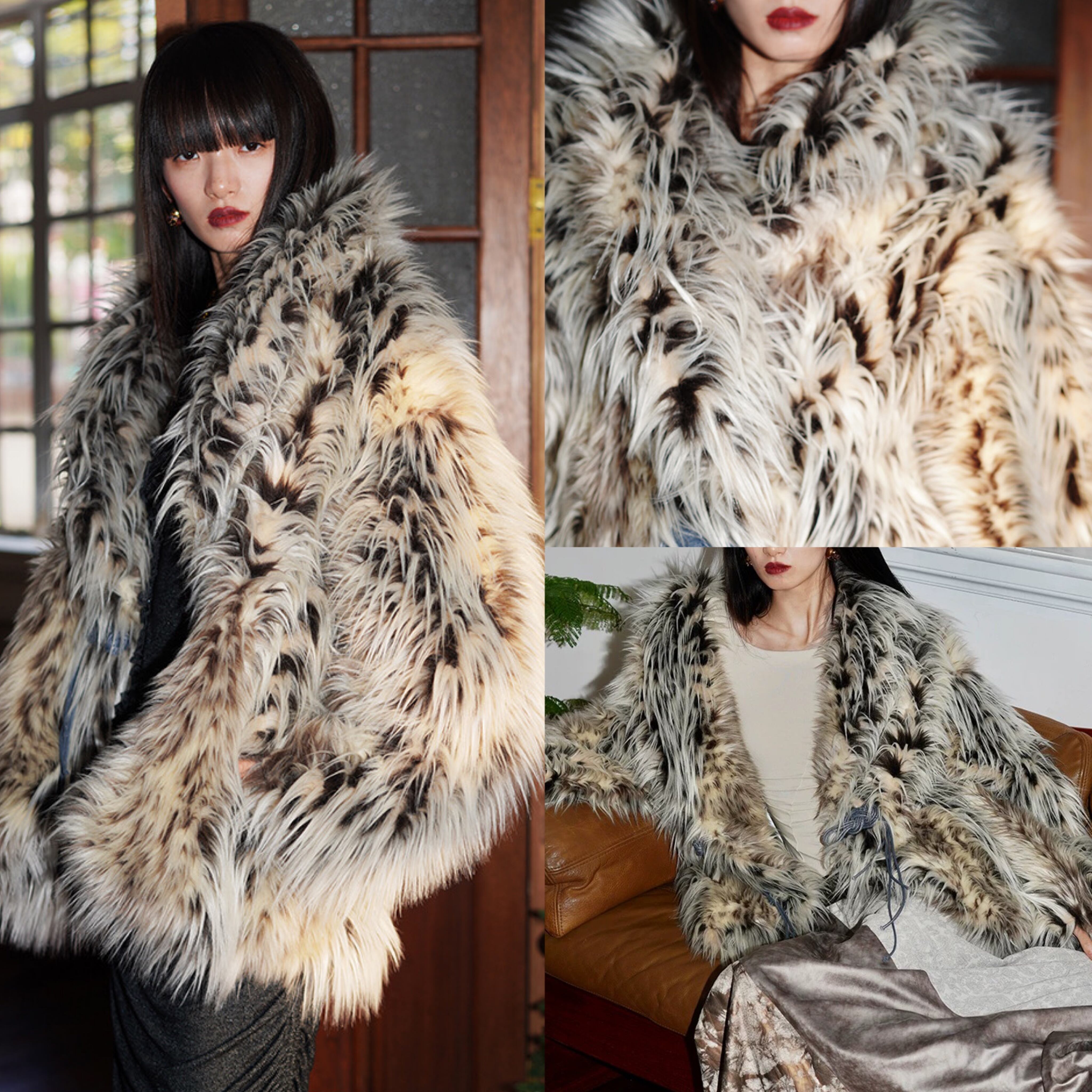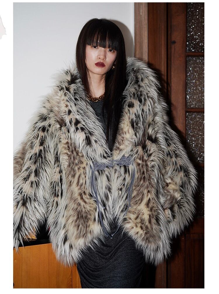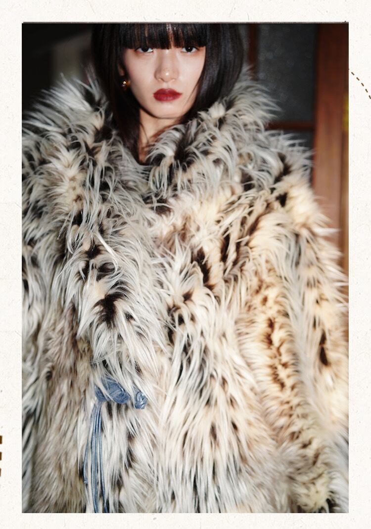 アニマル ファー ジャケット コート アウター グレー ベージュ レオパード