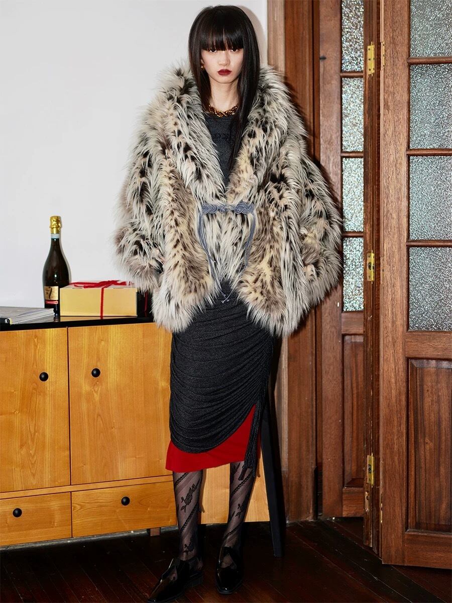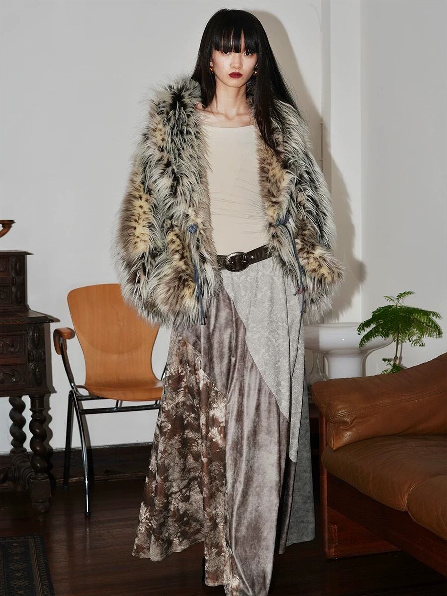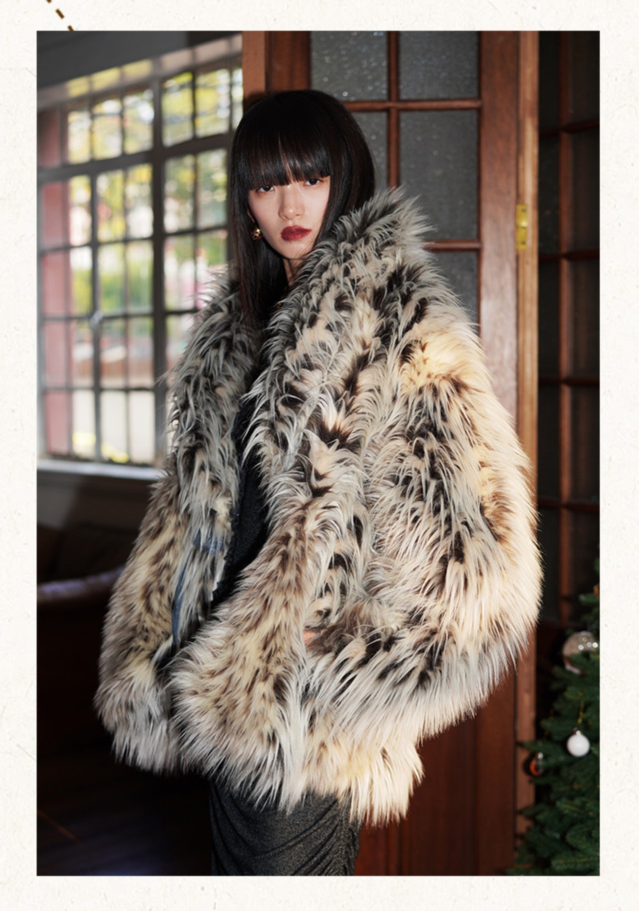 アニマル ファー ジャケット コート アウター グレー ベージュ レオパード