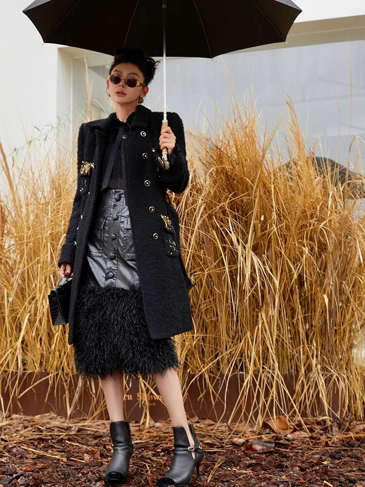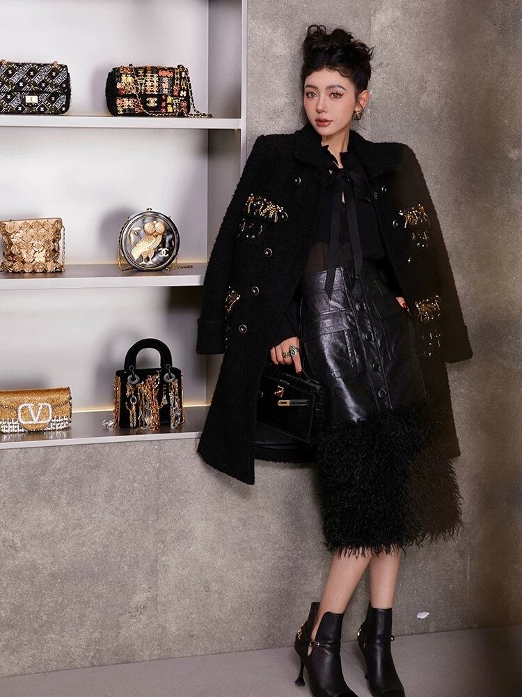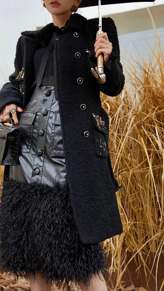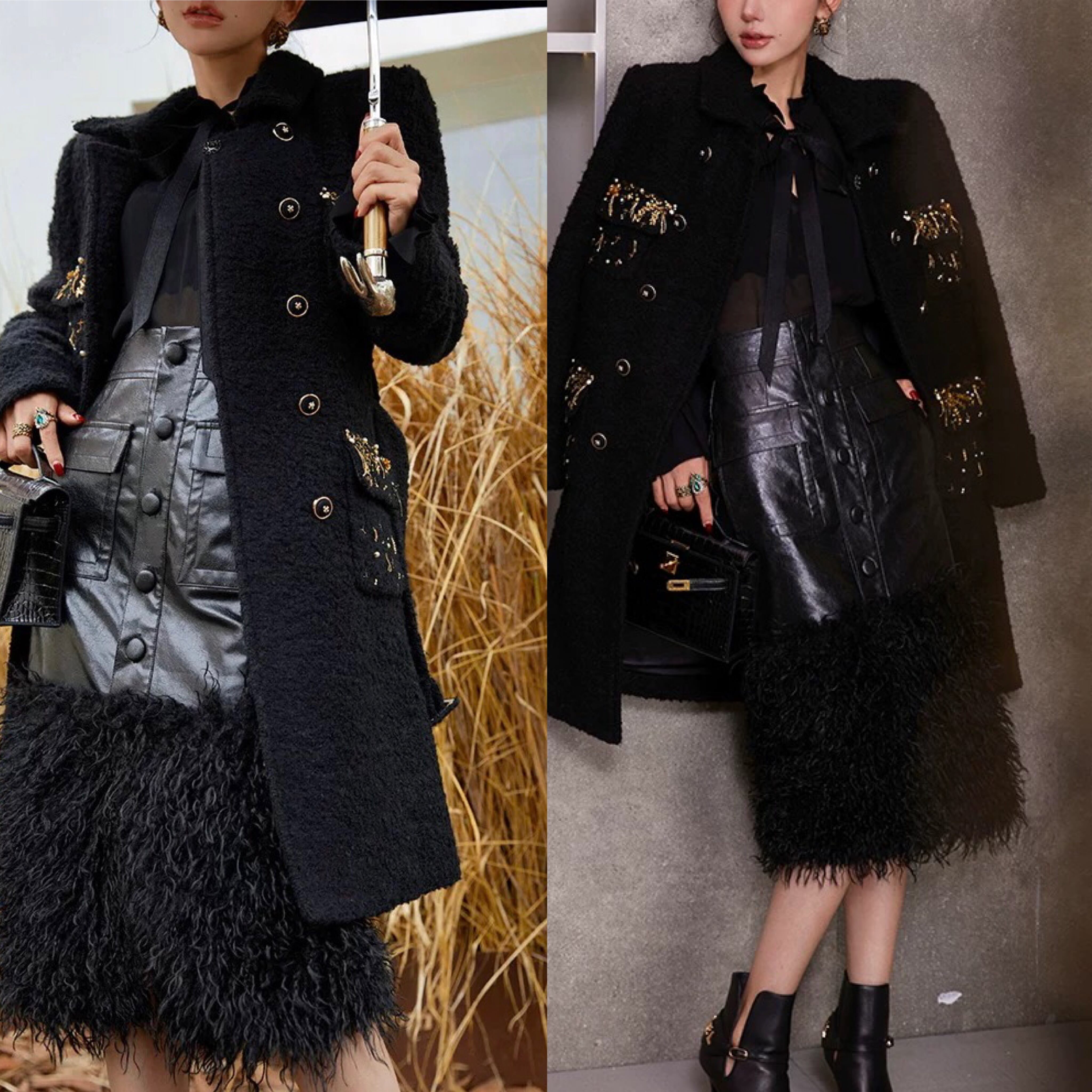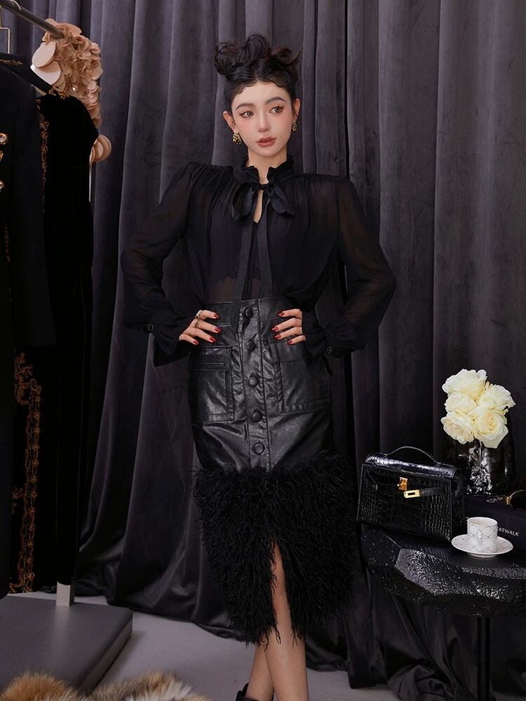 【スカート】黒 ブラック レザー ファー ボトムス タイト