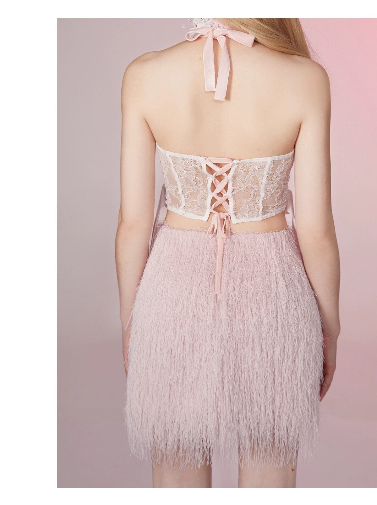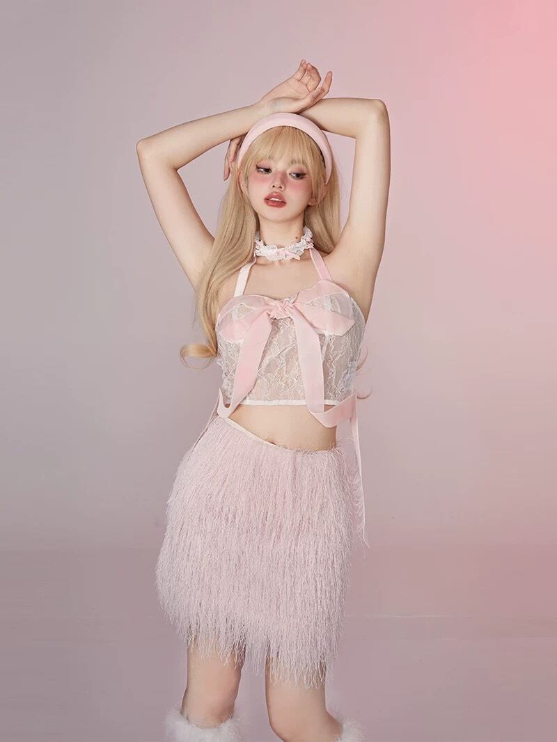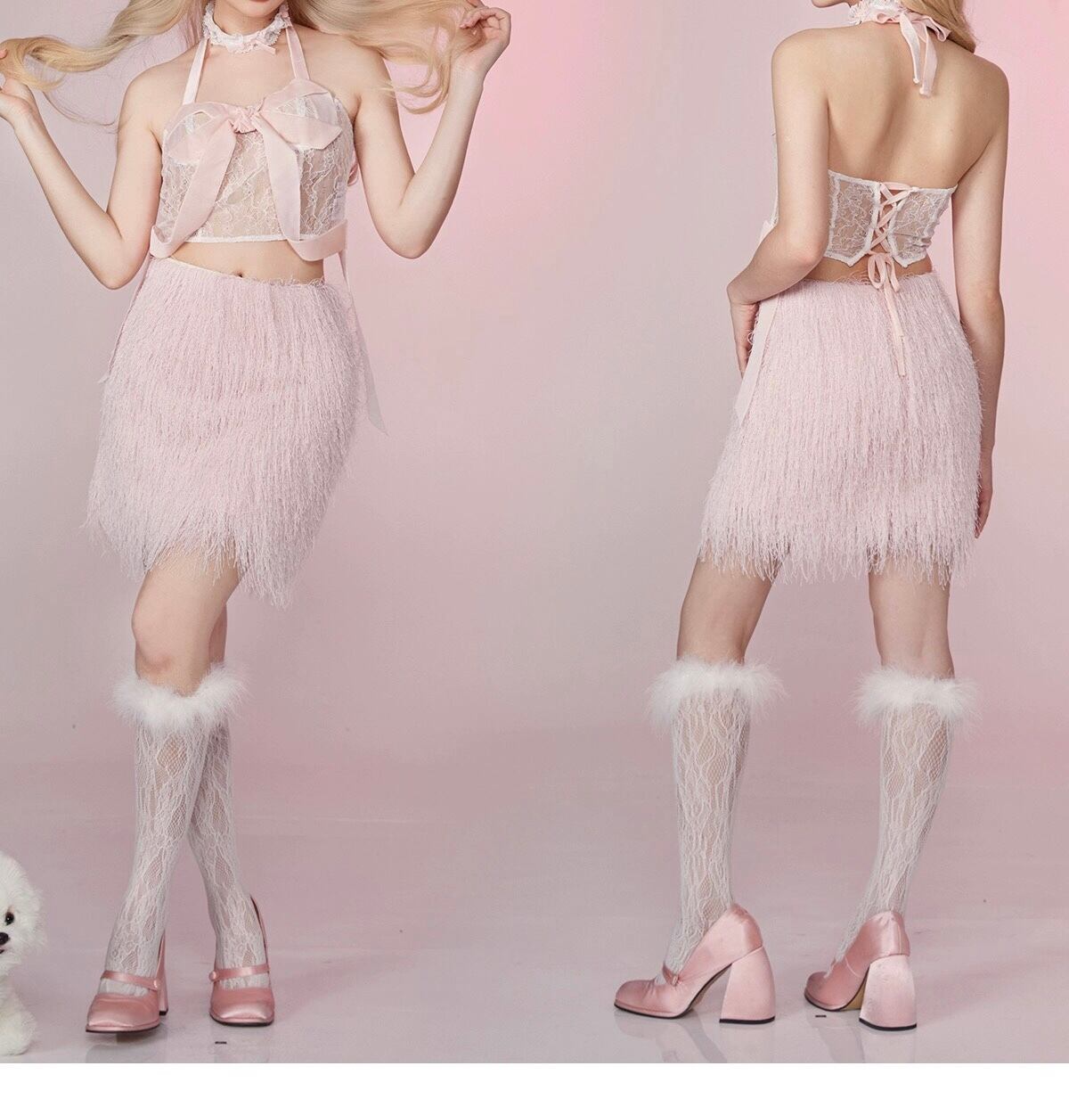 セットアップ別売り キャミソール ピンク ファー スカート ブラウス コルセット