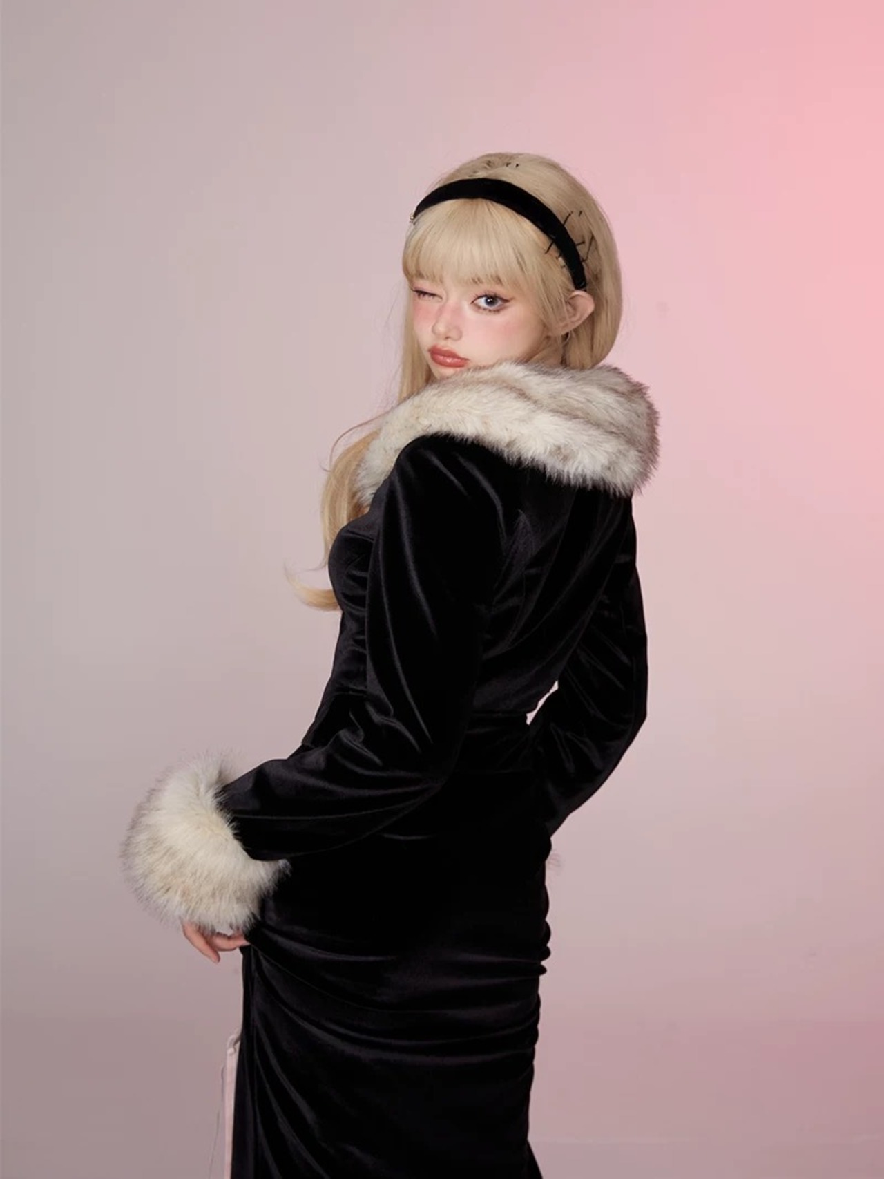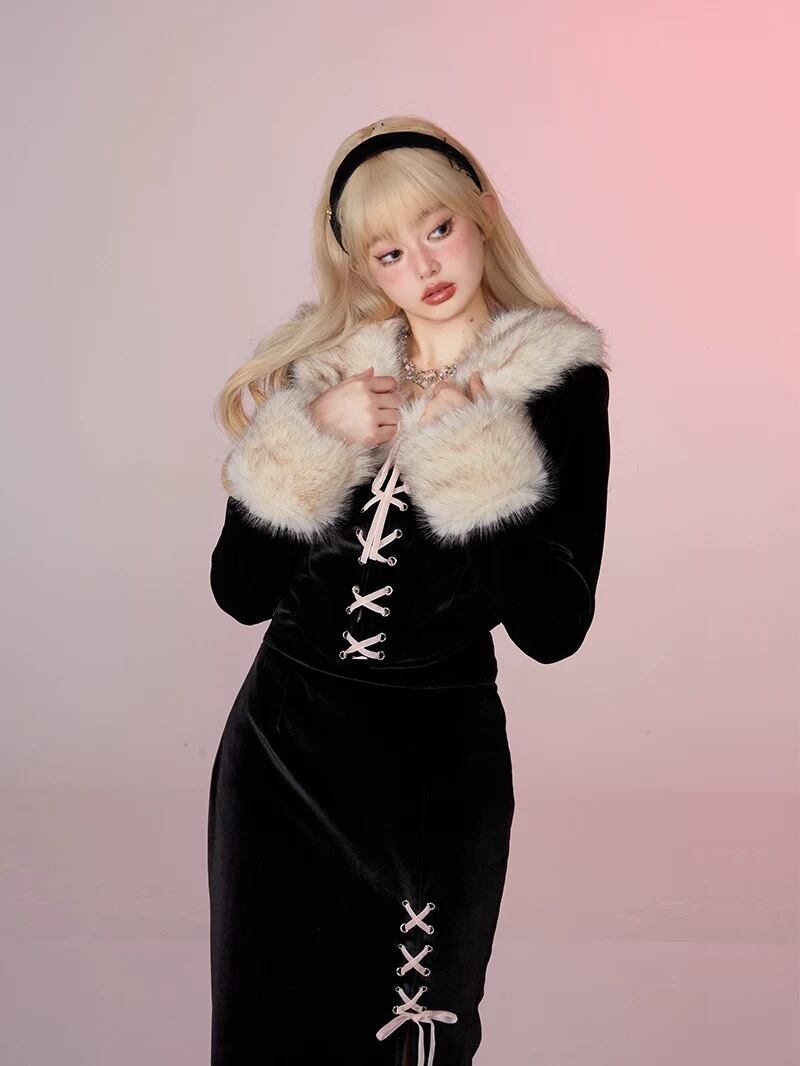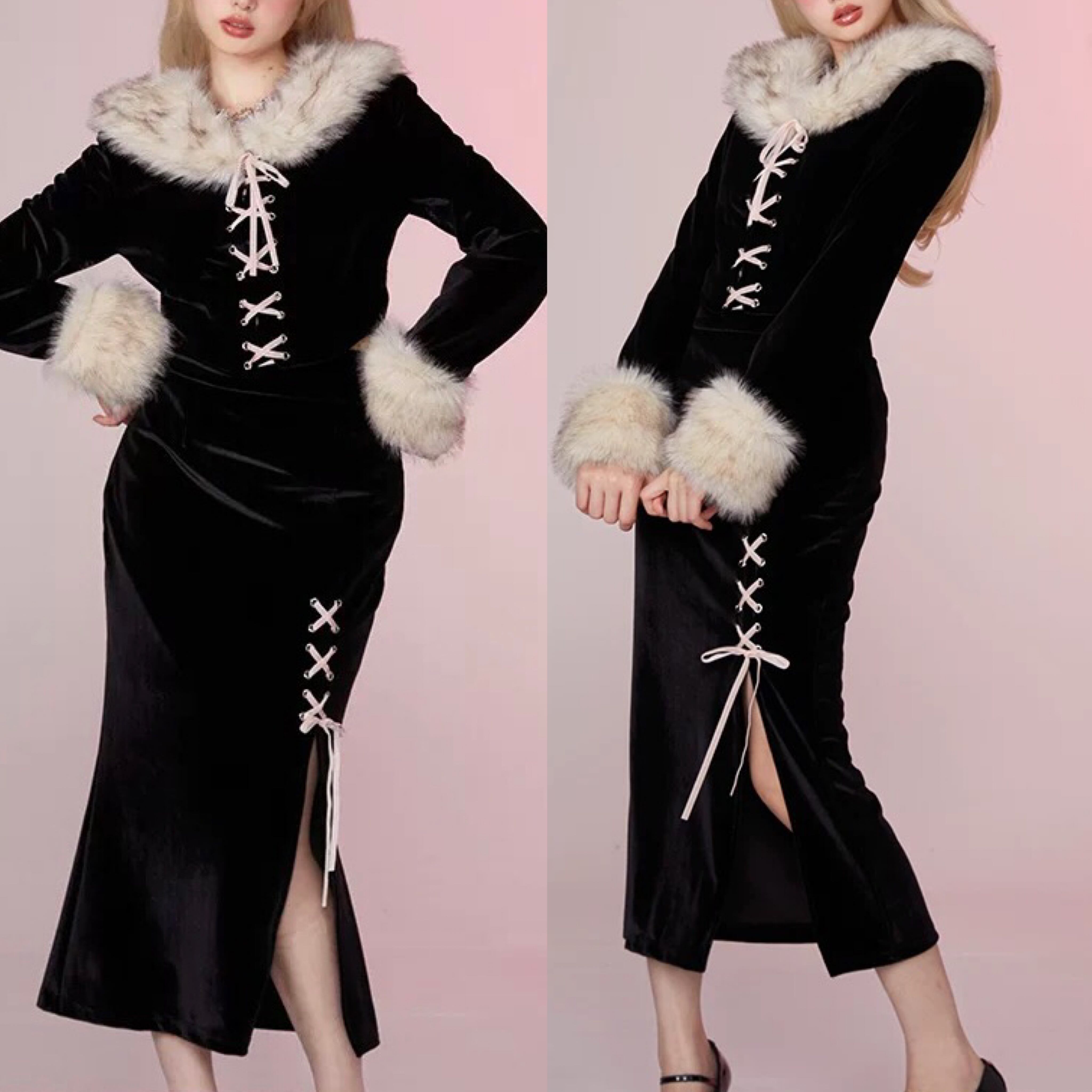 【スカート】ベロア ベルベット スリット リボン ピンク 黒 スカート ボトムス