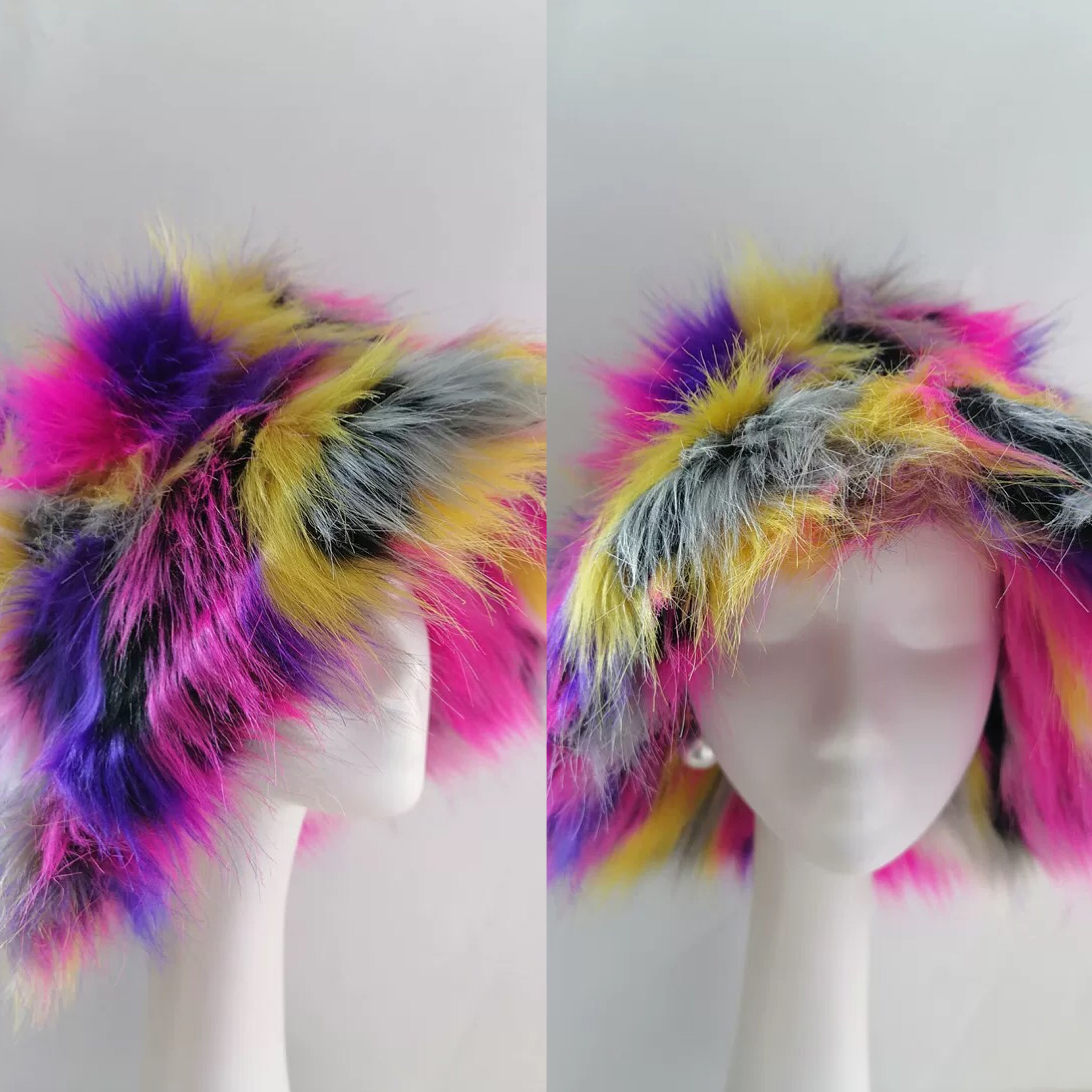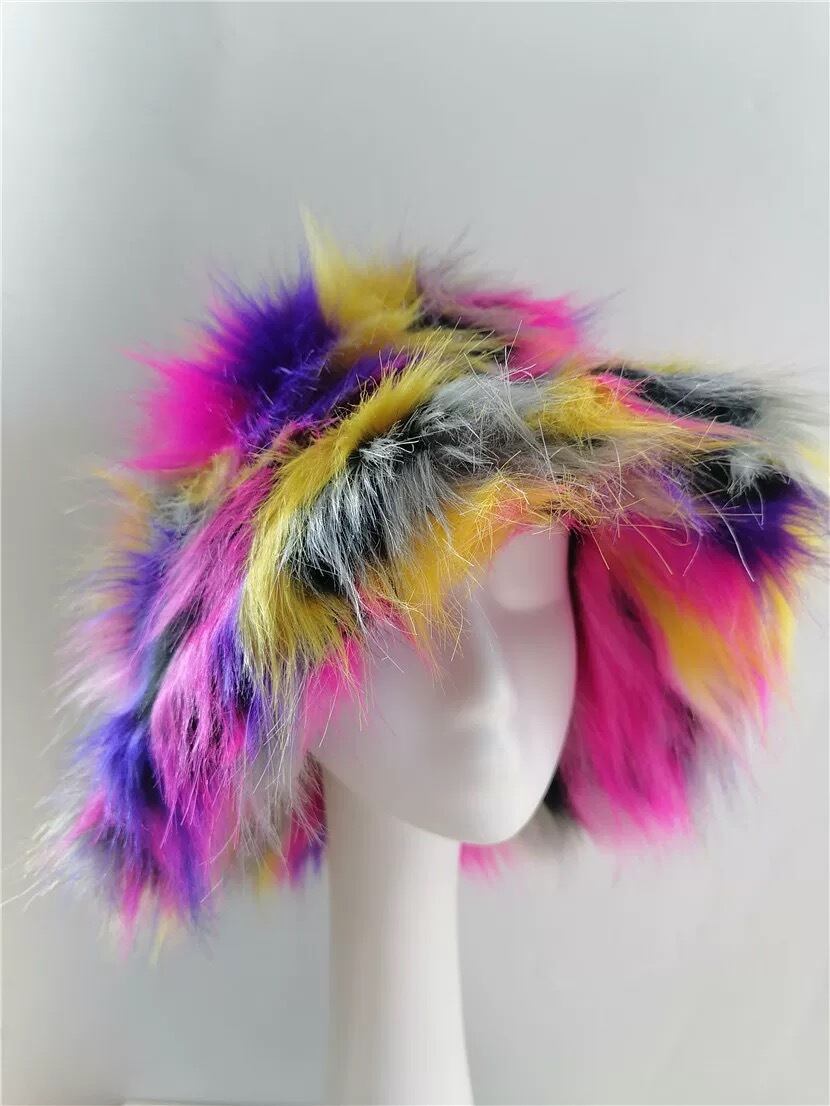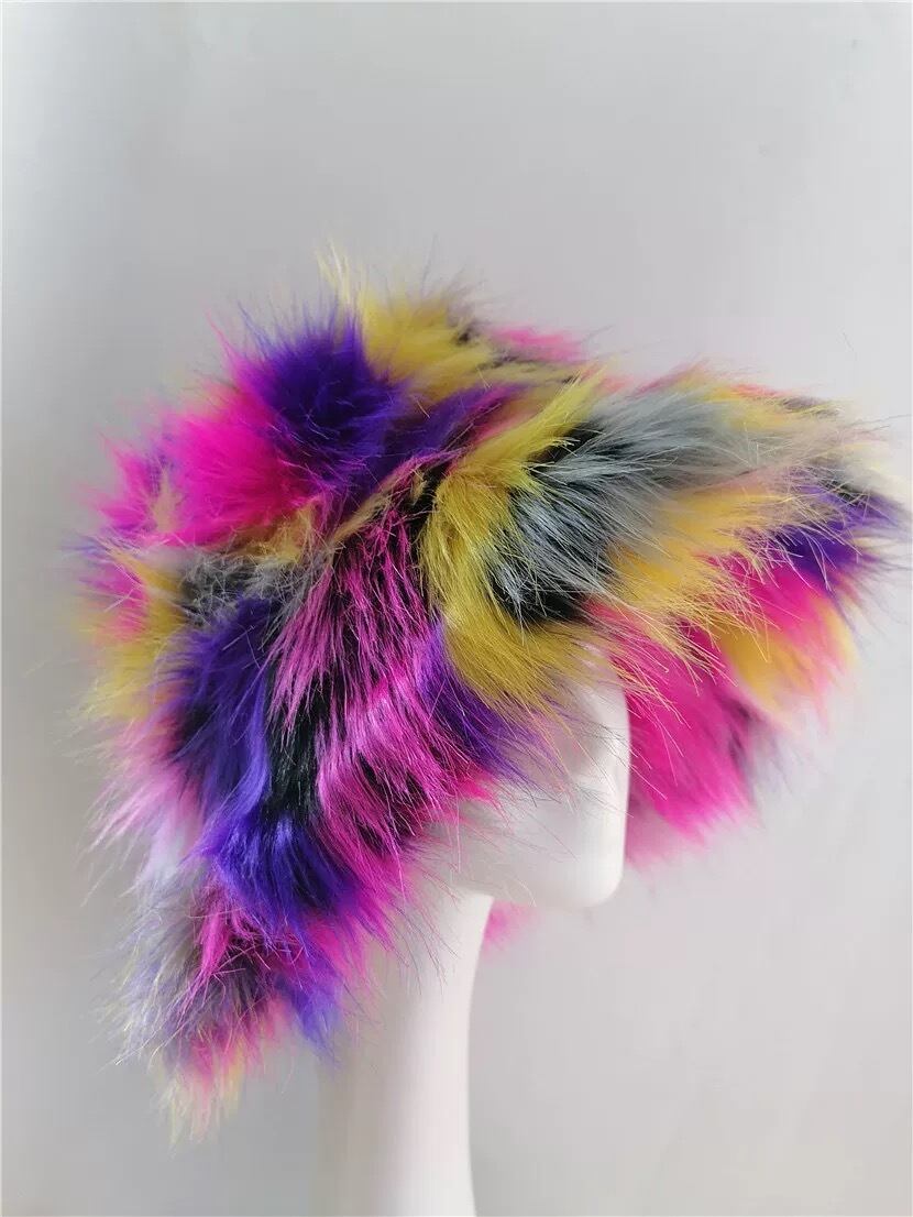 帽子 カラフル ピンク 紫 黄色 ファー バケハ