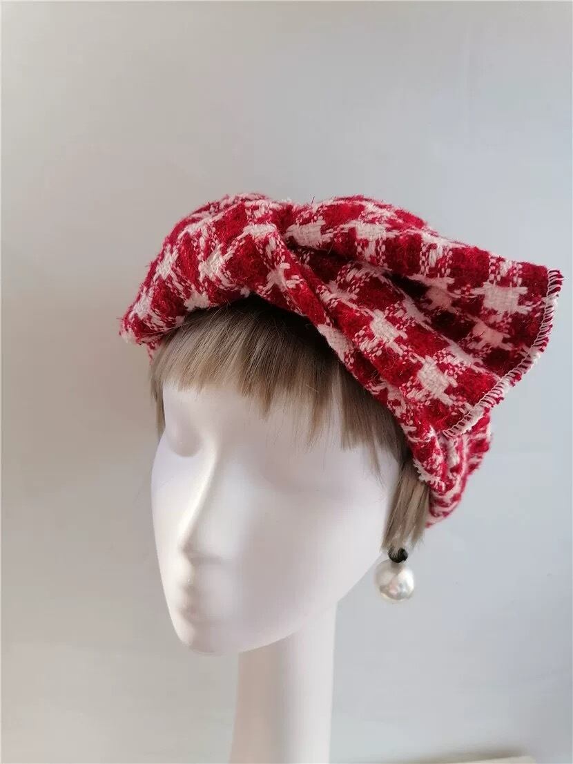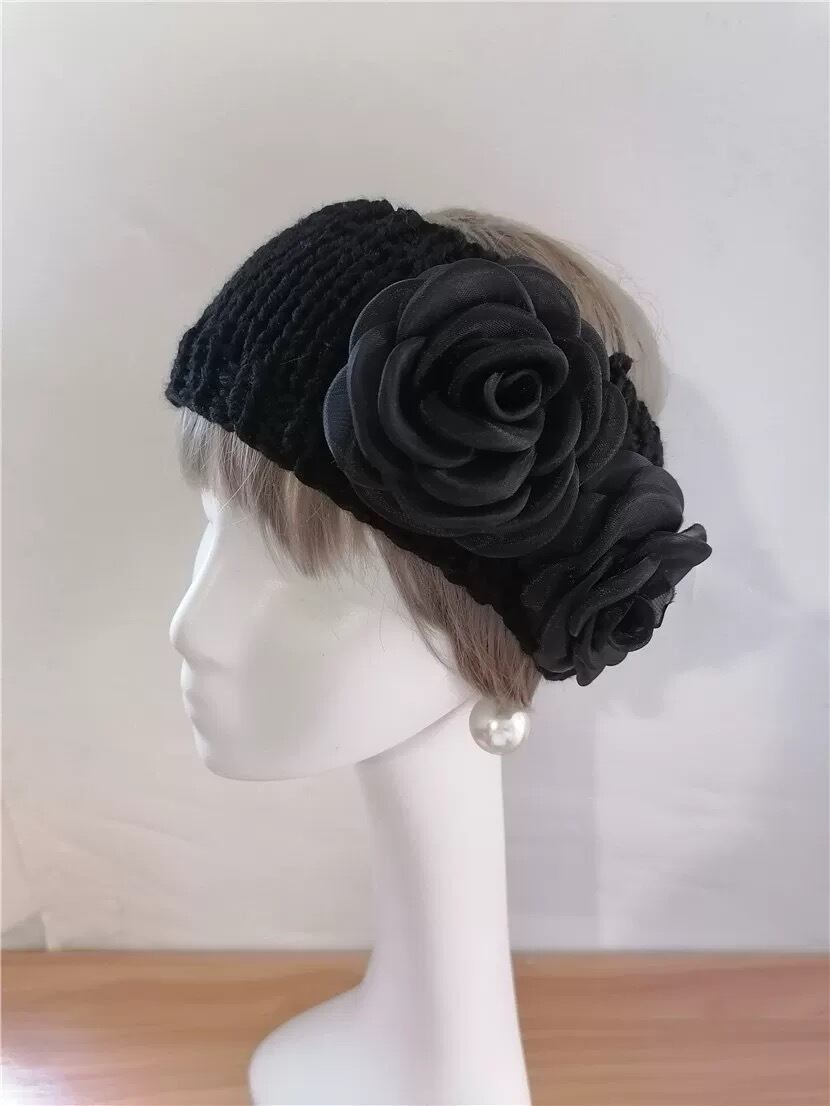 ヘアバンド 赤 黒 カメリア カチューシャ 帽子
