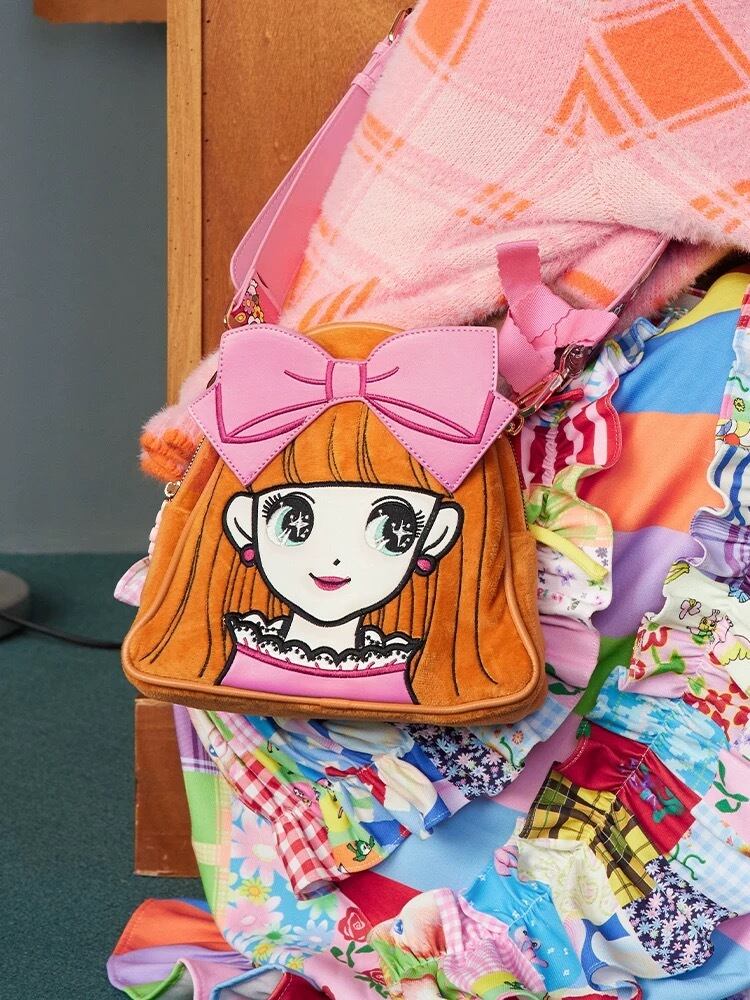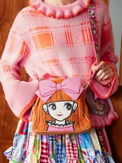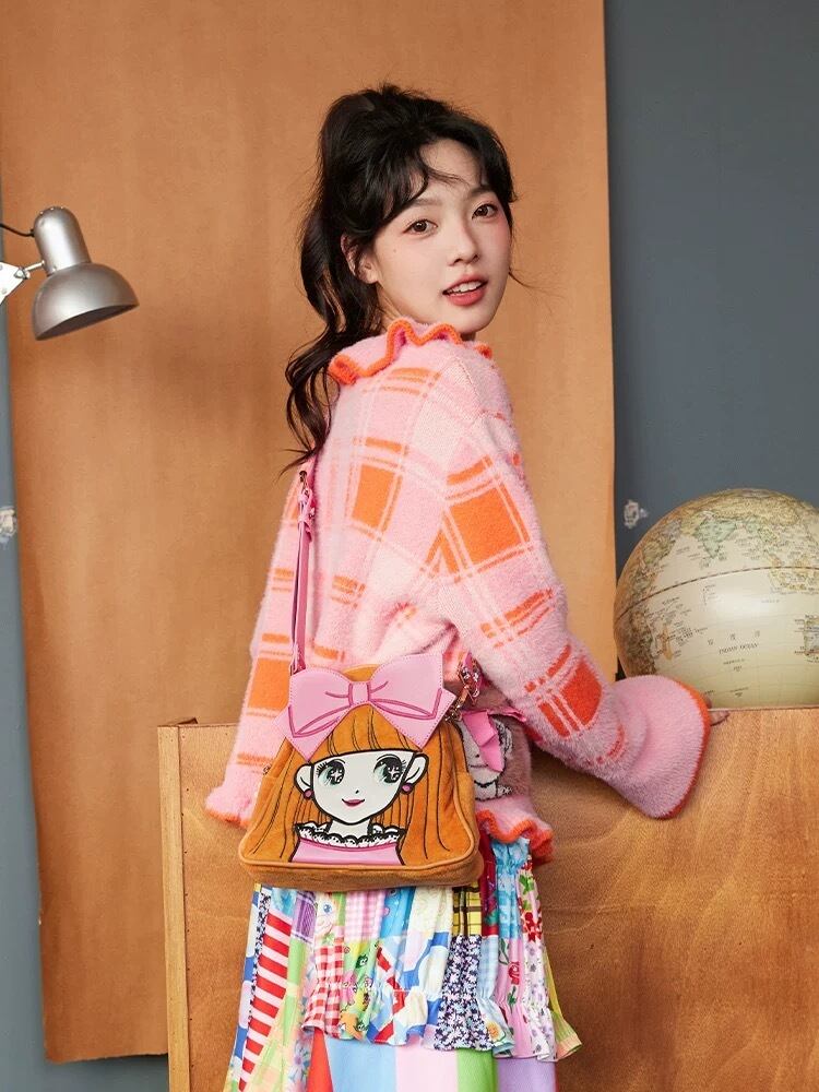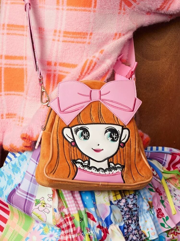 【かばん❣️】ガーリー 人形 オレンジ リボン 赤 ショルダーバッグ