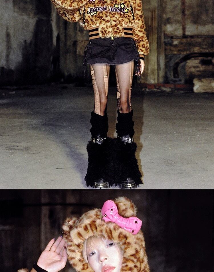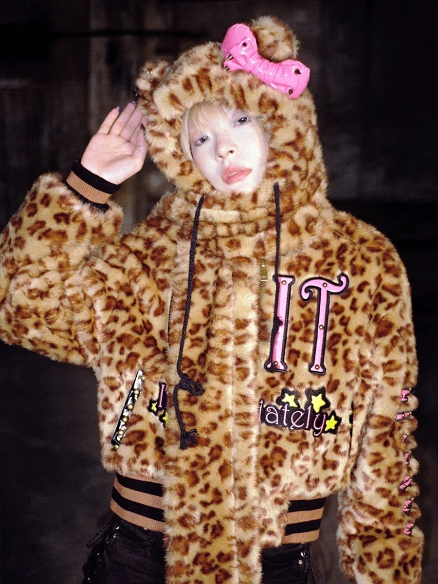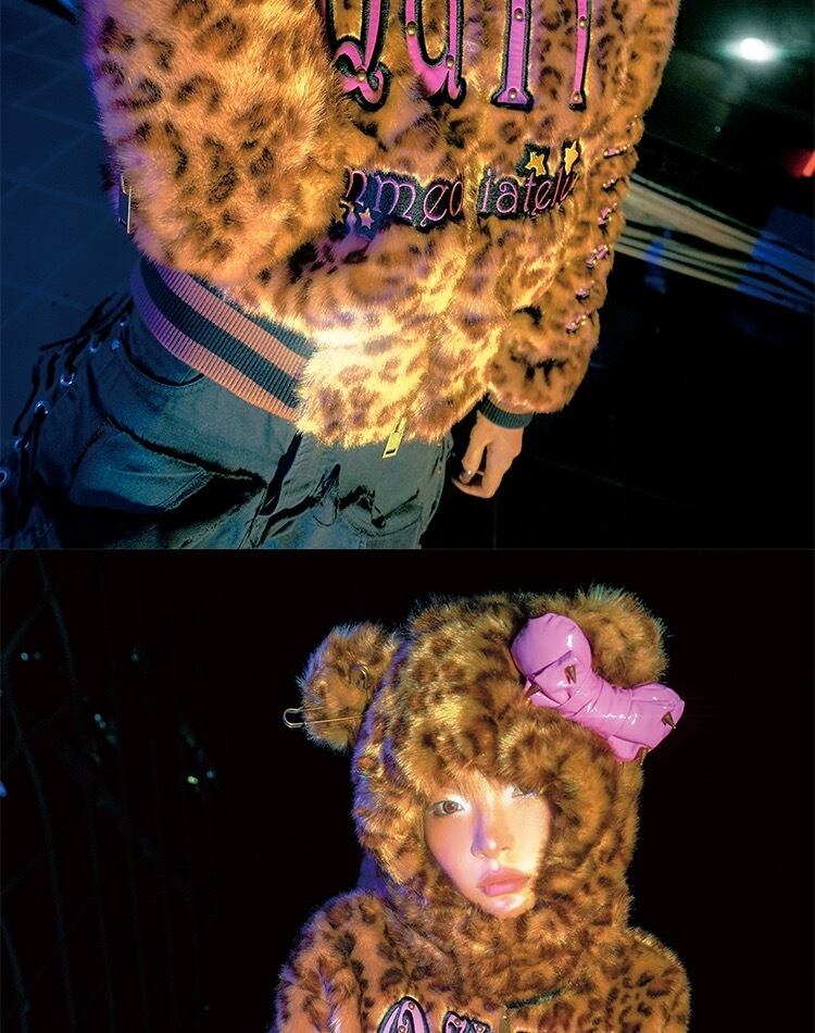 【マフラー帽子❣️】レオパード ヒョウ柄 茶色 ベージュ リボン ピンク