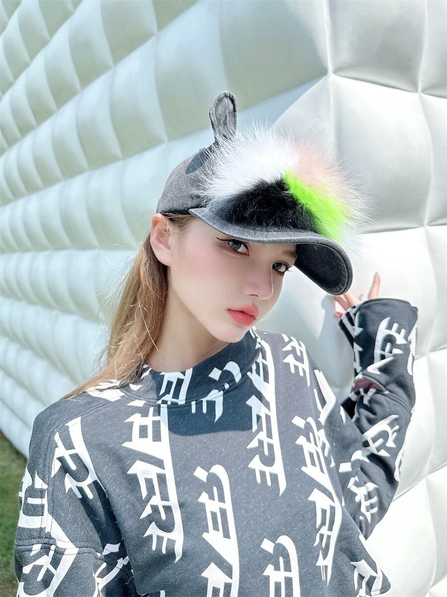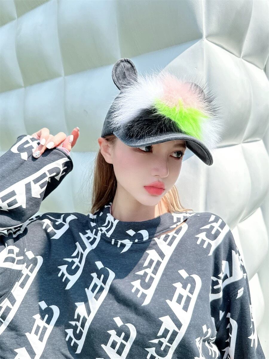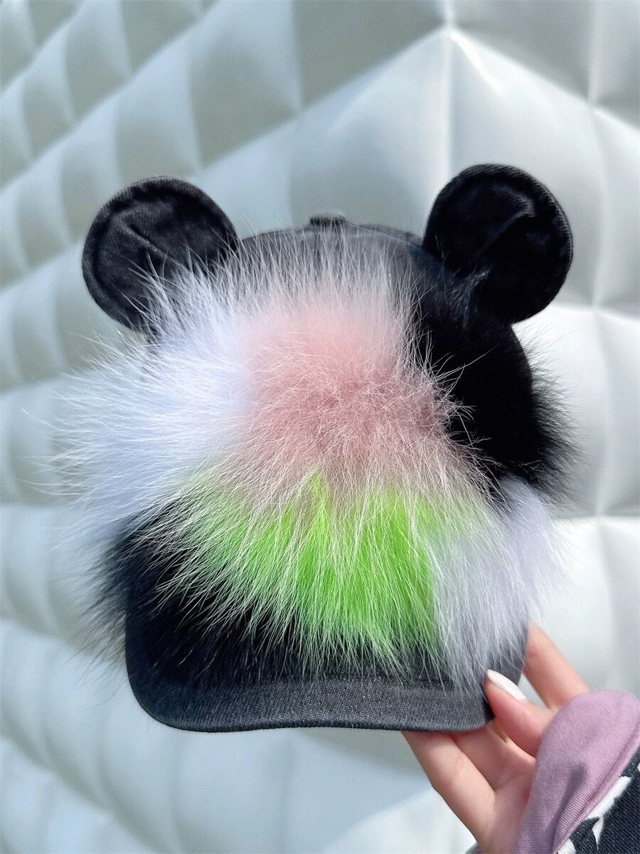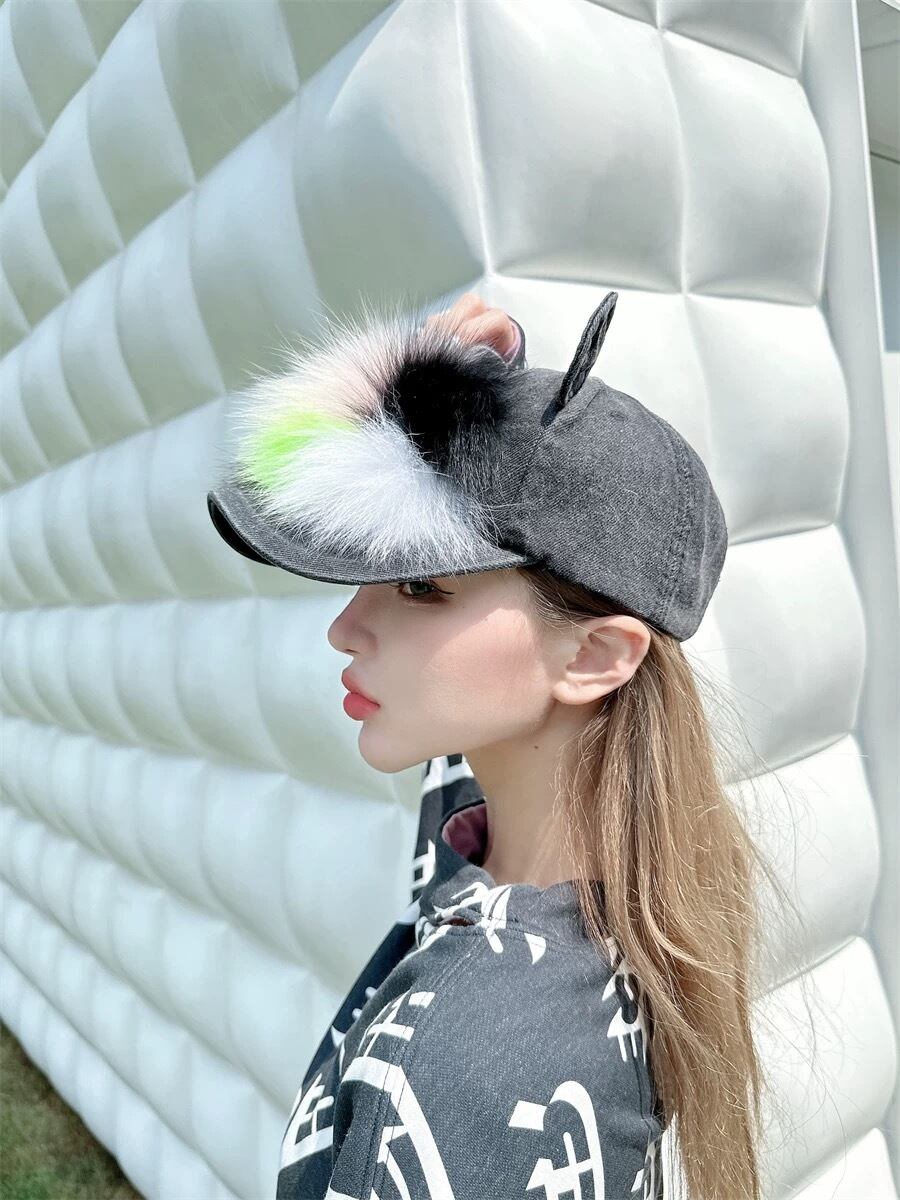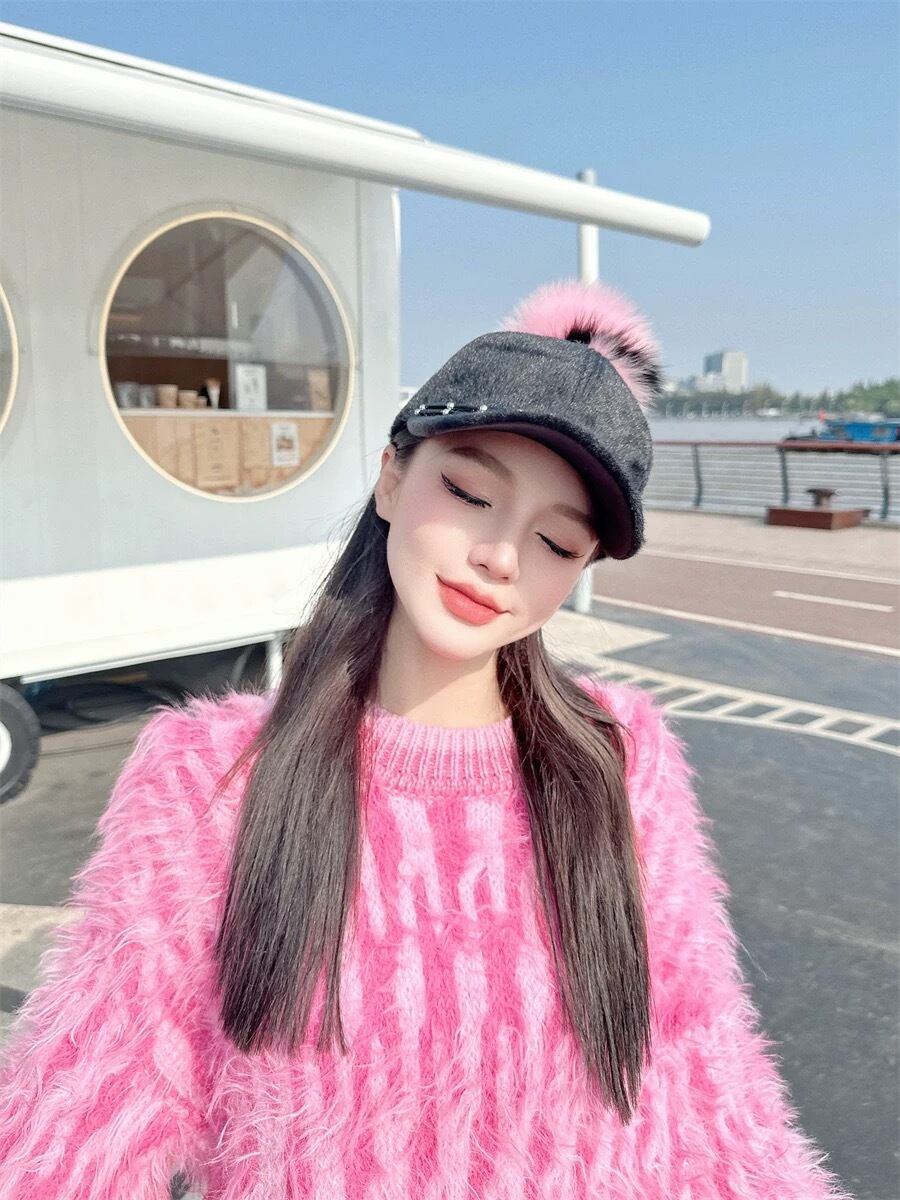 キャップ 黒 ピンク ファー 帽子 カジュアル ポンポン