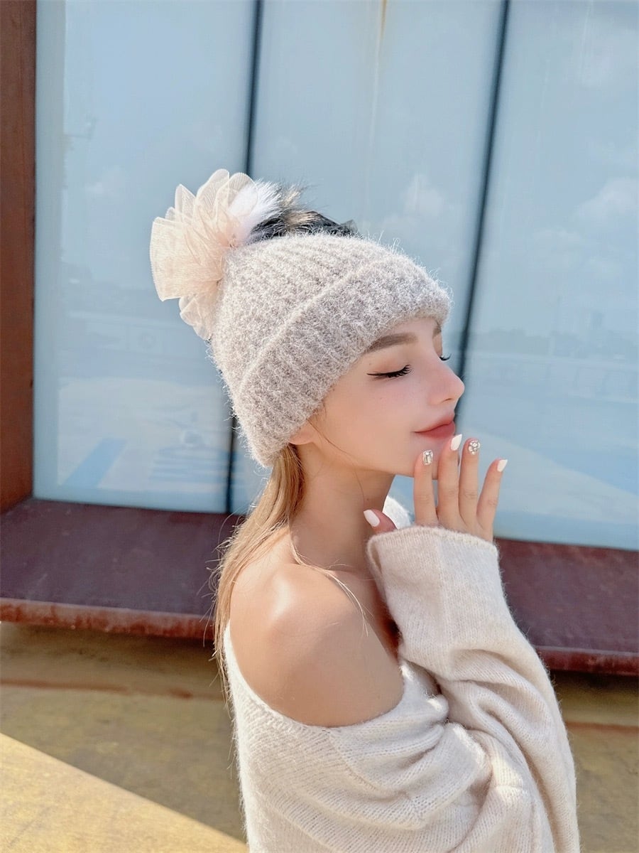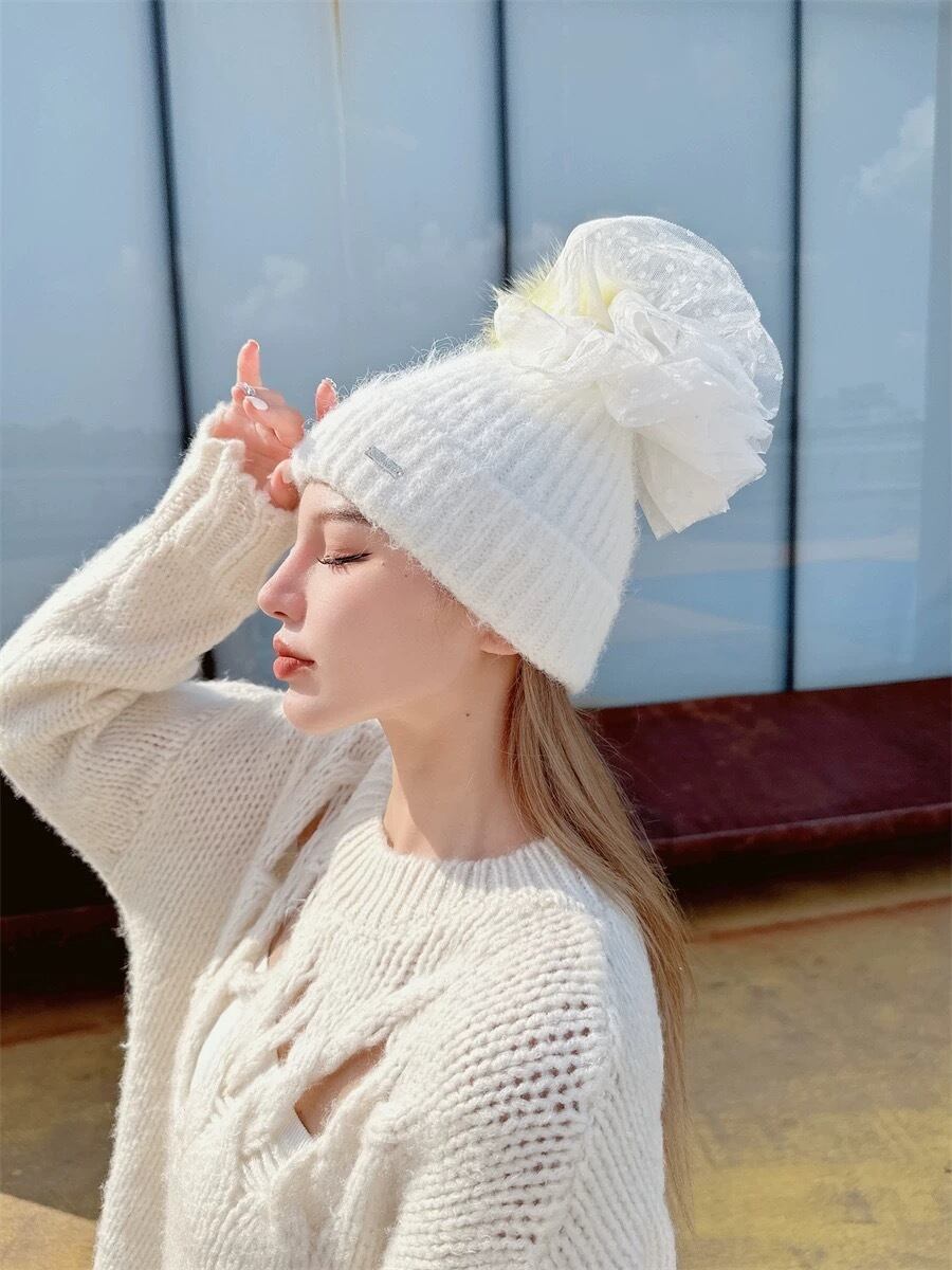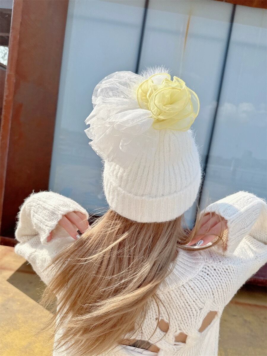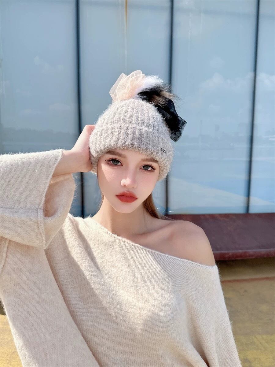 帽子 ニット帽 ピンク ファー 白 ピンク 黄色 リボン 白 黒