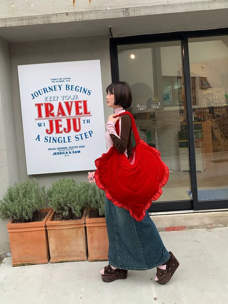 ハート 赤 ビック デカい バッグ 鞄 トートバッグ エコバッグ