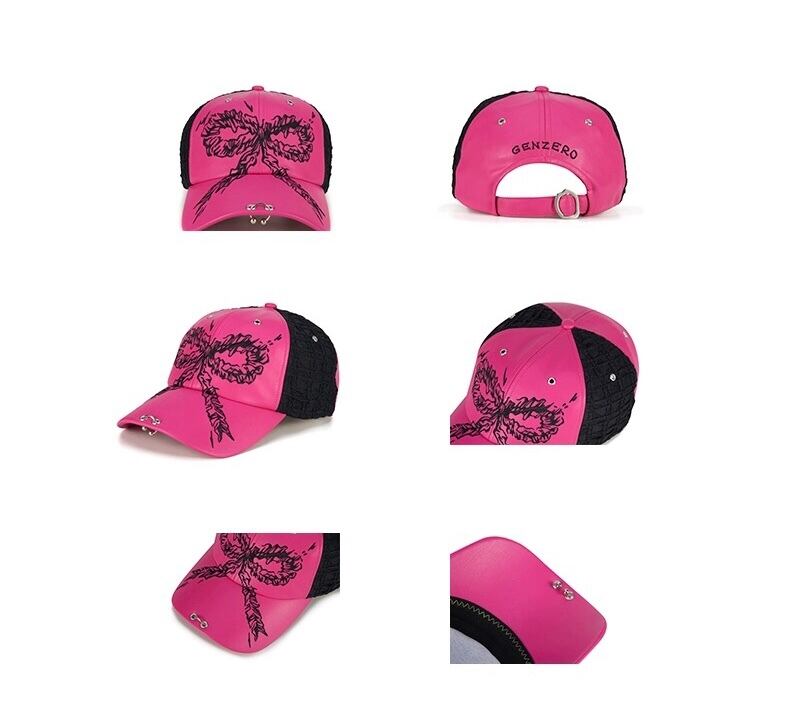 【ユニセックス❣️】ピンク リボン 黒 キャップ 帽子