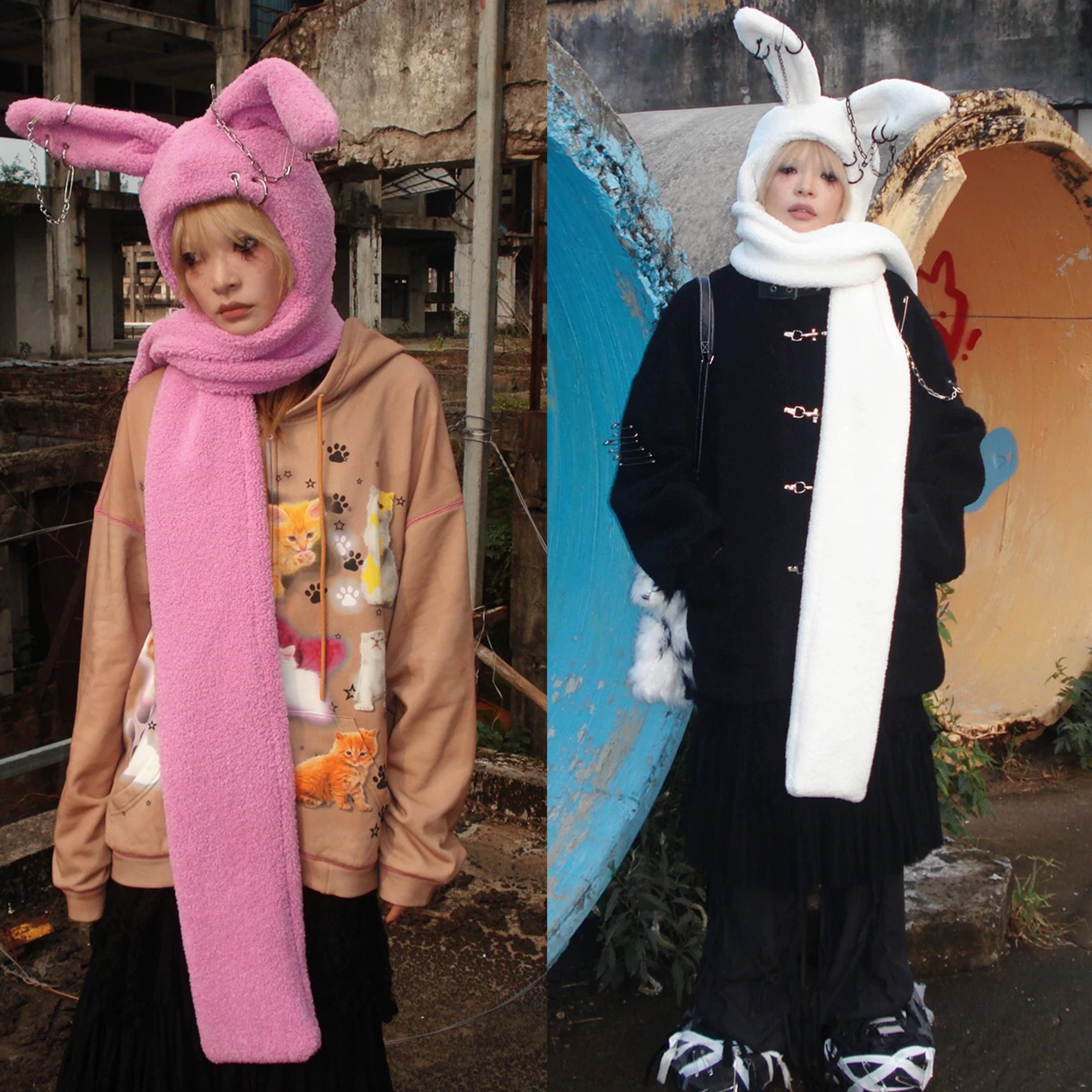 うさぎ ピンク 白 帽子 マフラー アクセサリー