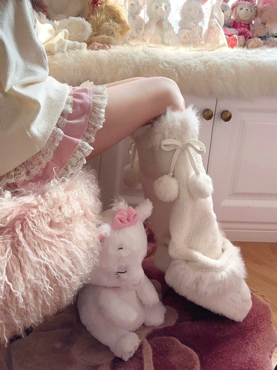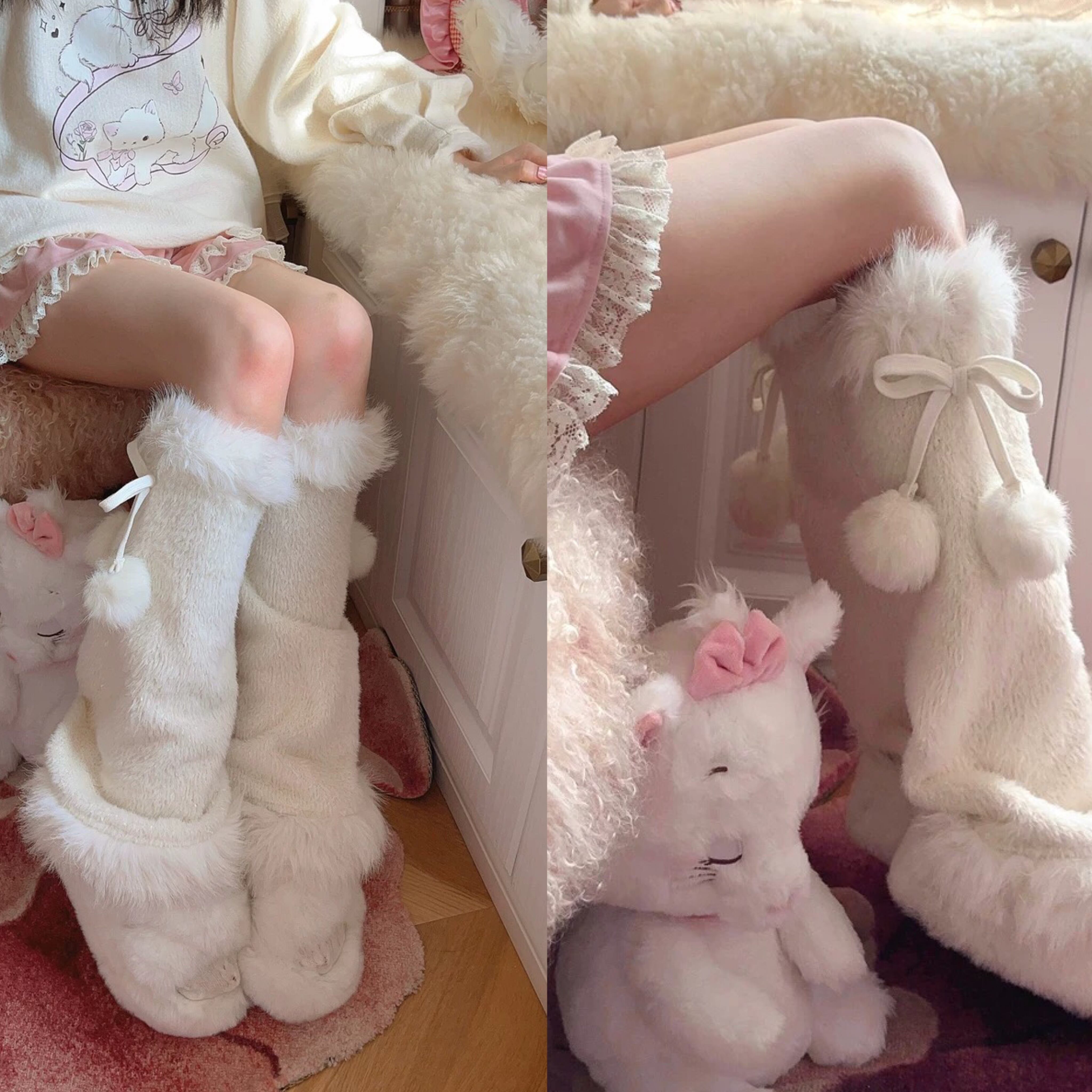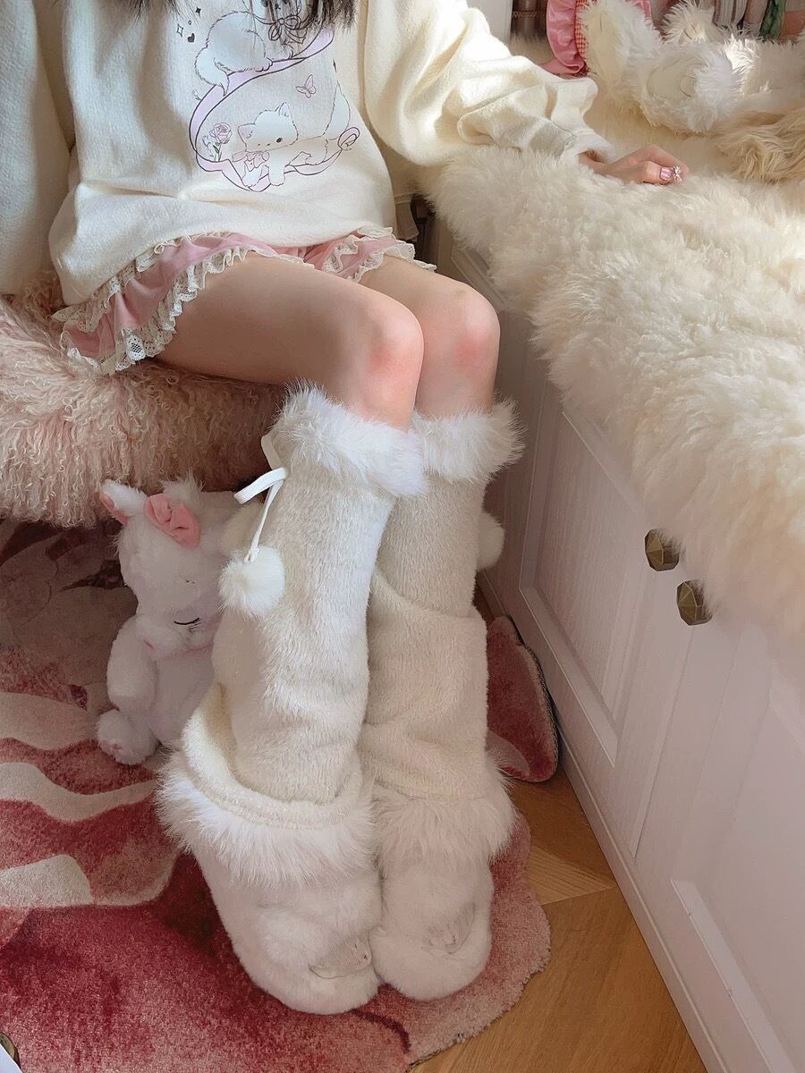 レッグウォーマー 靴下 リボン 白 ファー タイツ
