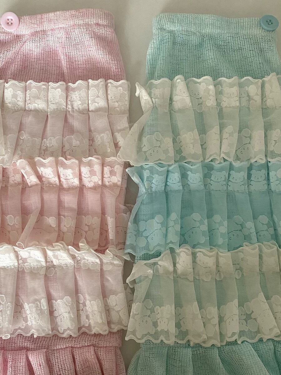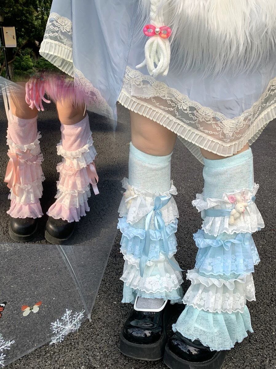 レッグウォーマー 靴下 ピンク リボン 水色 タイツ