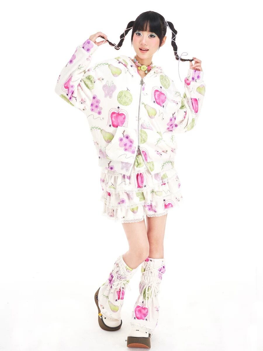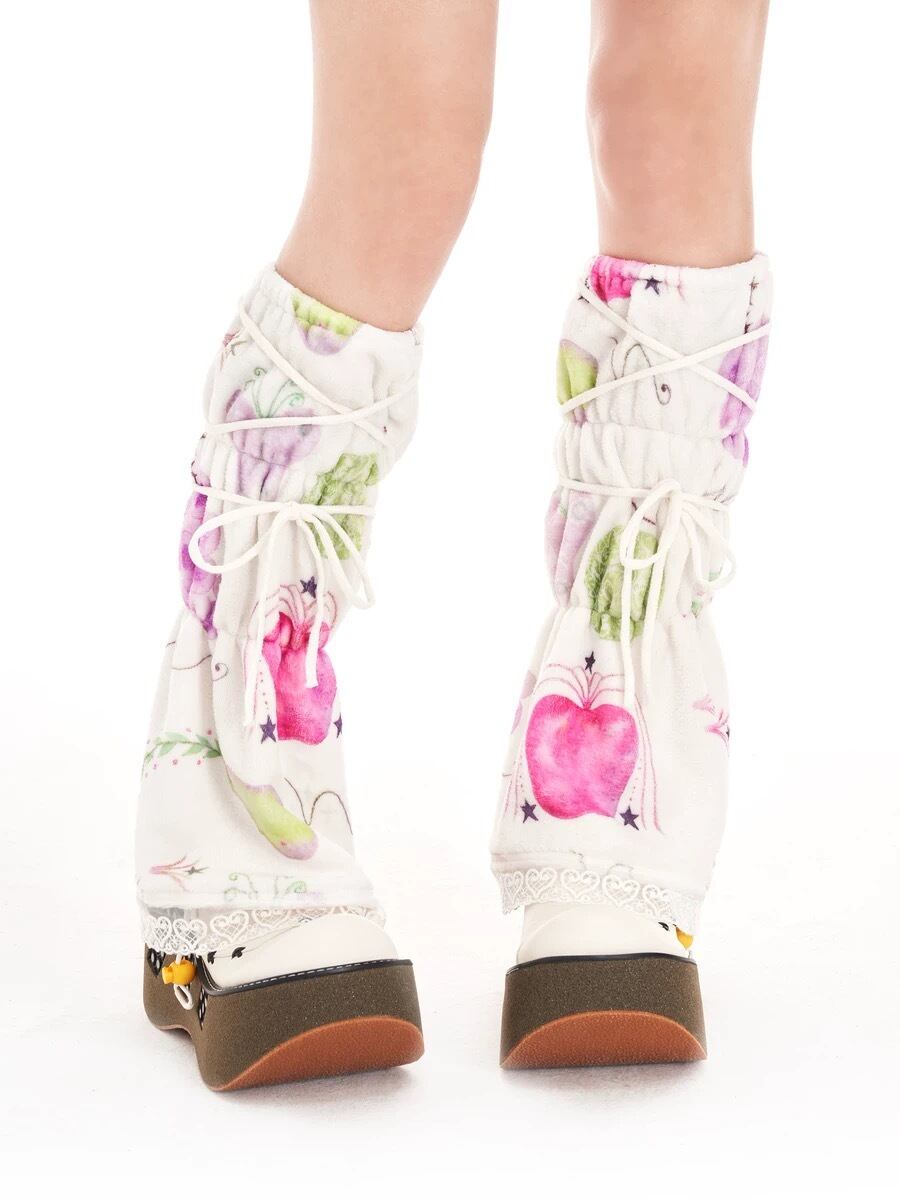 レッグウォーマー フルーツ 白 ピンク 紫 可愛い タイツ 靴下
