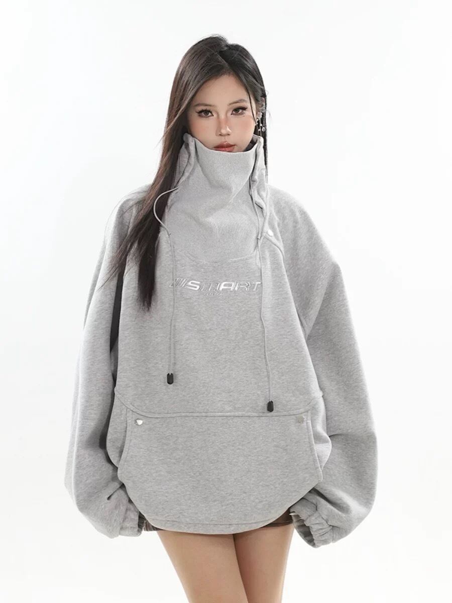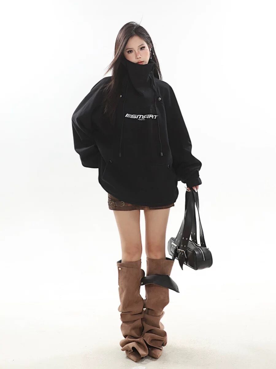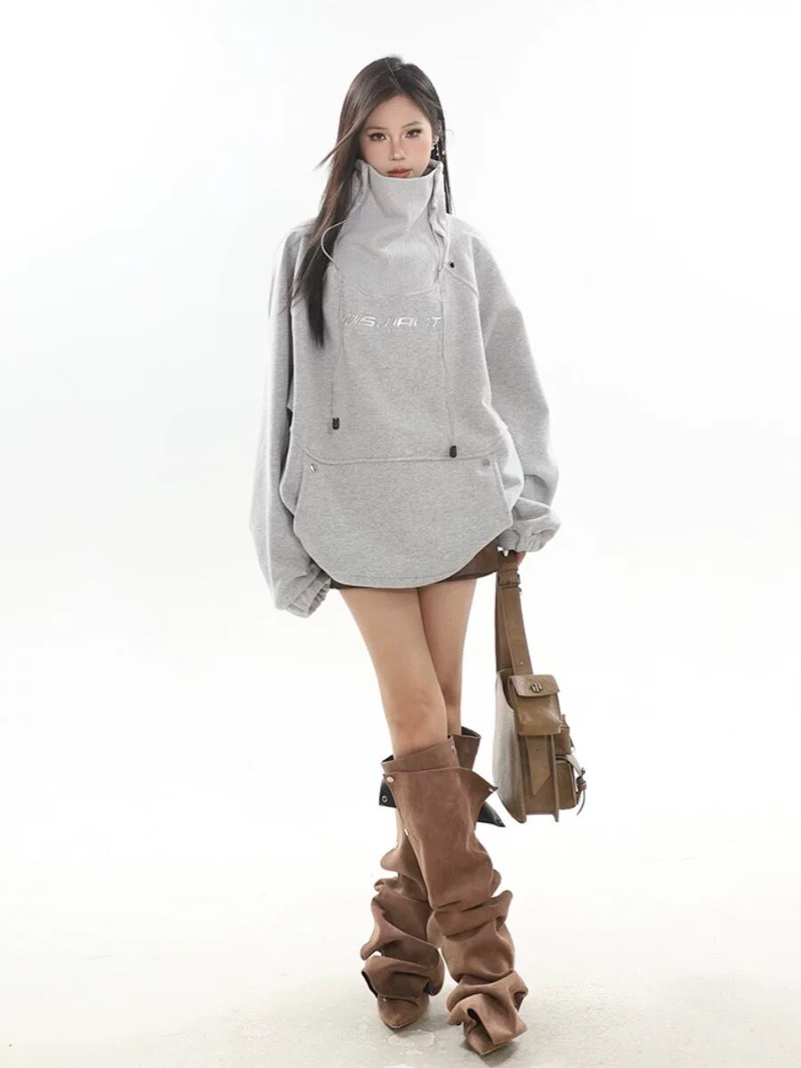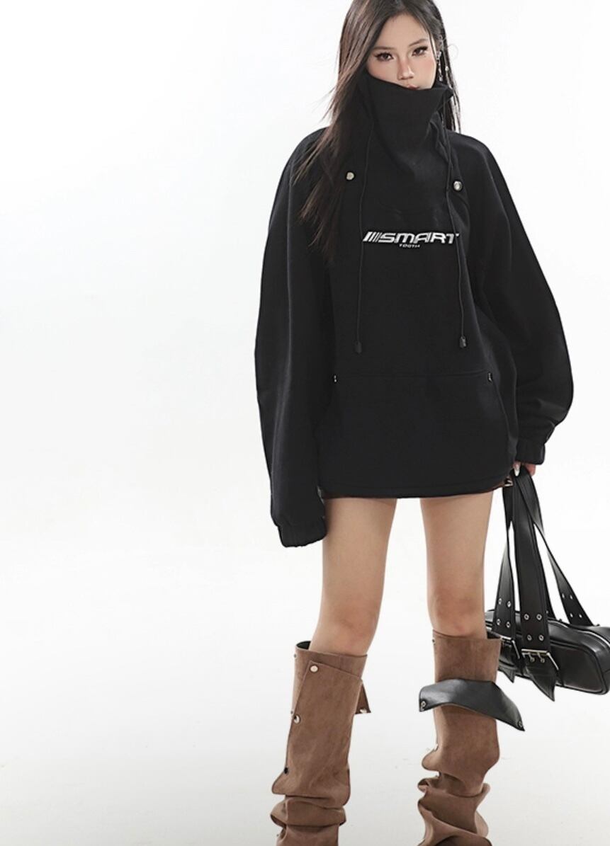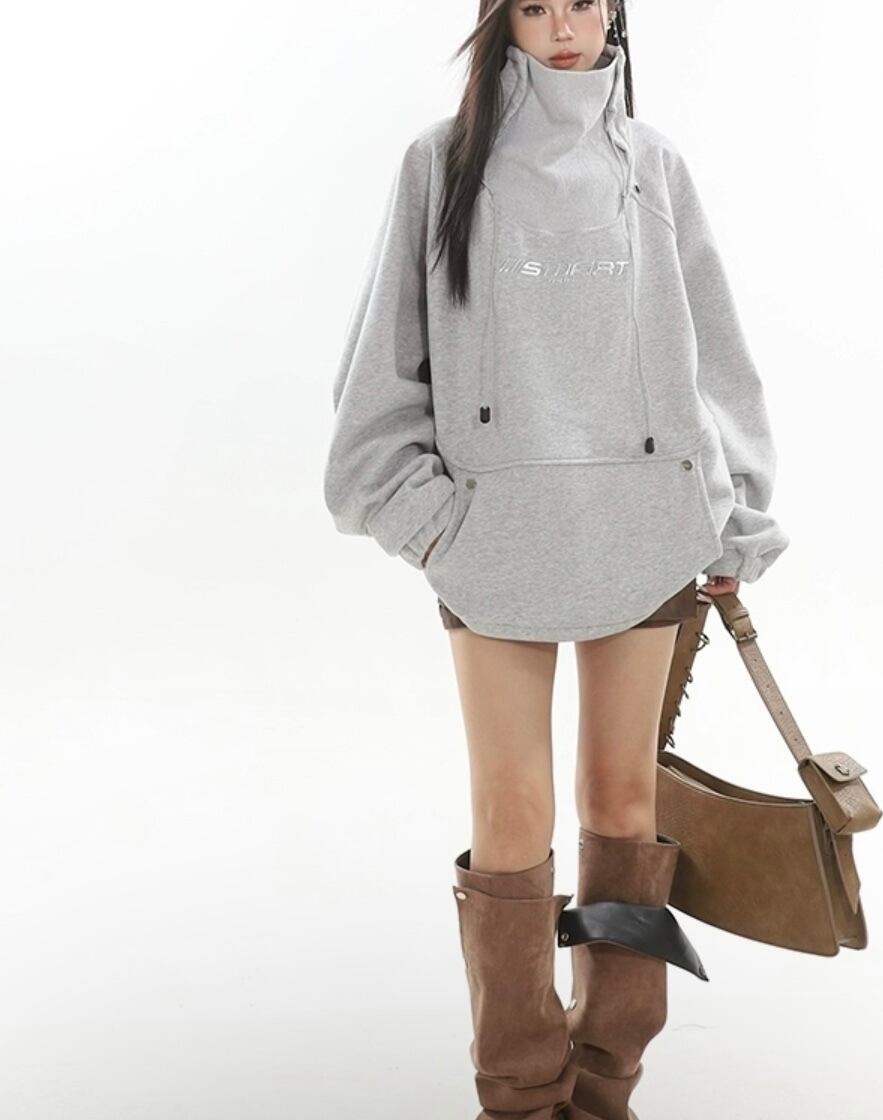スウェット カジュアル グレー 黒 ワンピース ハイネック トレーナー パーカー