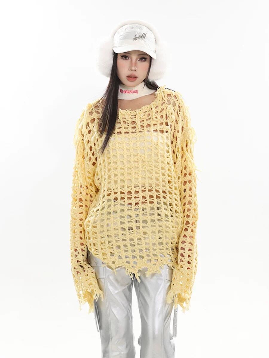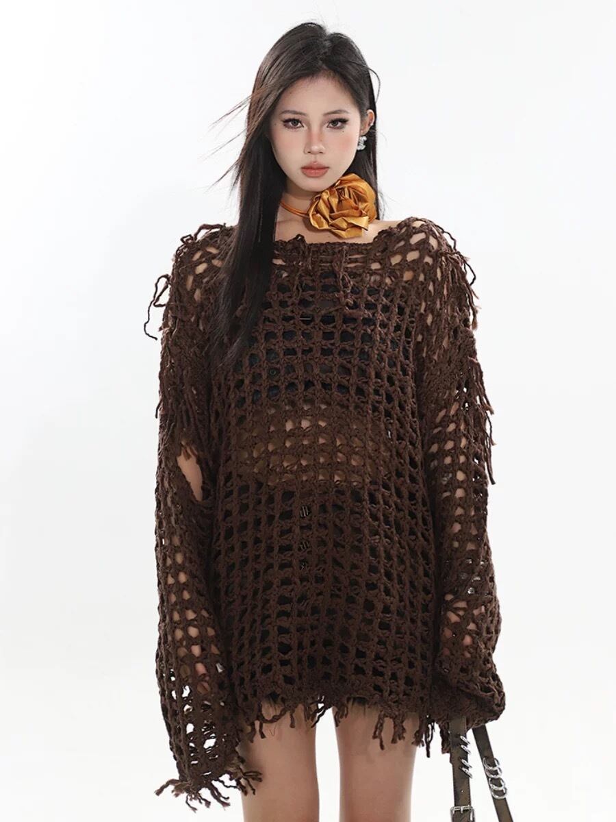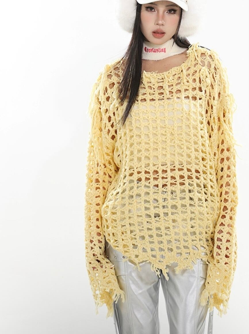 セーター ニット 茶色 黒 黄色 カーディガン ダメージ クラッシュ