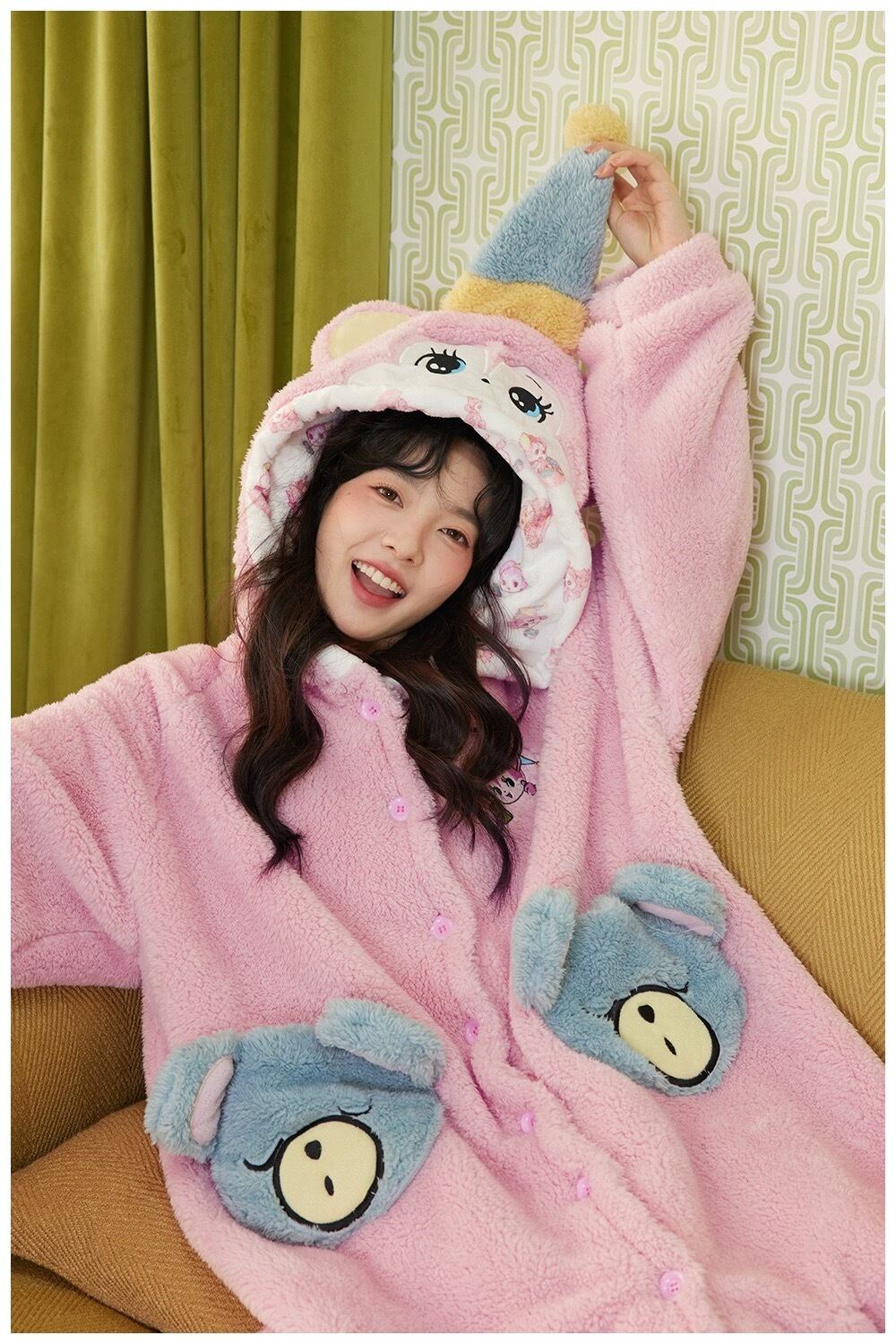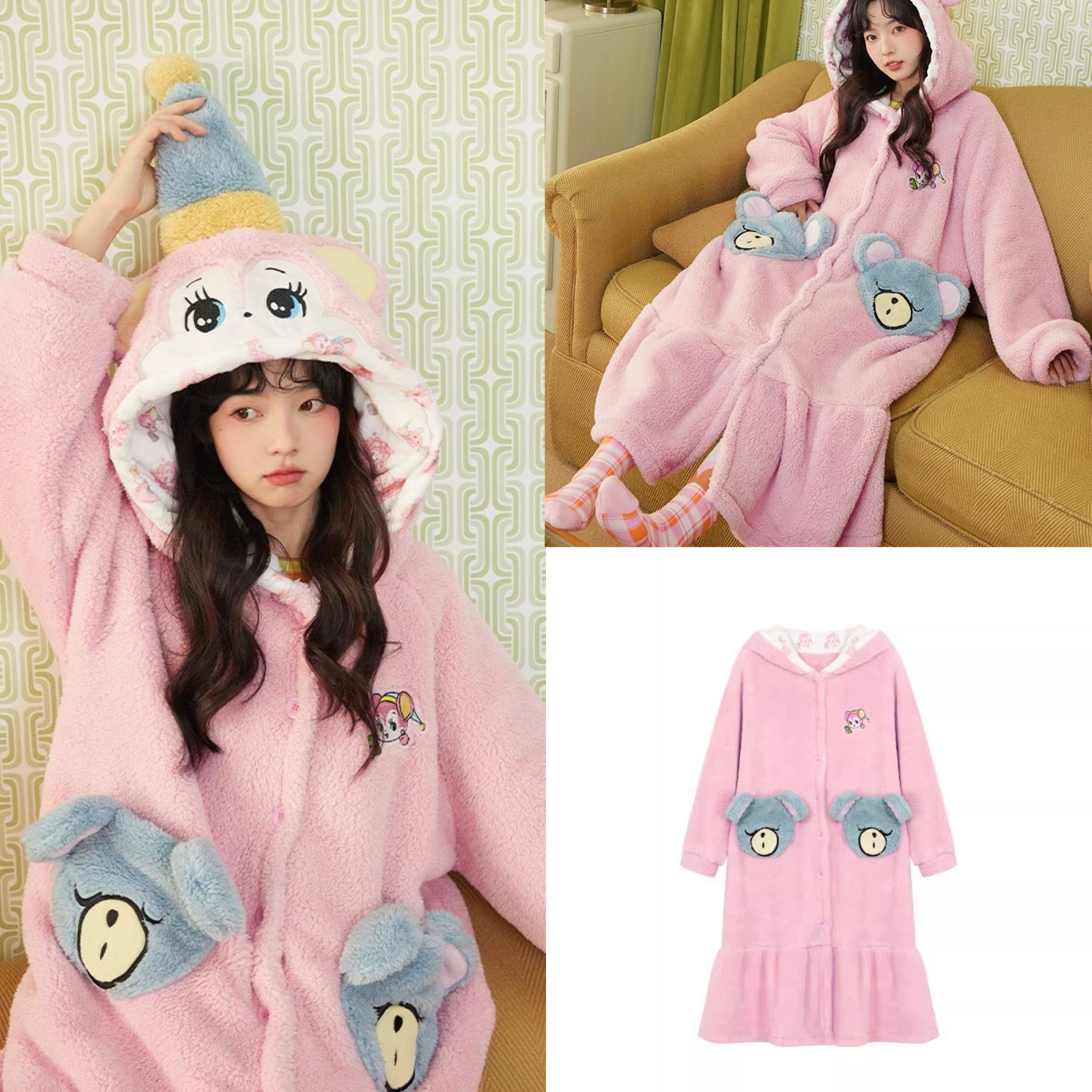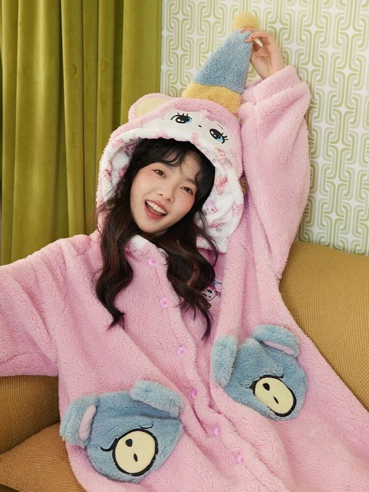 フリース スウェット ルームウェア パジャマ つなぎ ユニコーン パーカー ピンク 水色 くま ワンピース