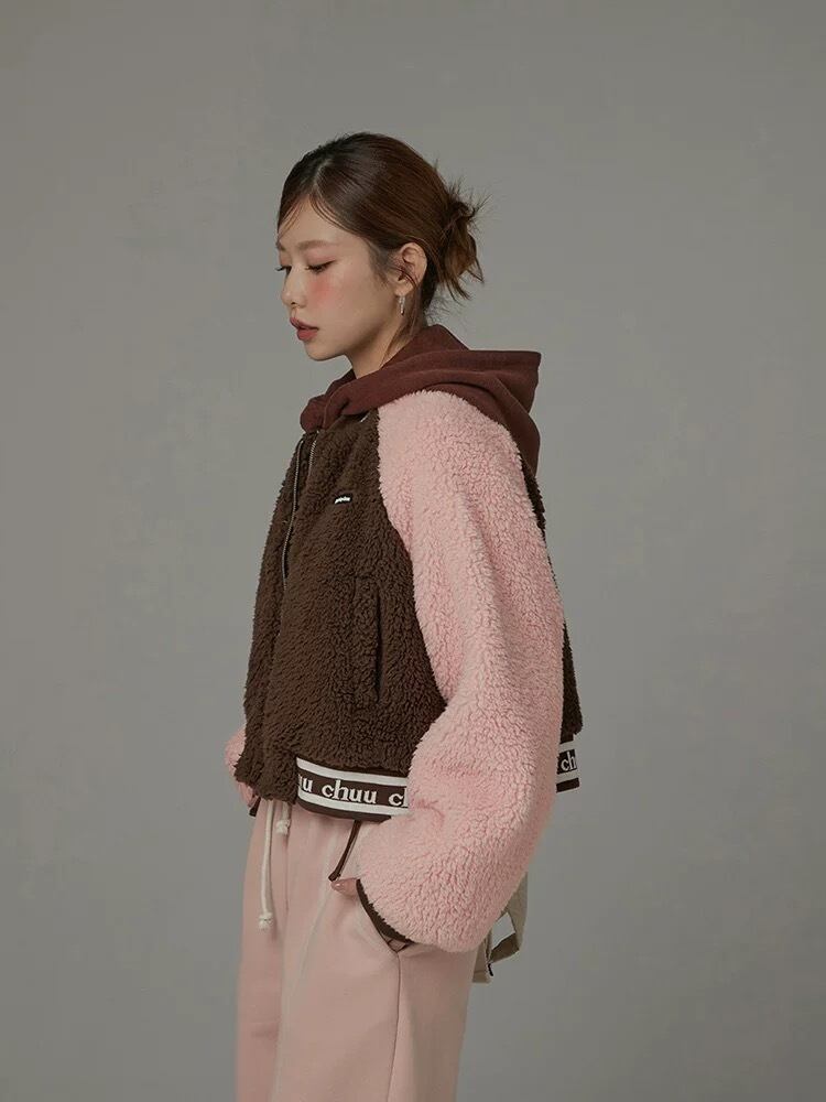 スウェット パーカー アウター コート ピンク 茶色 フリース ジャンパー