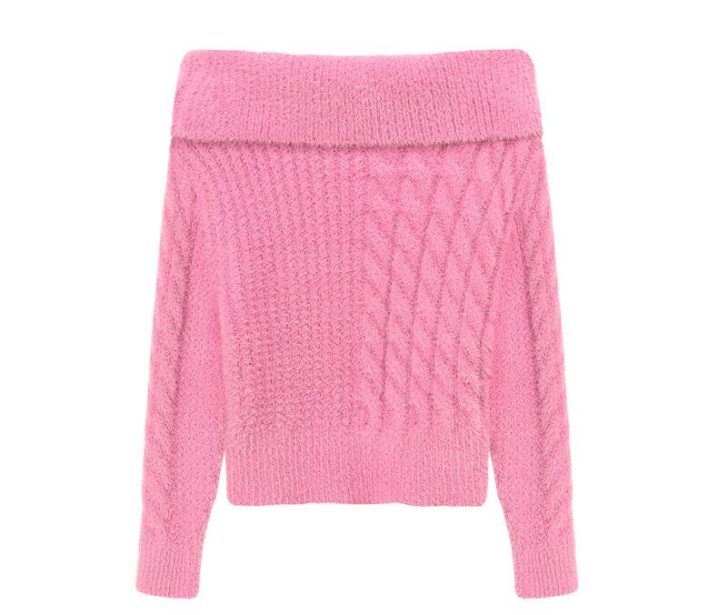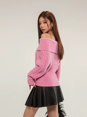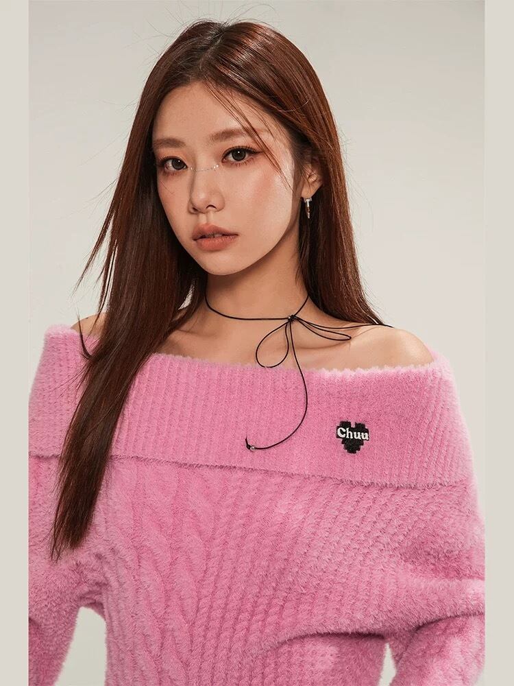 セーター オフショルダー ピンク ハート ニット カーディガン トップス