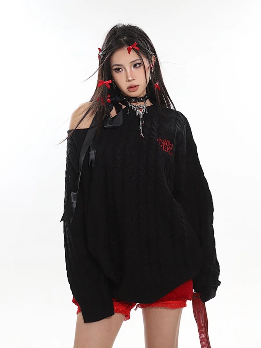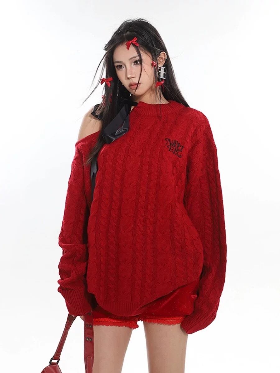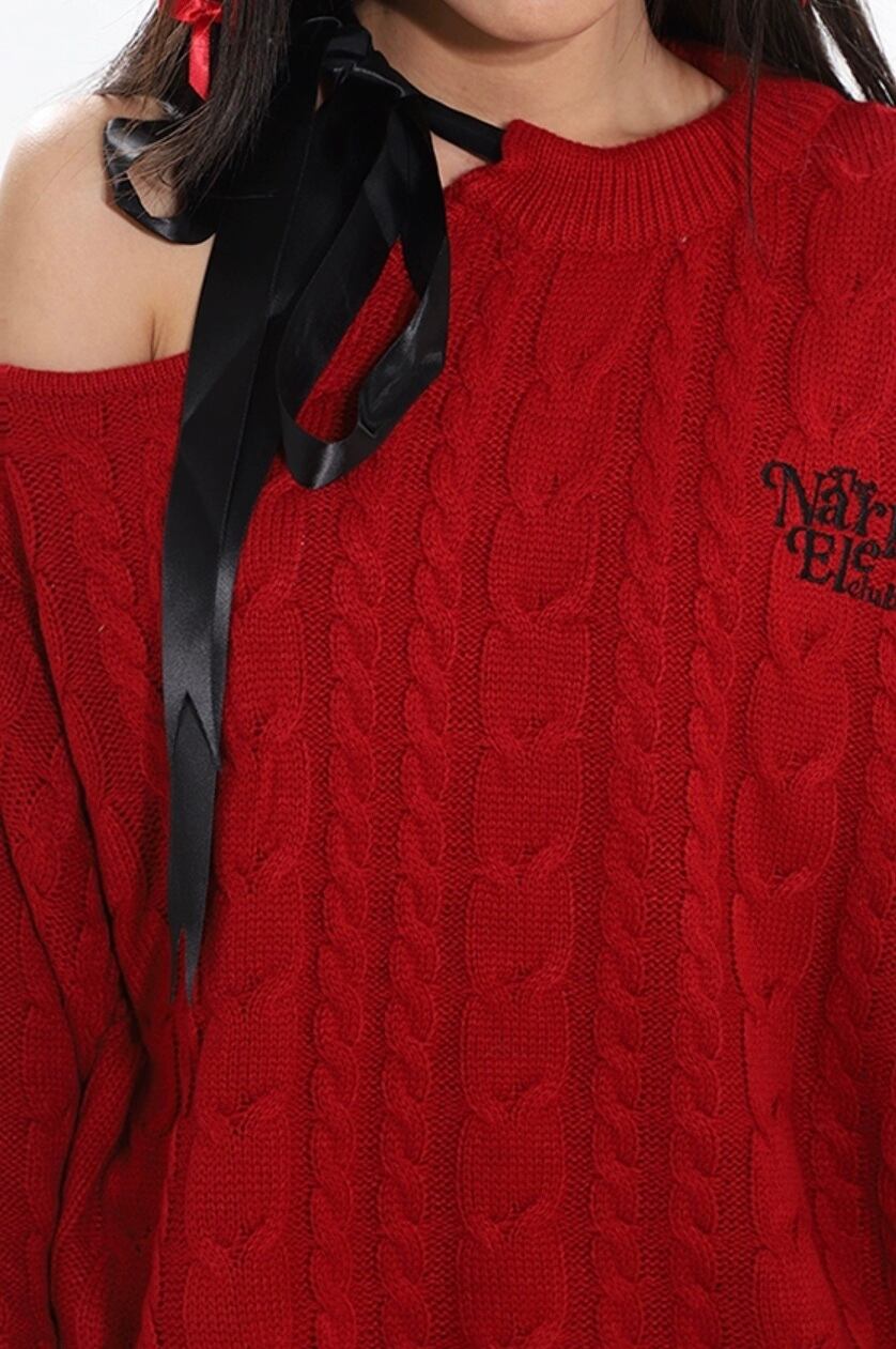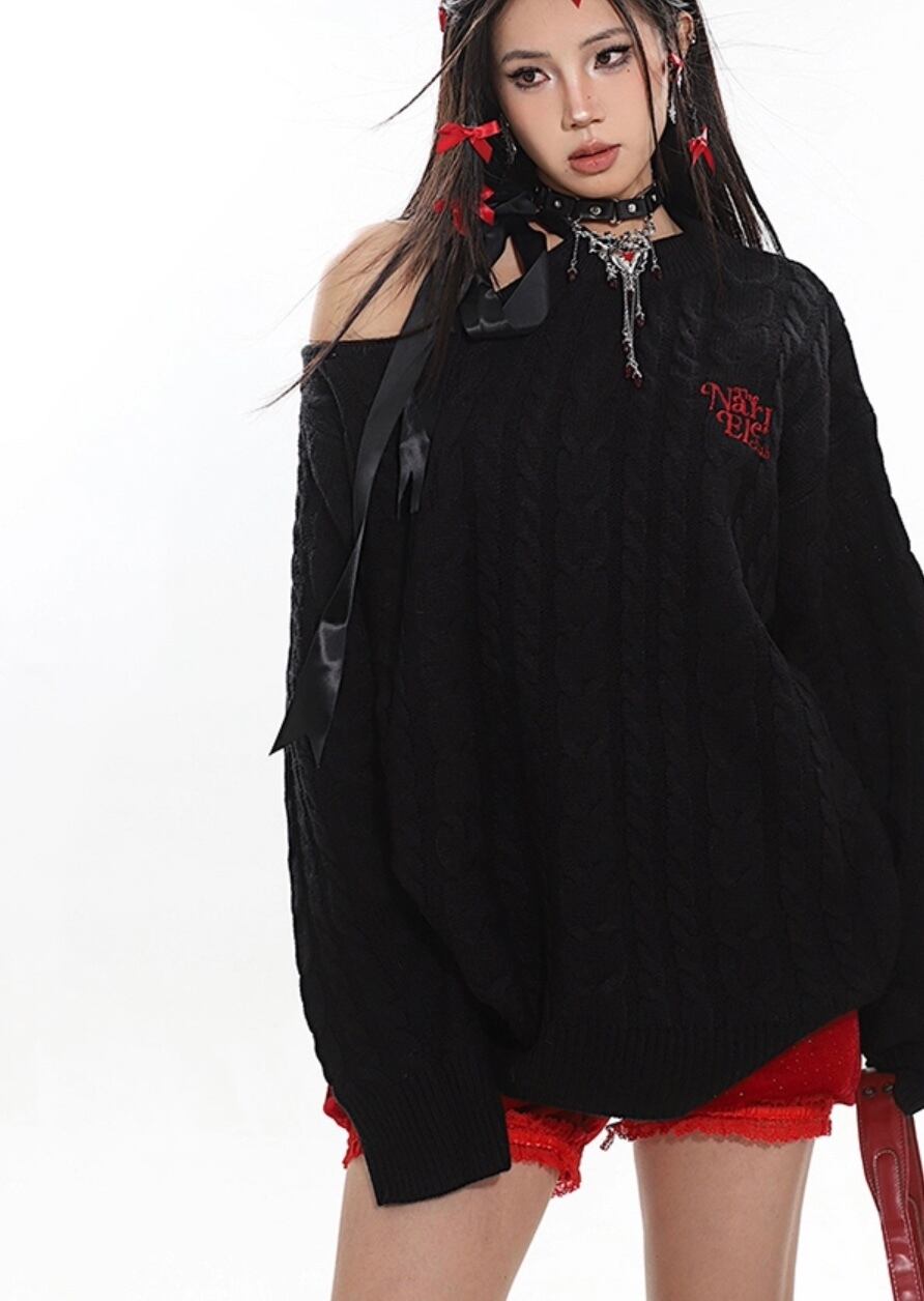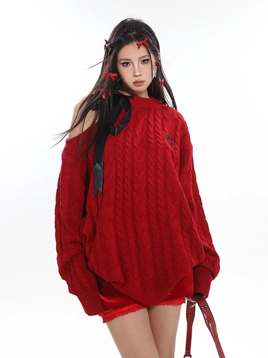 赤 オフショルダー 黒 ブラック セーター ワンピース カジュアル