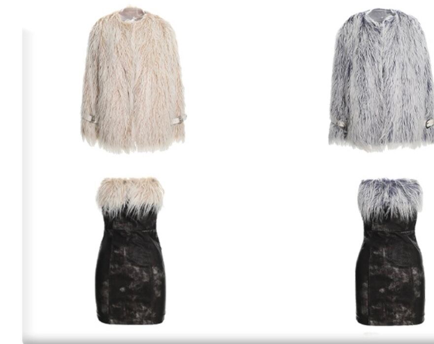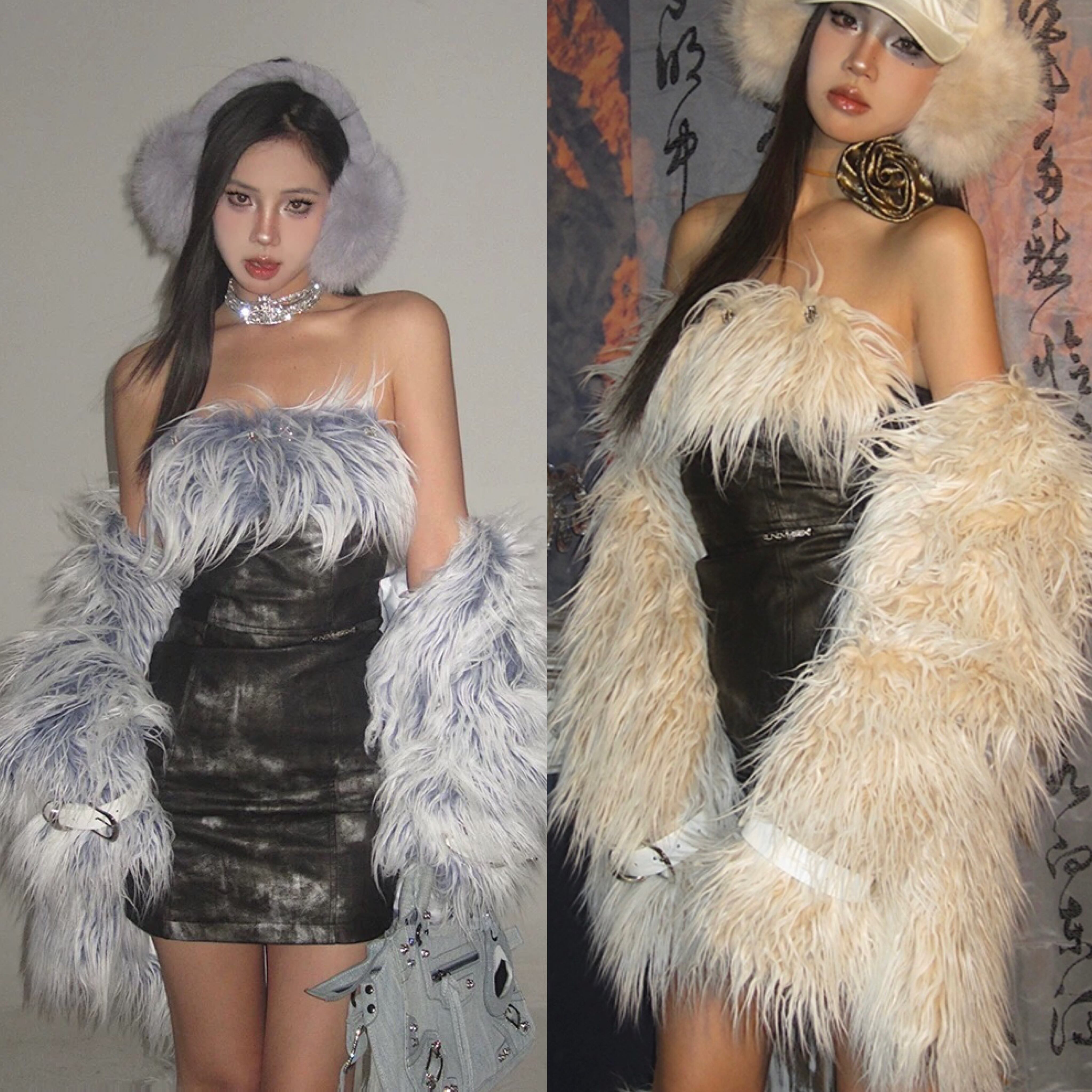 ワンピース ファー かっこいい ベージュ 水色 ベアトップ ドレス