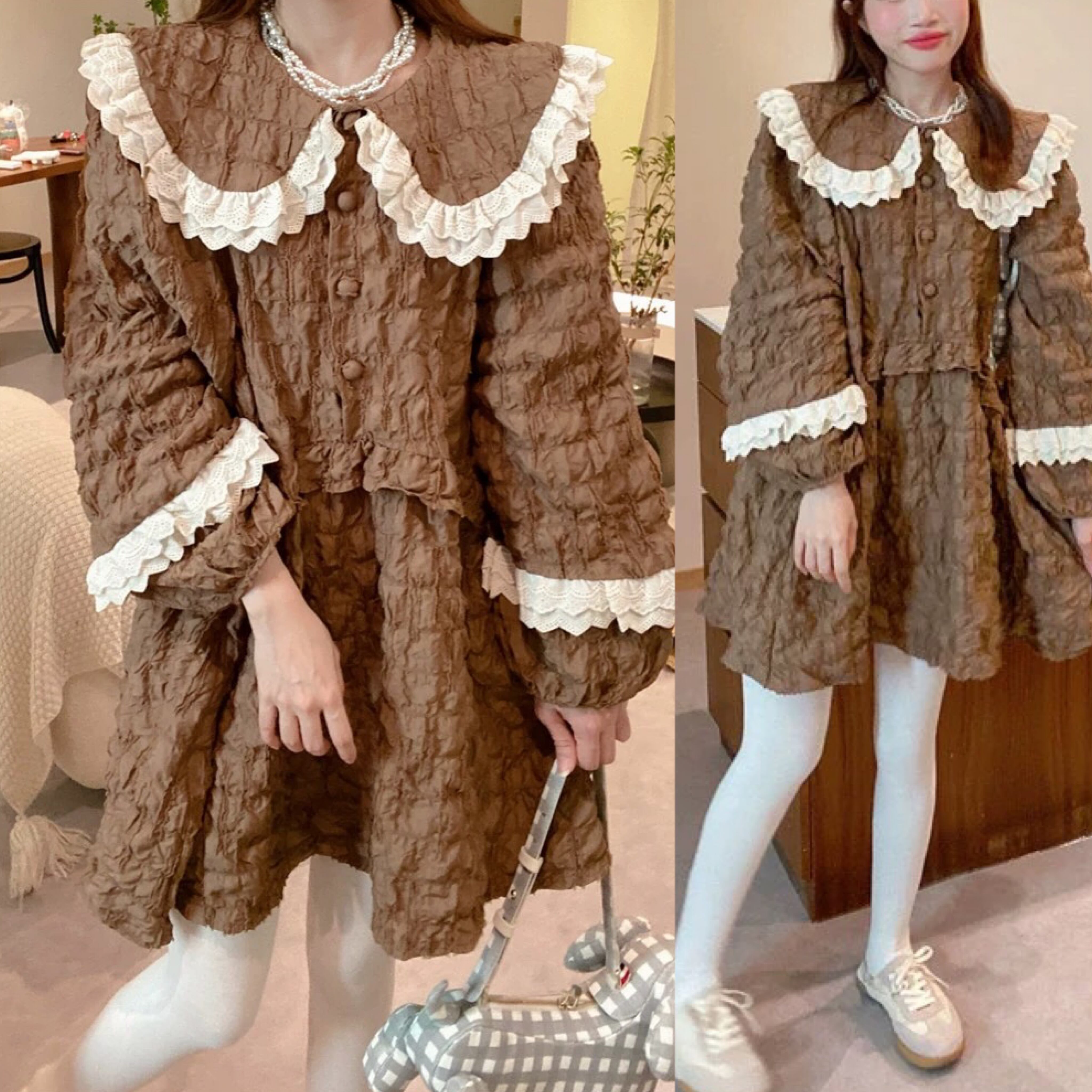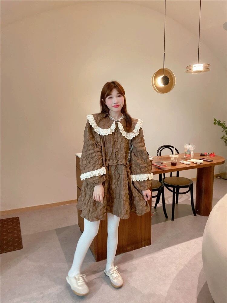 ワンピース 茶色 ブラウス ゆったり チュニック カジュアル