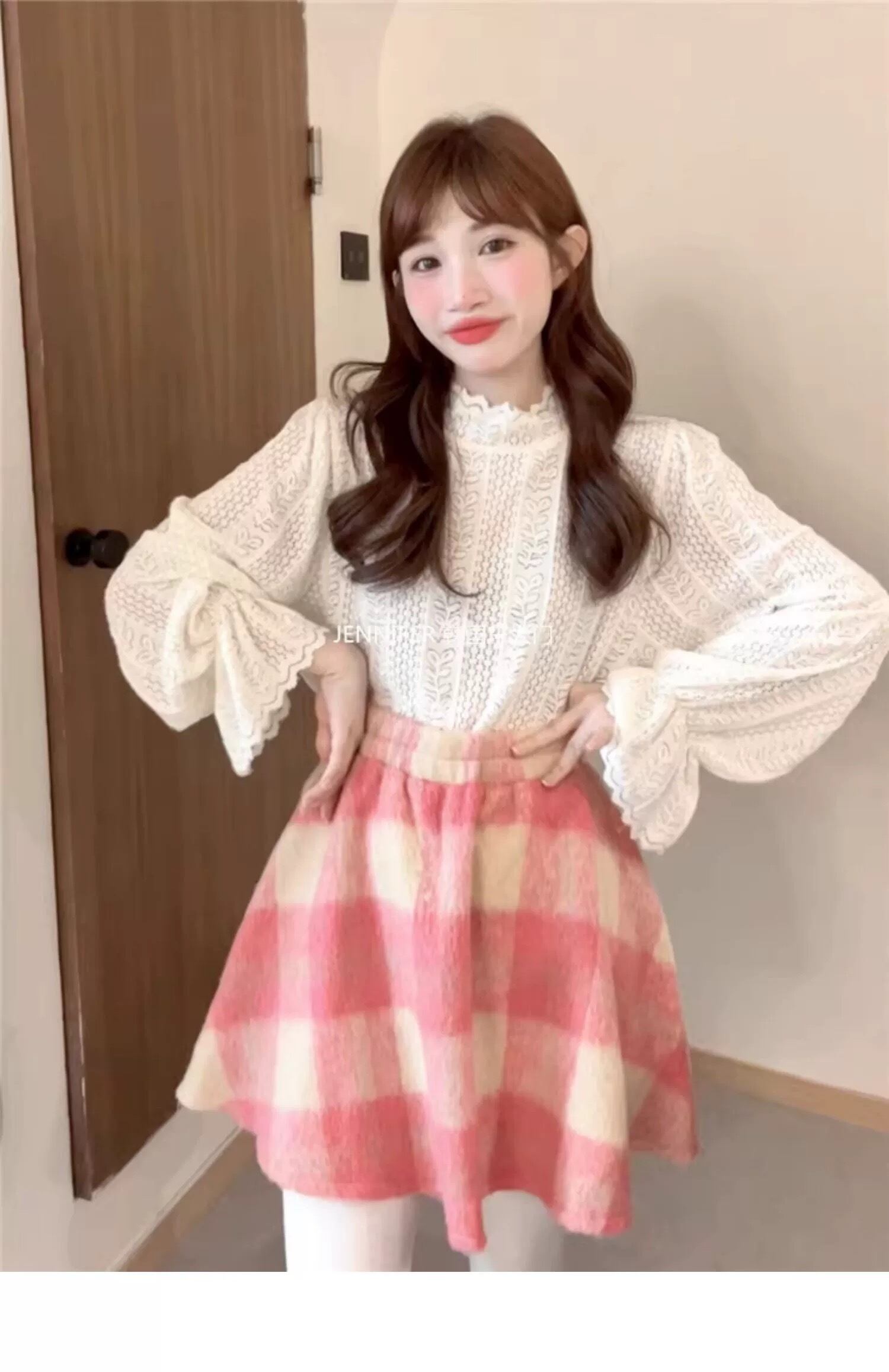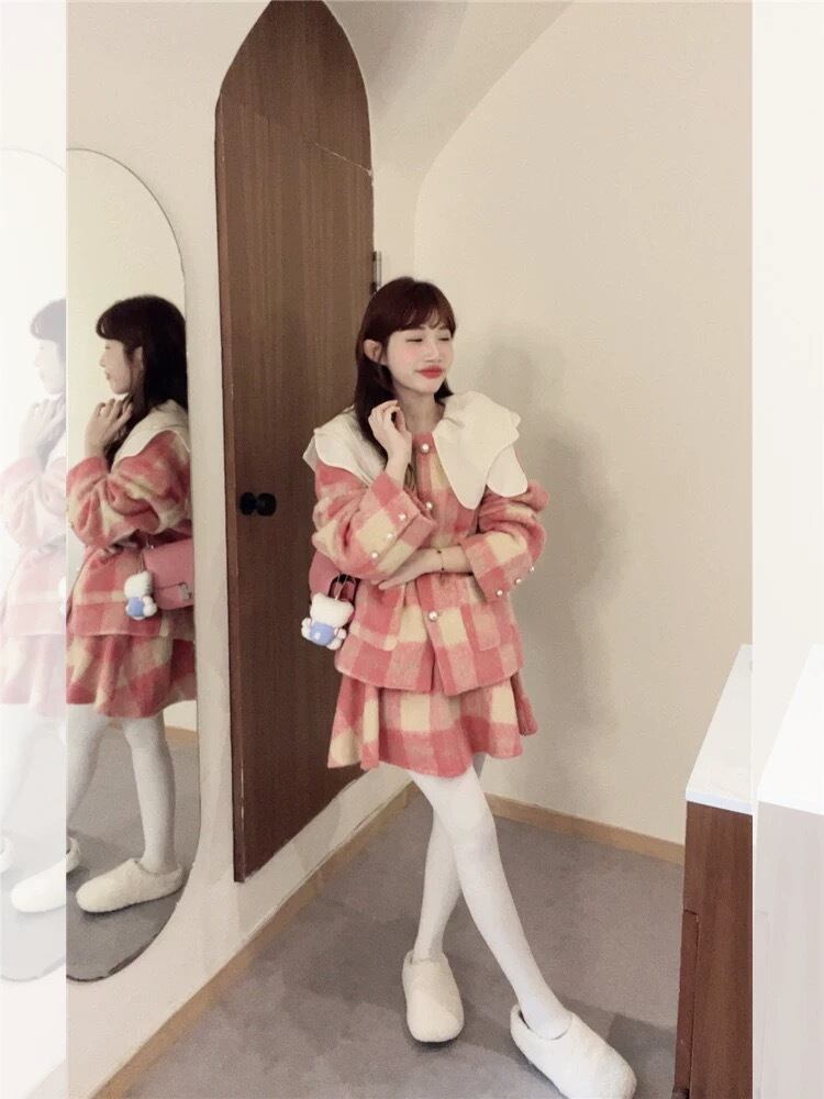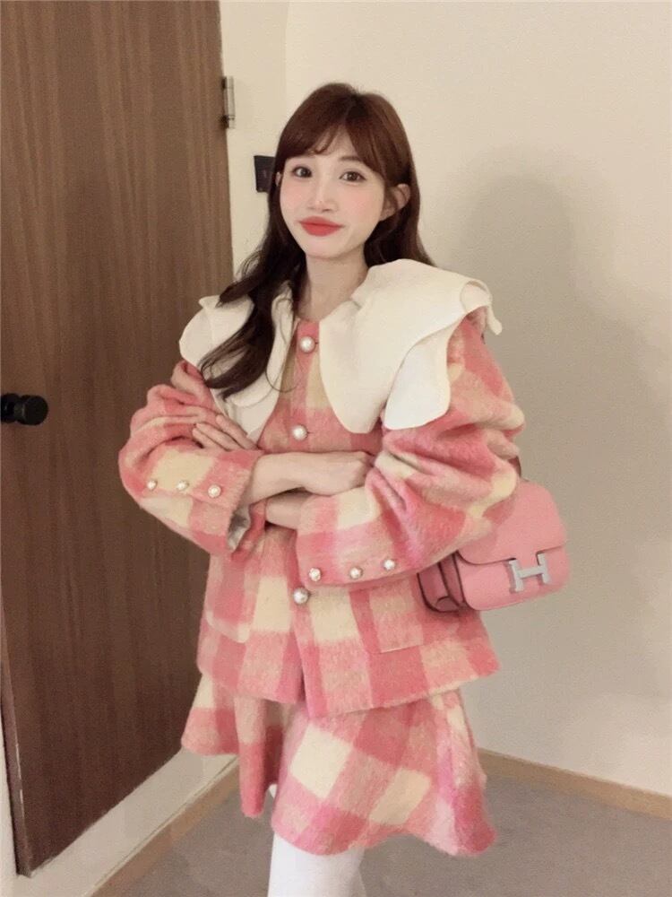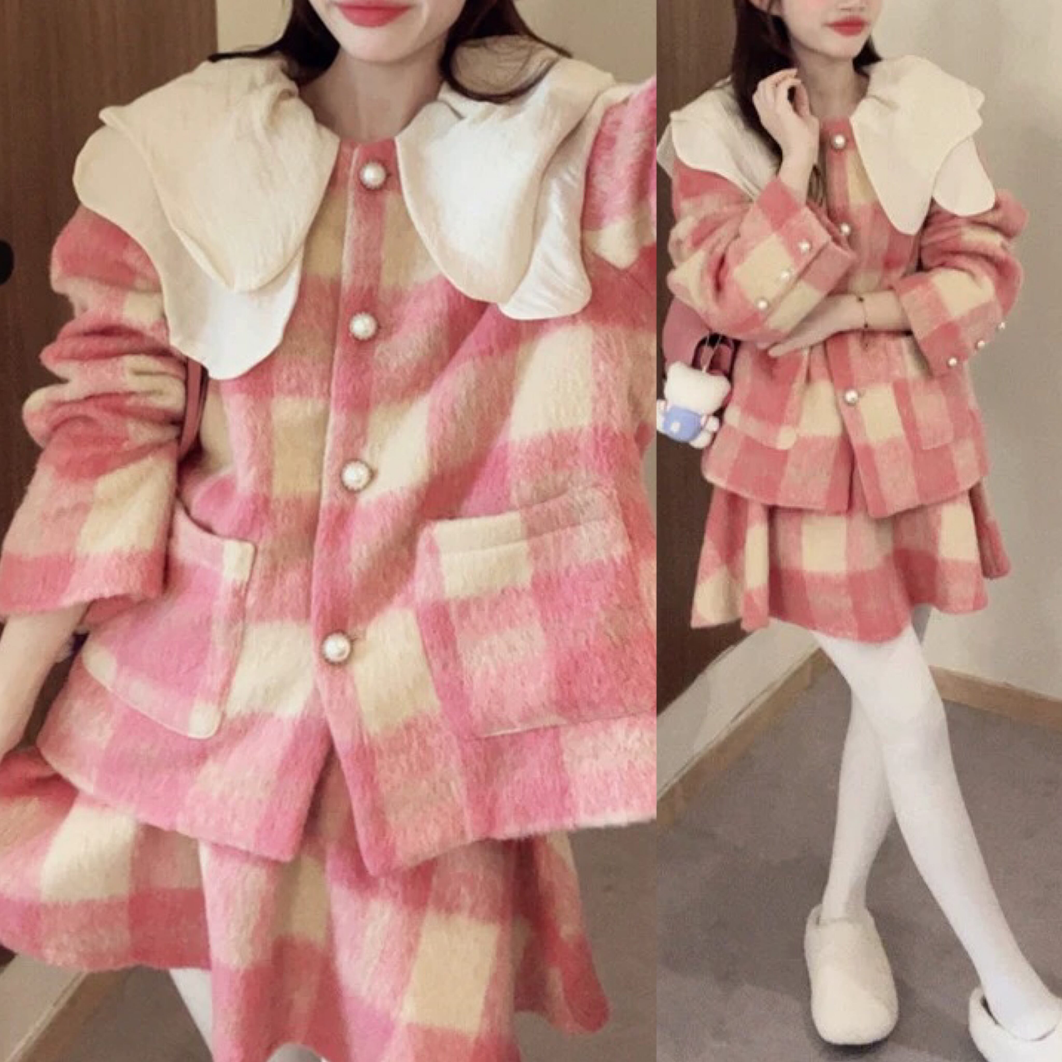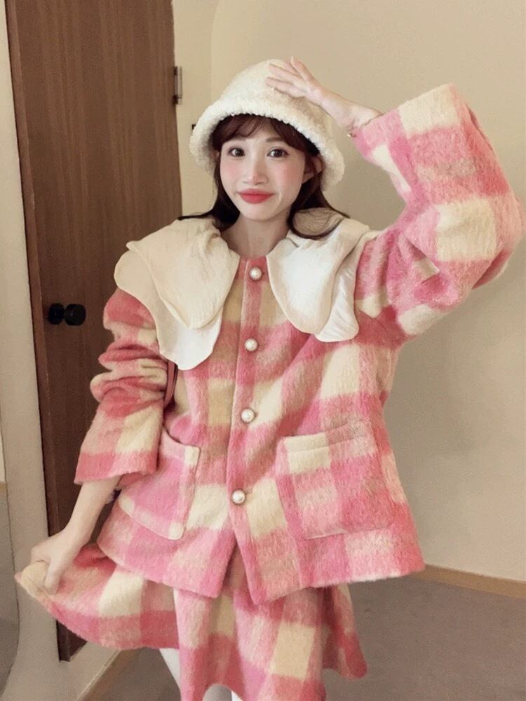 【セットアップ】ジャケット チェック ピンク スカート スーツ