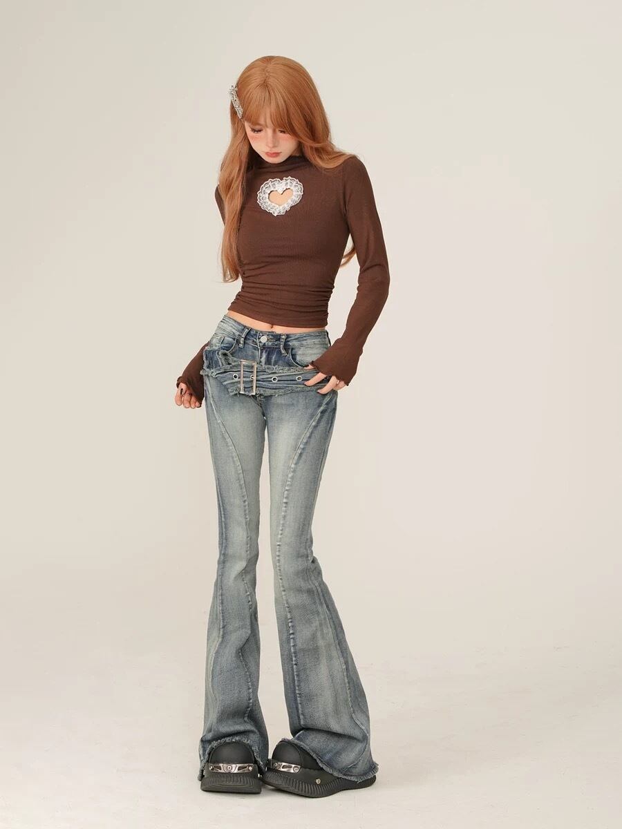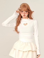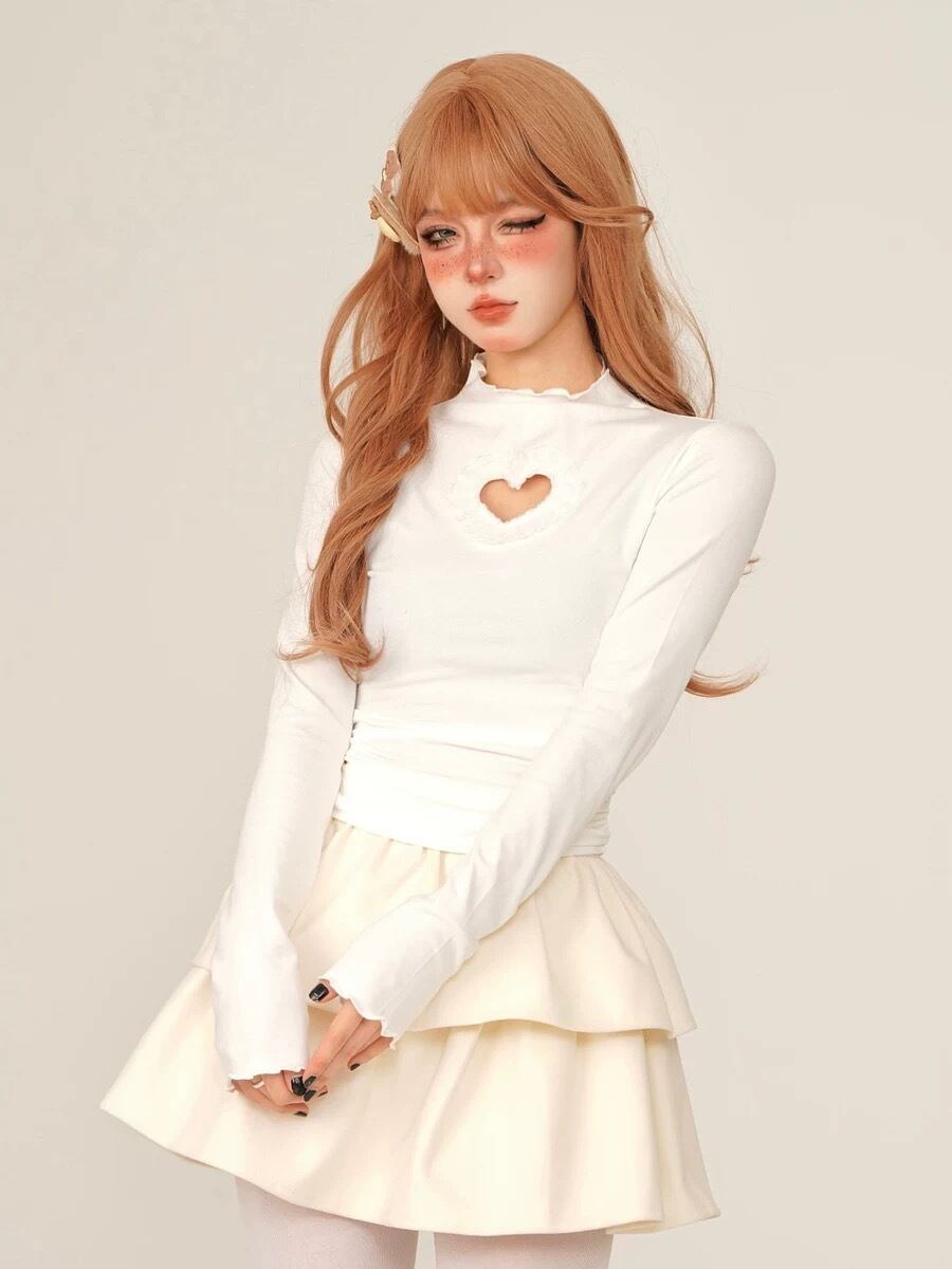 トップス ハート ガーリー 茶色 白 ハイネック ブラウス セーター