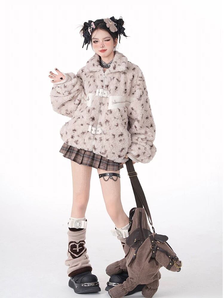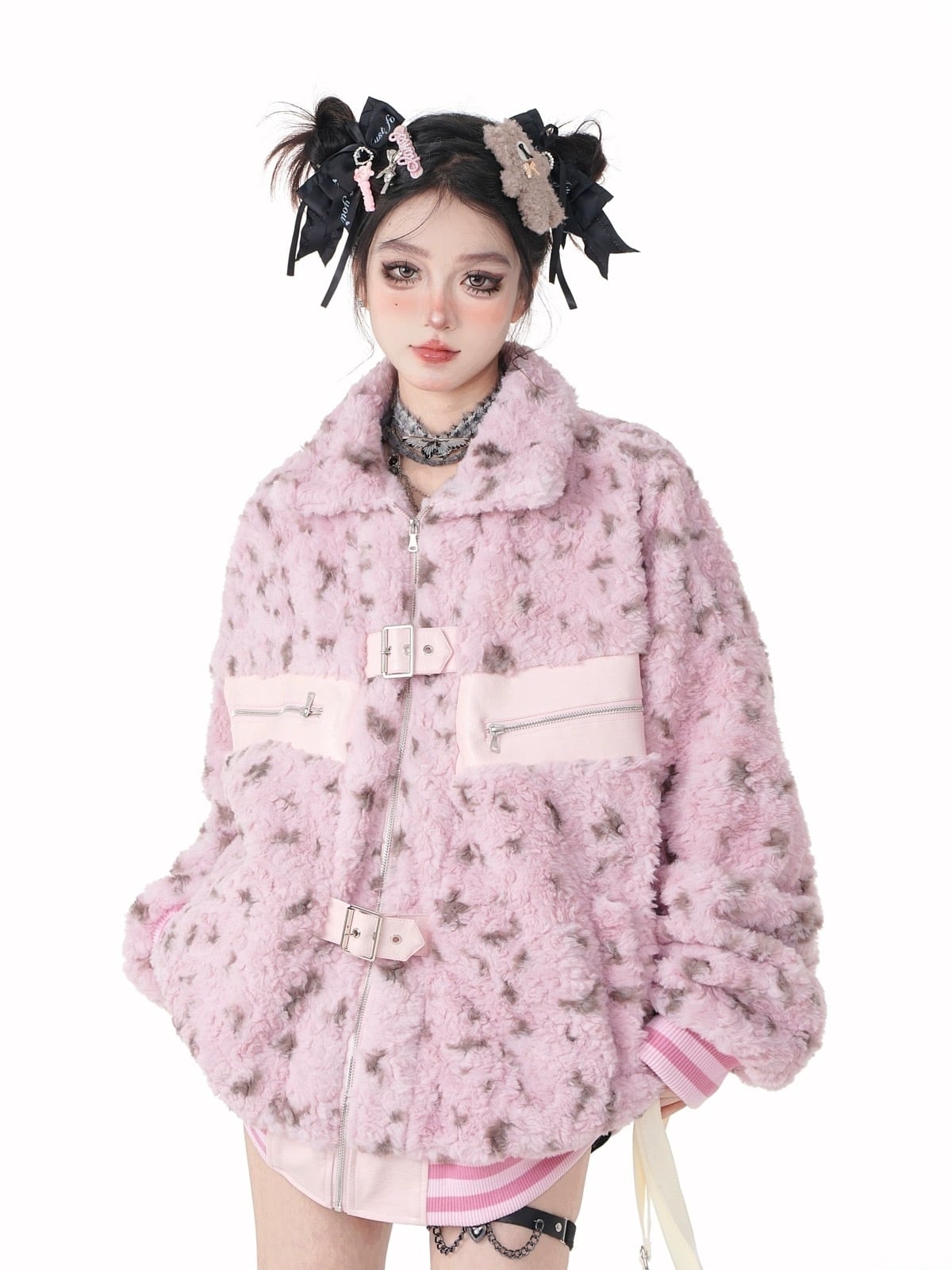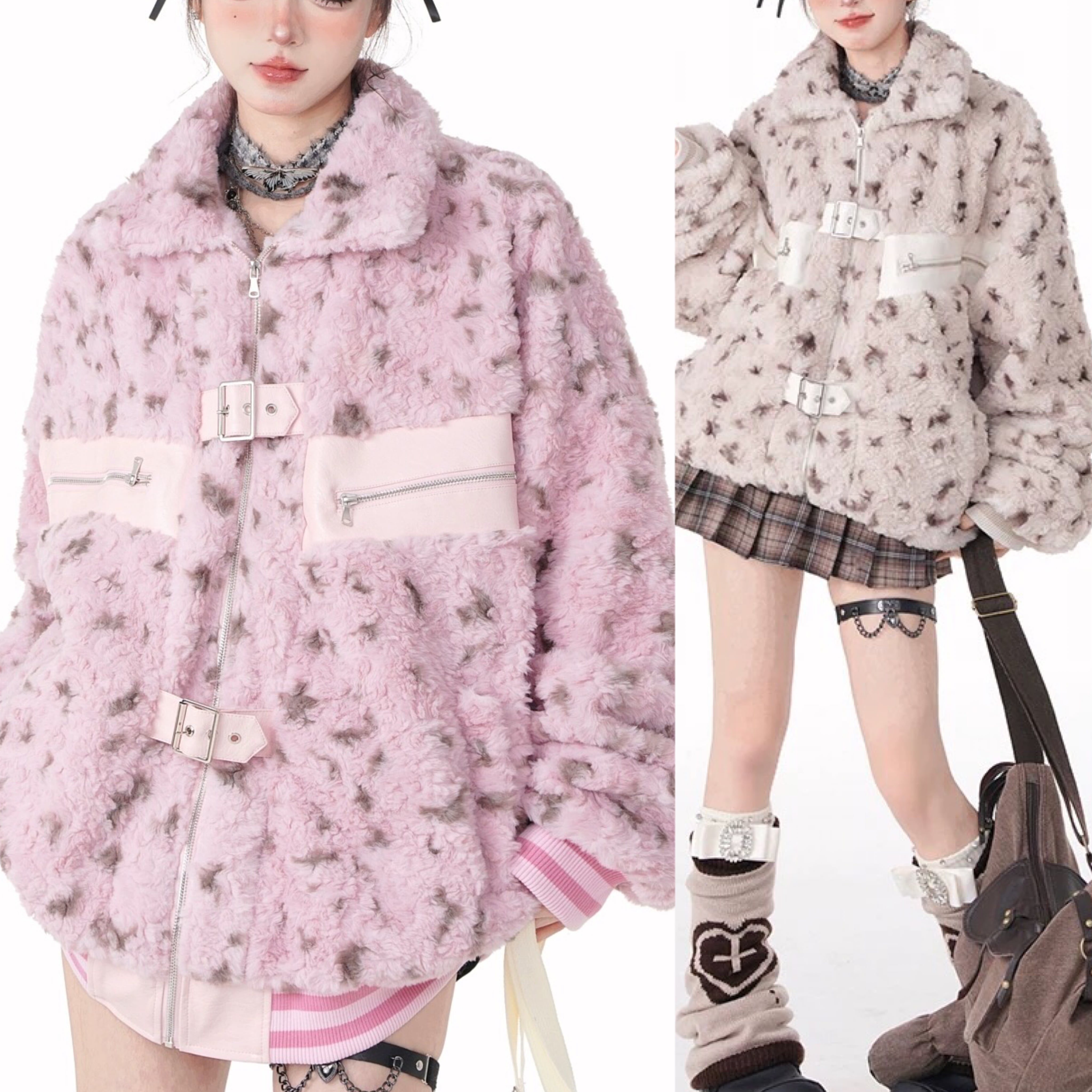 アウター ジャケット コート ブルゾン レオパード ヒョウ柄 ピンク フリース