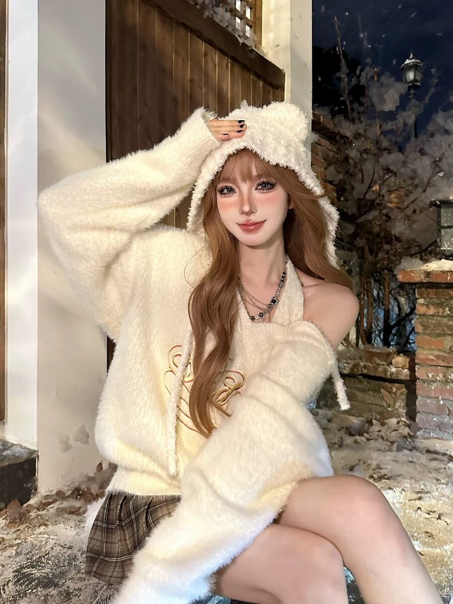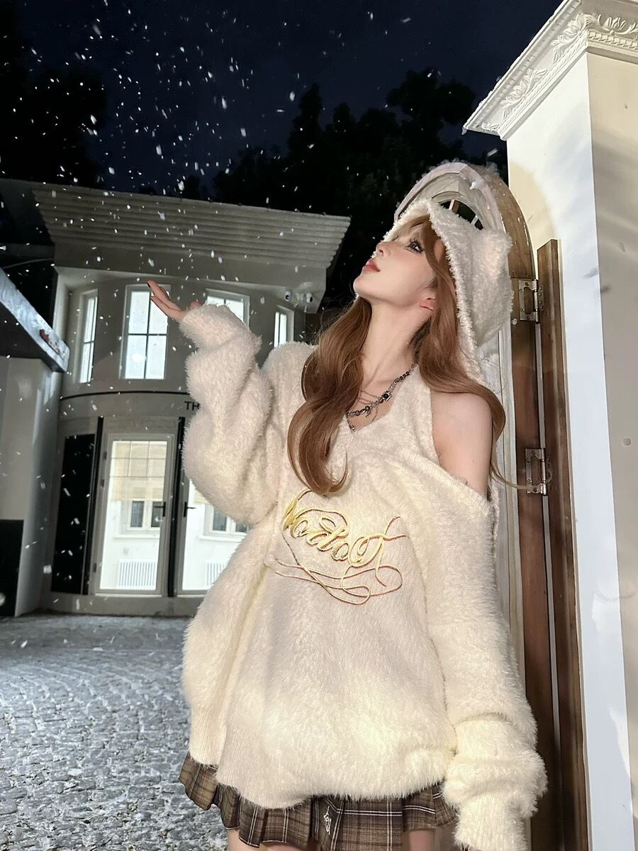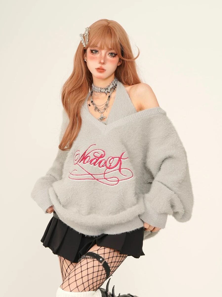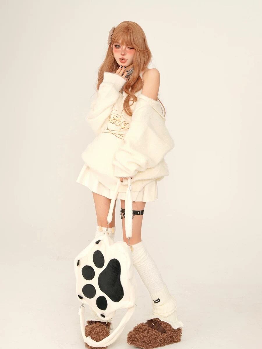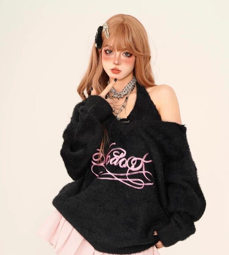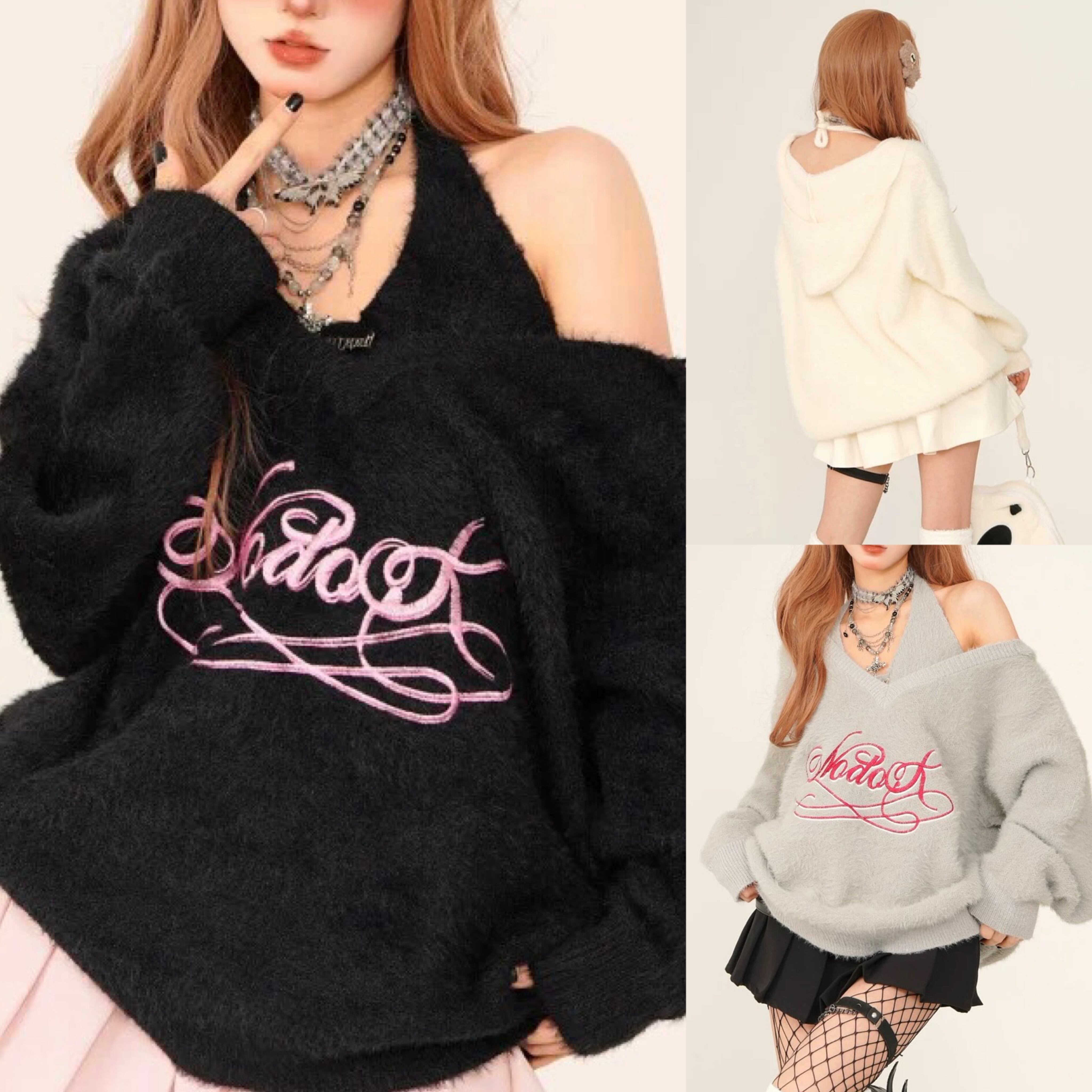 【トップセット】オフショルダー XL 白 黒 ピンク グレー セーター カーディガン