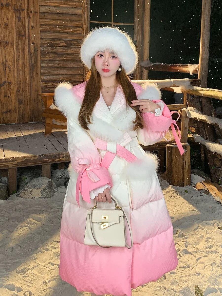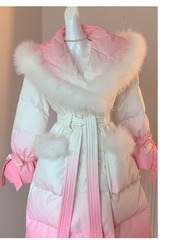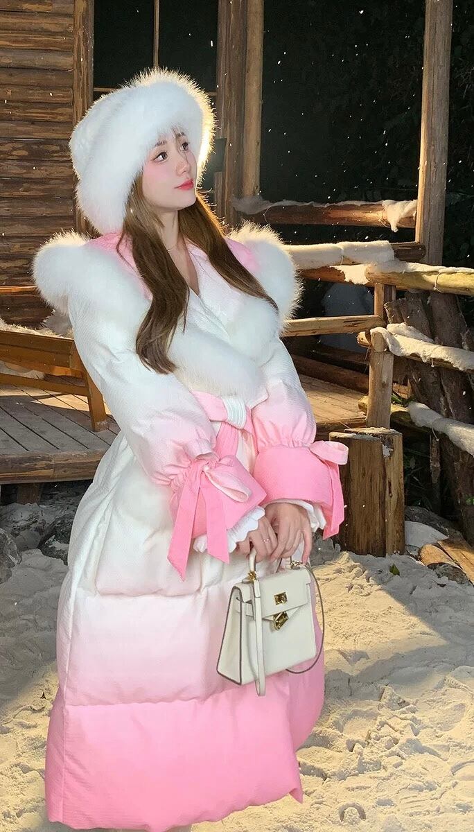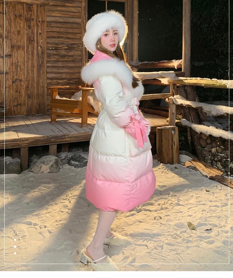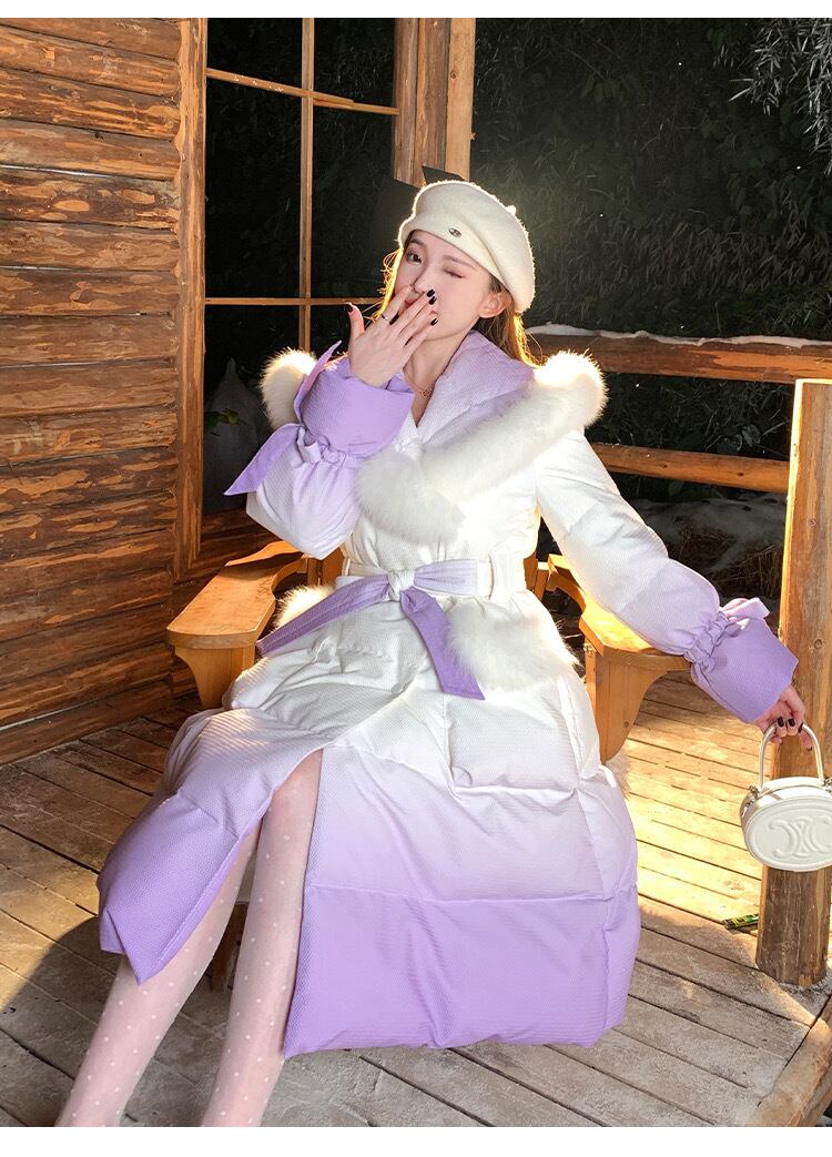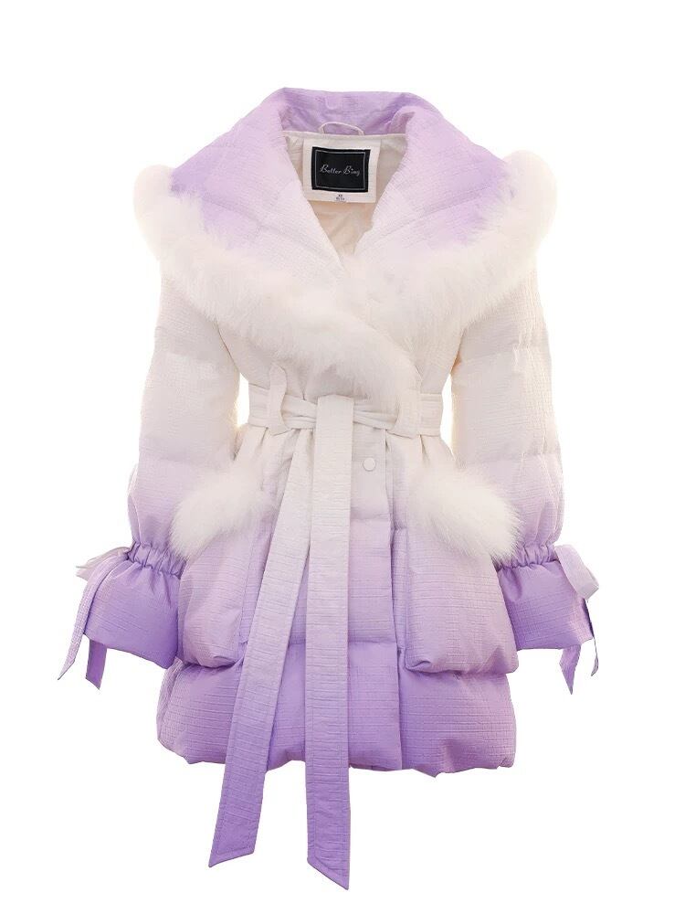 コート グラデーション ピンク 紫 ファー アウター ジャケット ダウンコート リボン ピンク 紫
