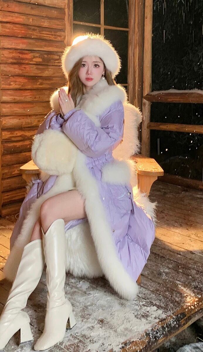 アウター ファー コート 紫 パープル 白 ワンピース ジャケット アウター ダウン