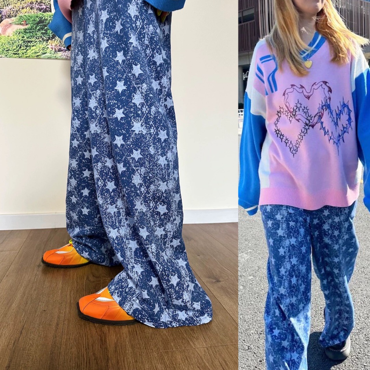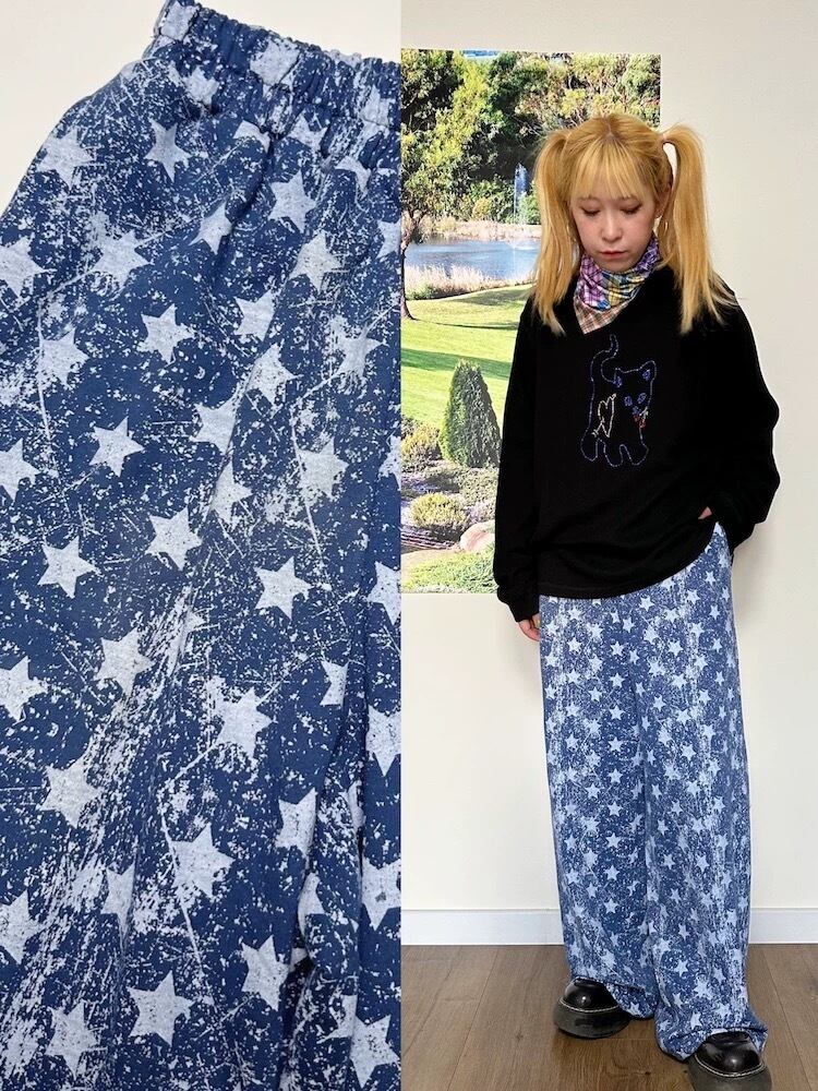 パンツ 青 星 スウェット ボトムス ズボン デニムカラー
