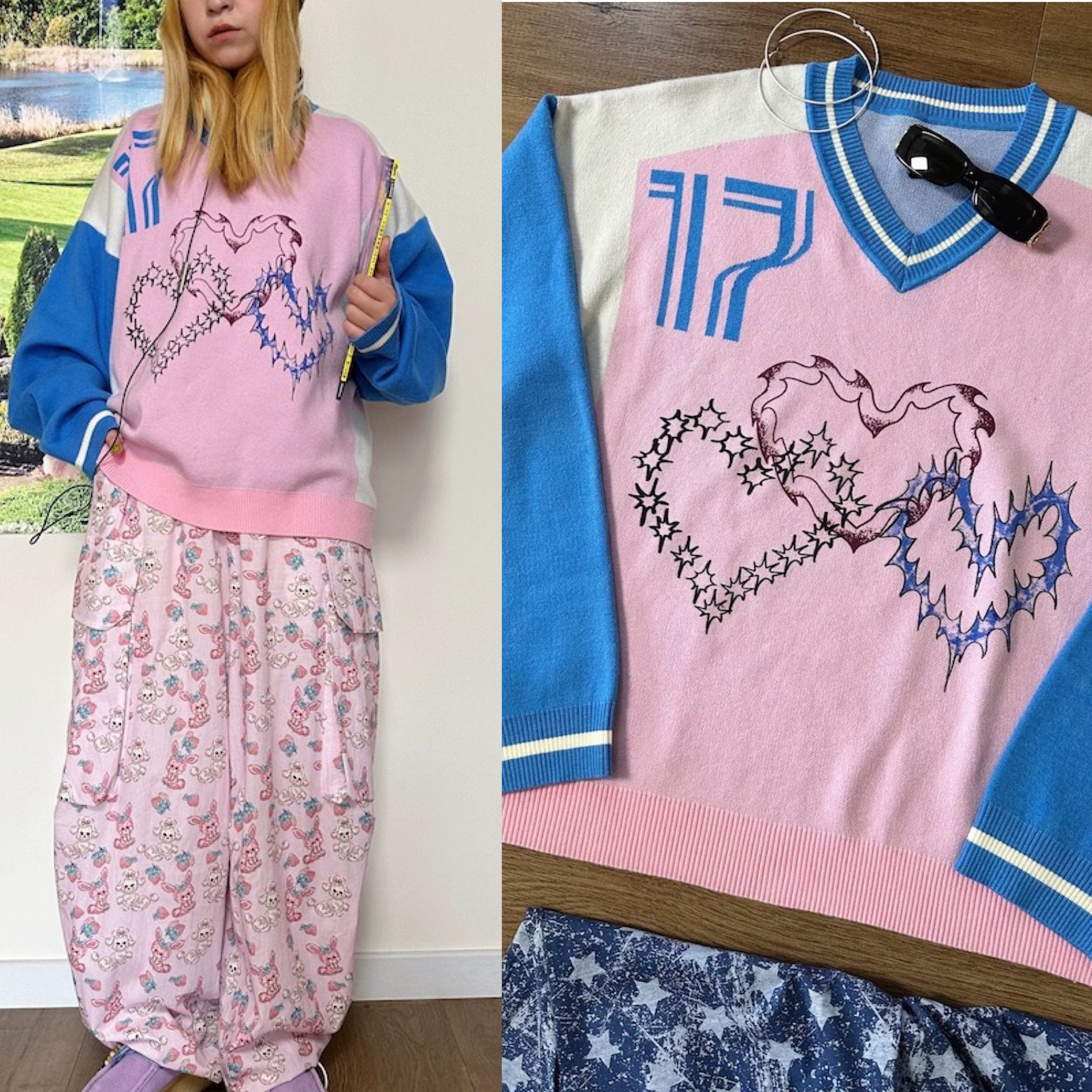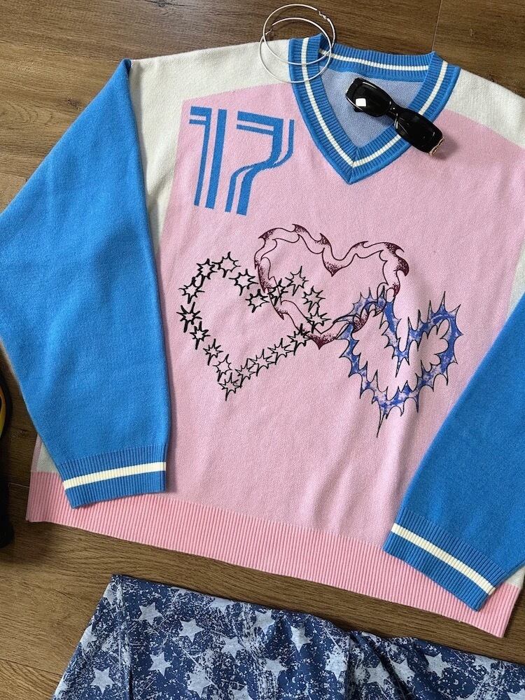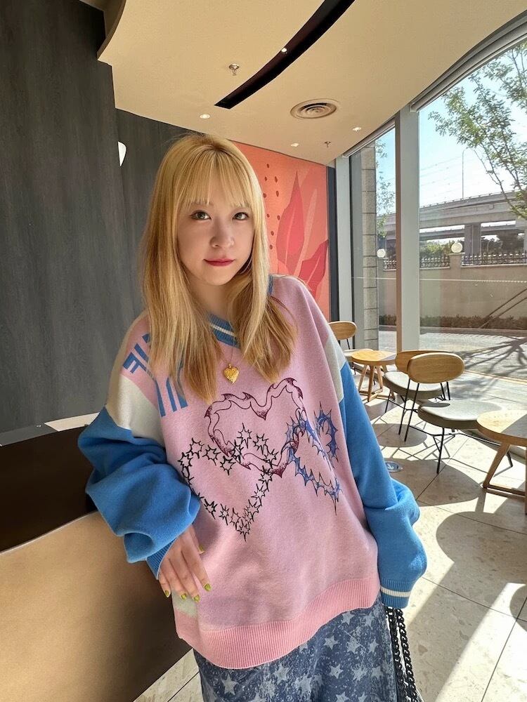 セーター ピンク ハート カジュアル スウェット トップス ハート