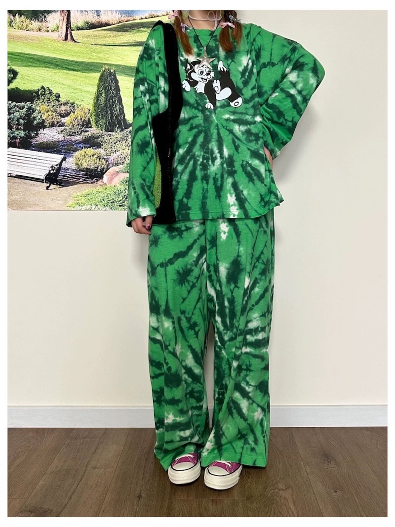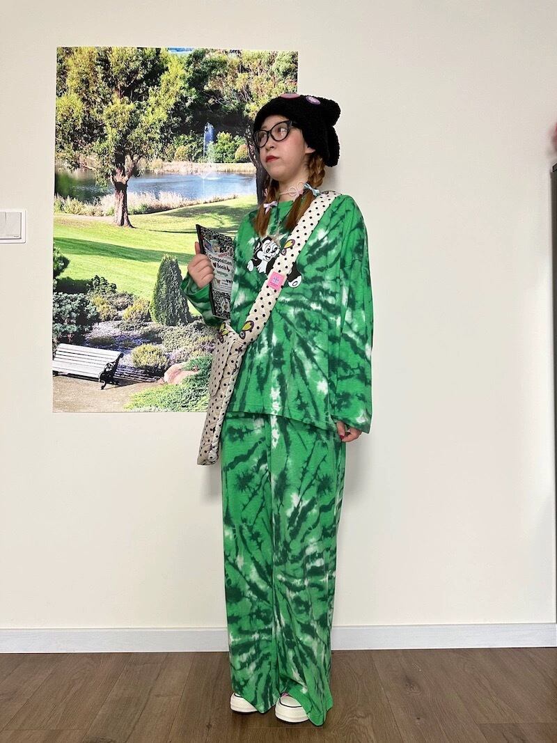 緑 パンツ ボトムス カジュアル だいだい グラデーションスウェット