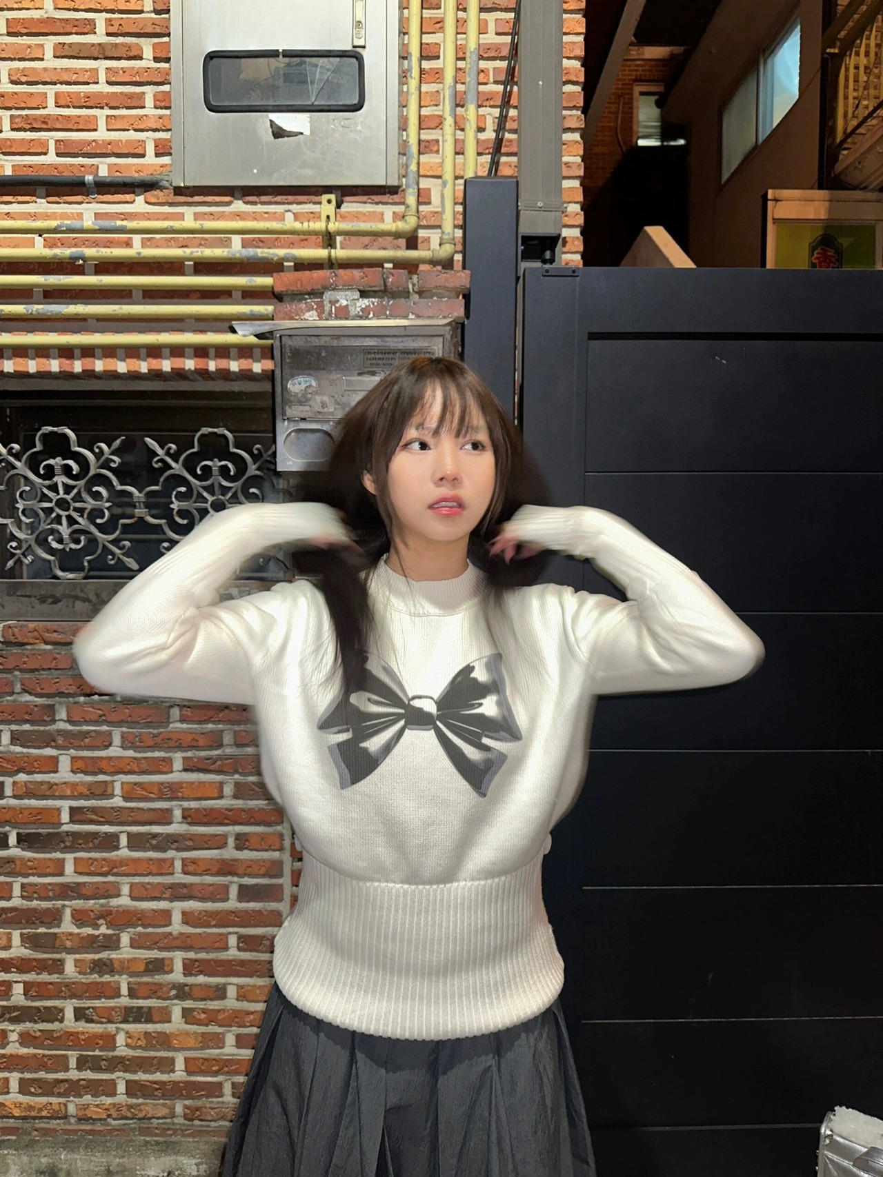 トレーナー カジュアル 白 リボン ハイネック スウェット ハイネック カジュアル トレーナー パーカー