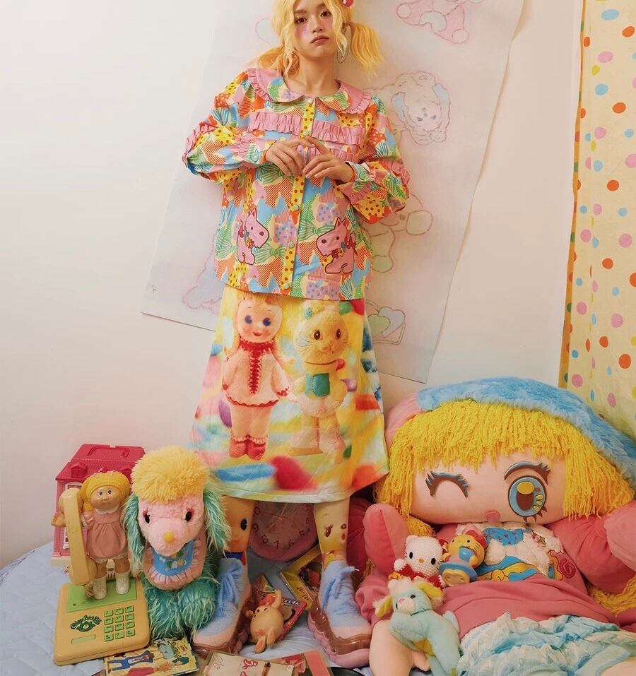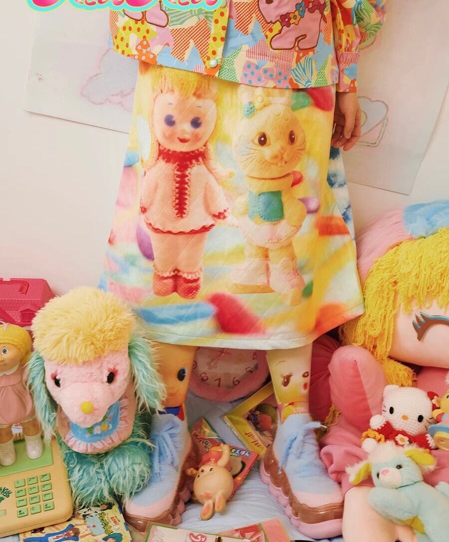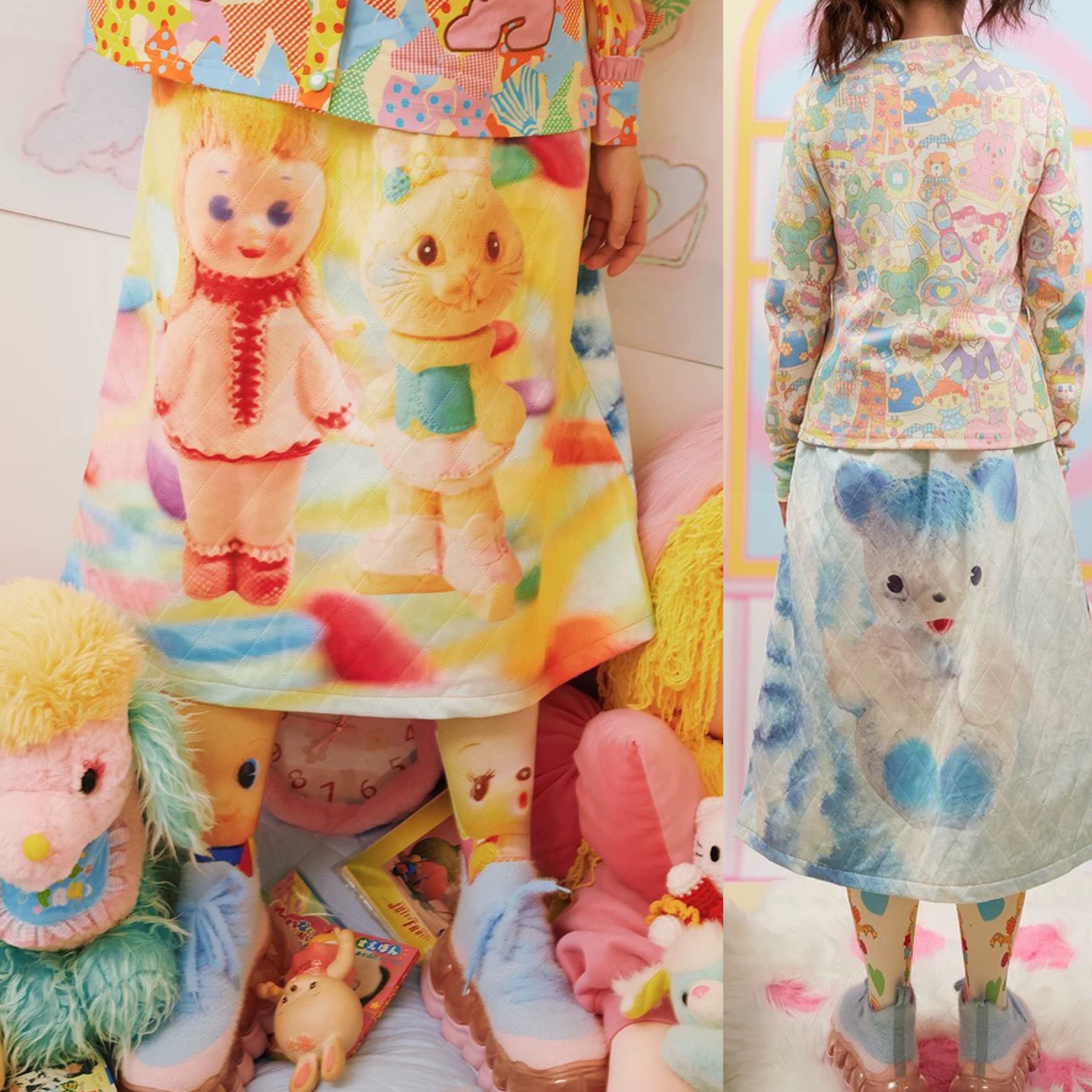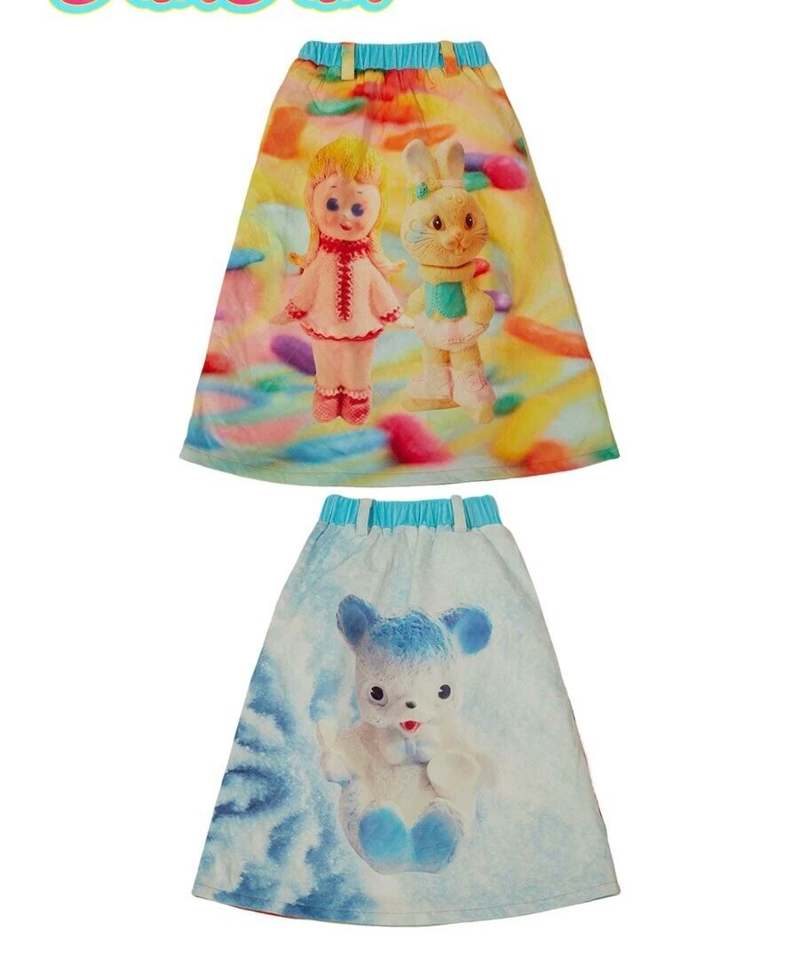 【リバーシブル❣️】スカート カラフル ぬいぐるみ くま 水色 カラフル レインボー ボトムス