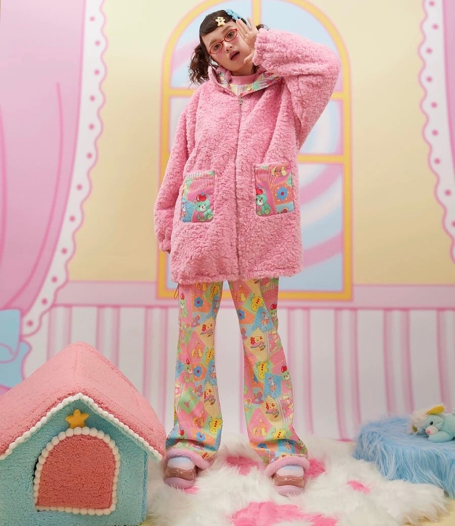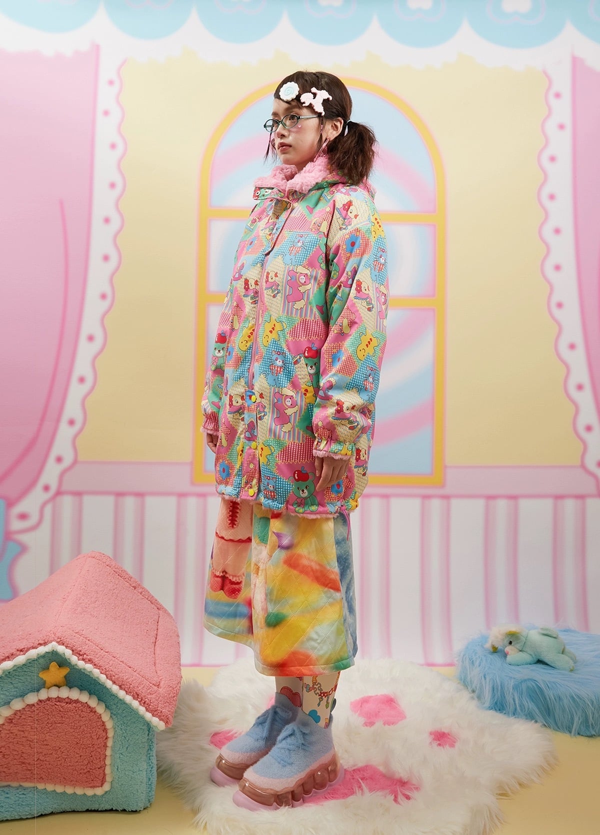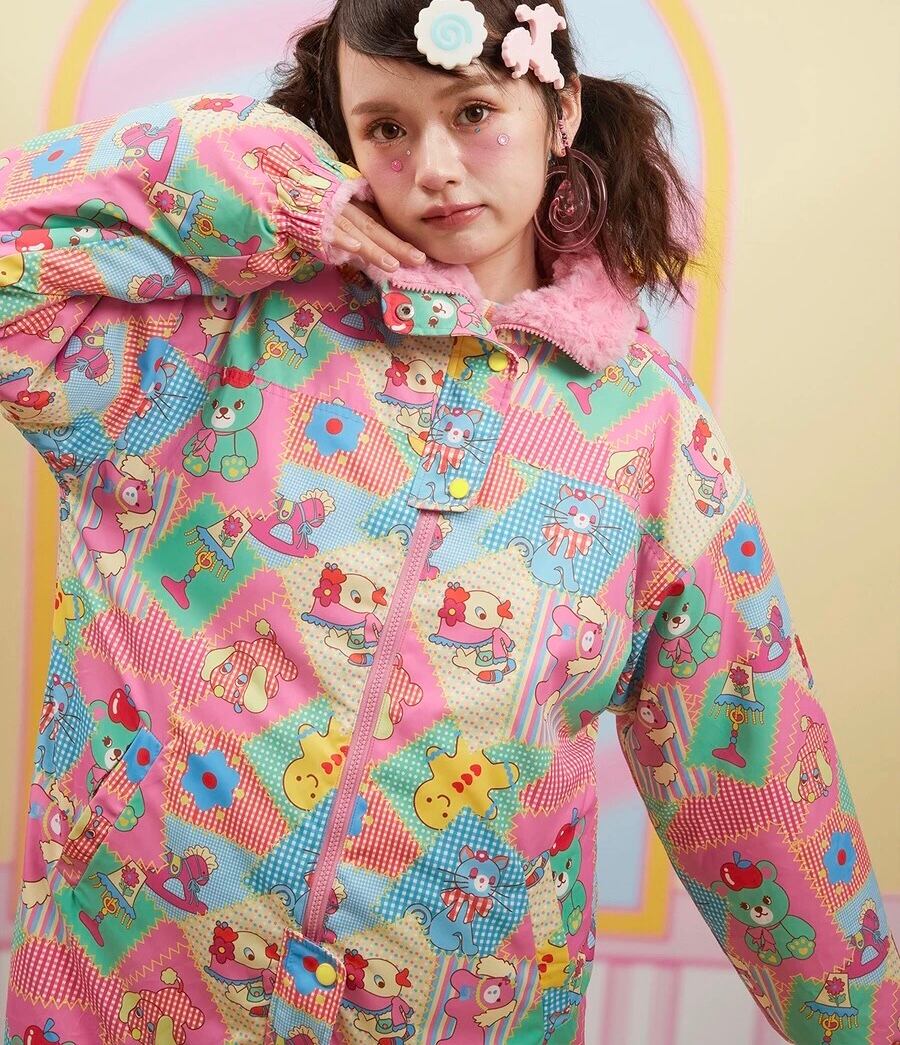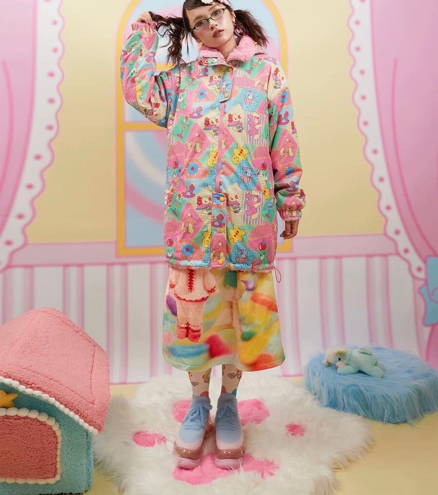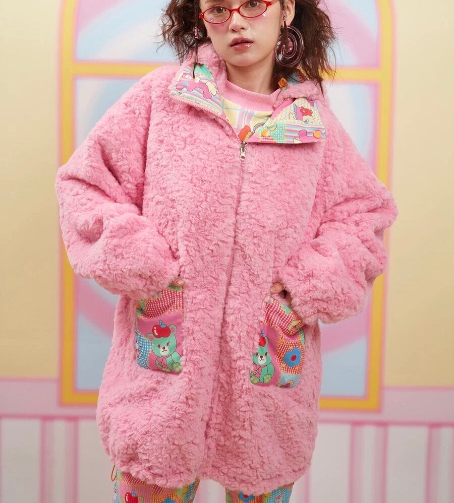 【リバーシブル❣️】ピンク パーカー アウター コート レインボー ガーリー フリース パーカー 可愛い ワンピース