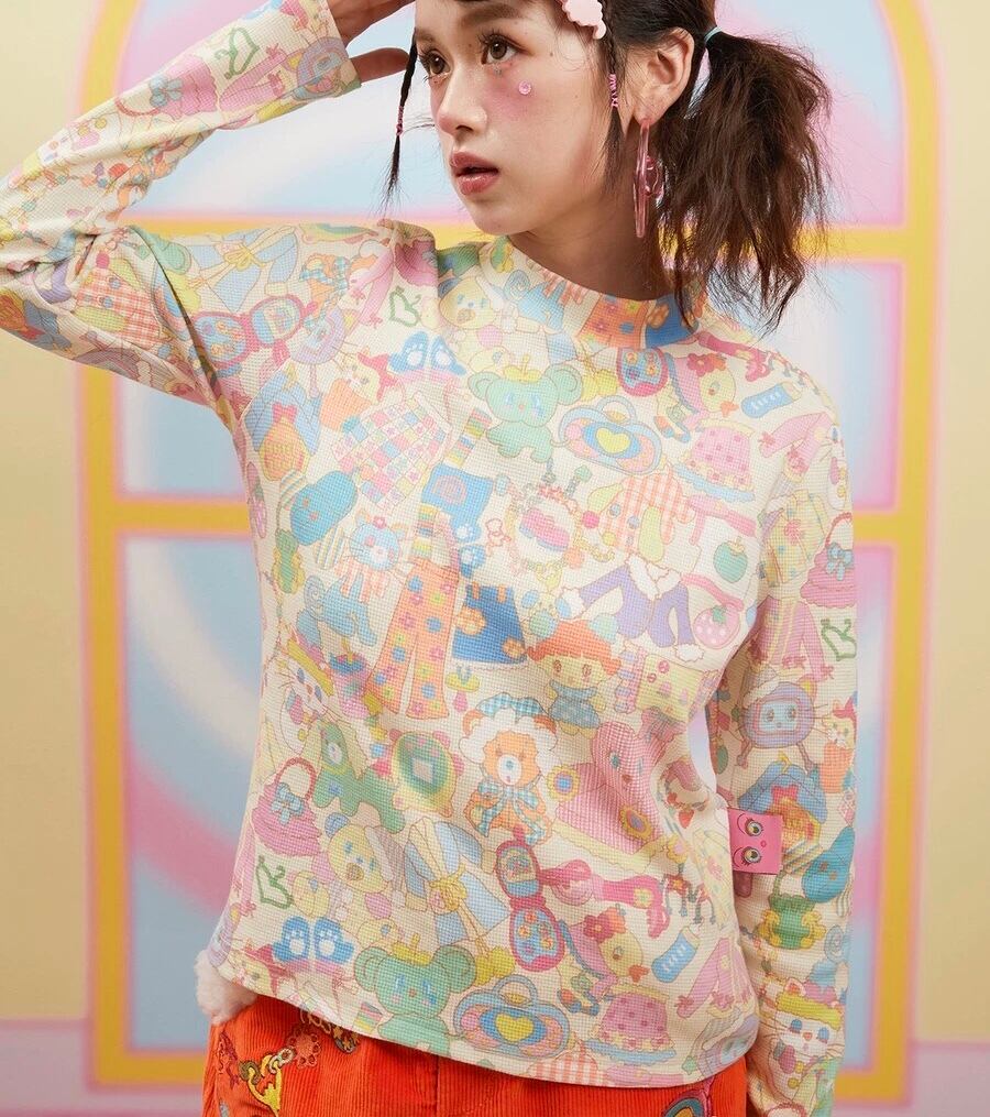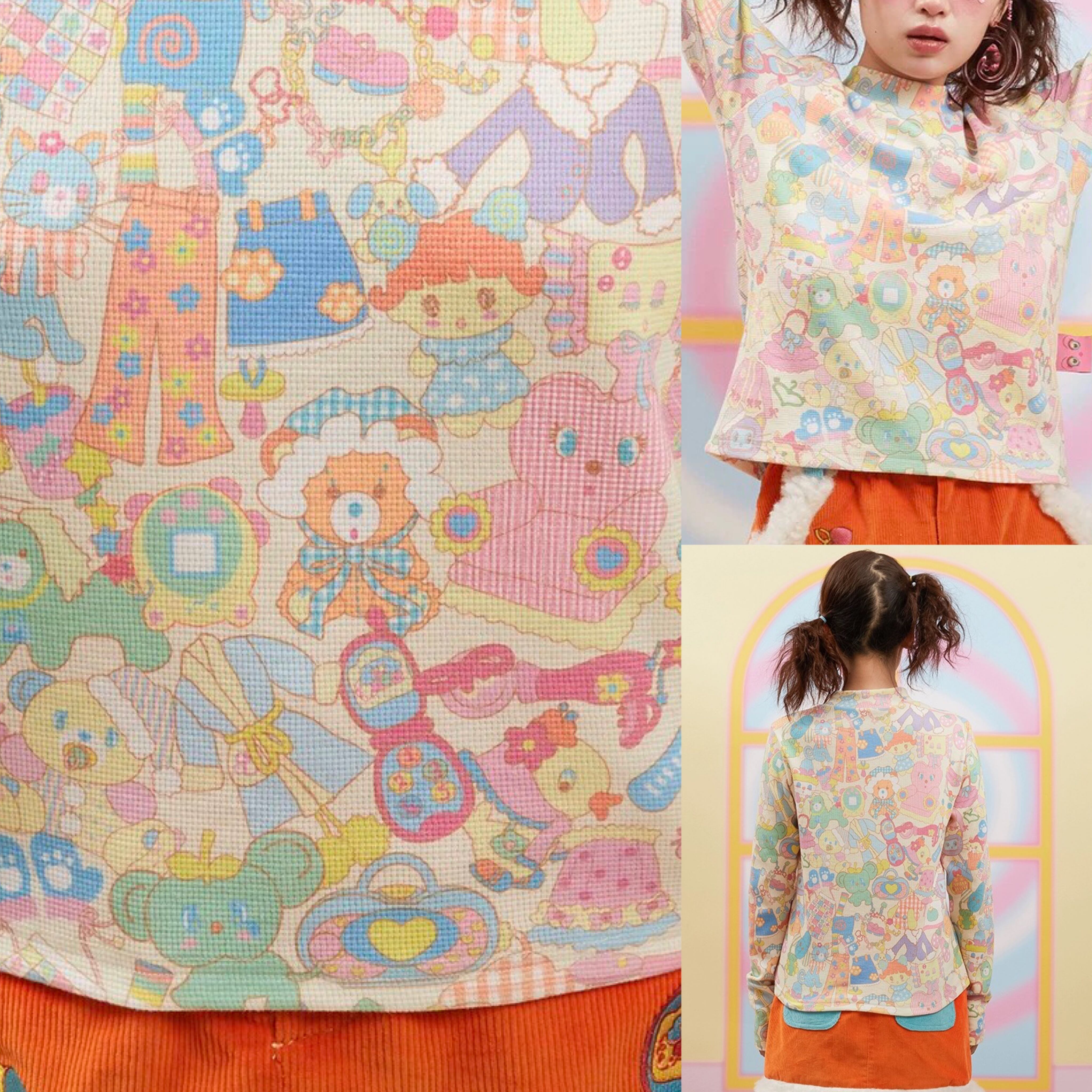 トップス カラフル 黄色 レインボー オレンジ アニマル ハイネック セーター ブラウス トップス
