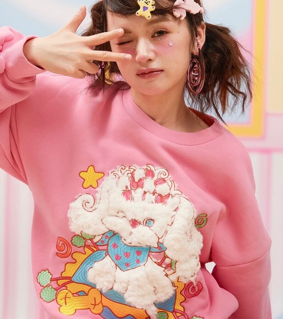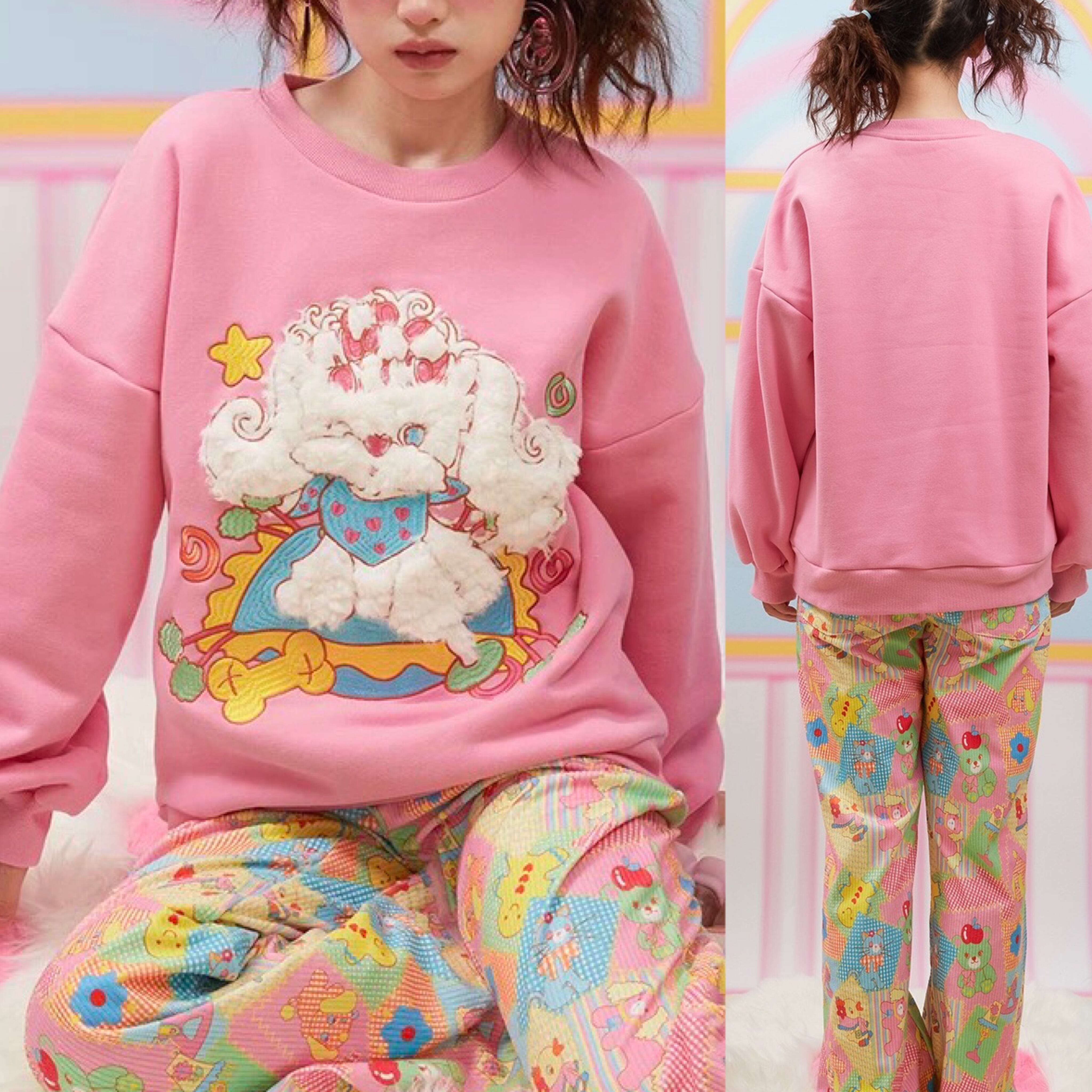 スウェット ピンク くま 犬 トレーナー パーカー ふわふわ リボン 可愛い ガーリー スウェット パーカー