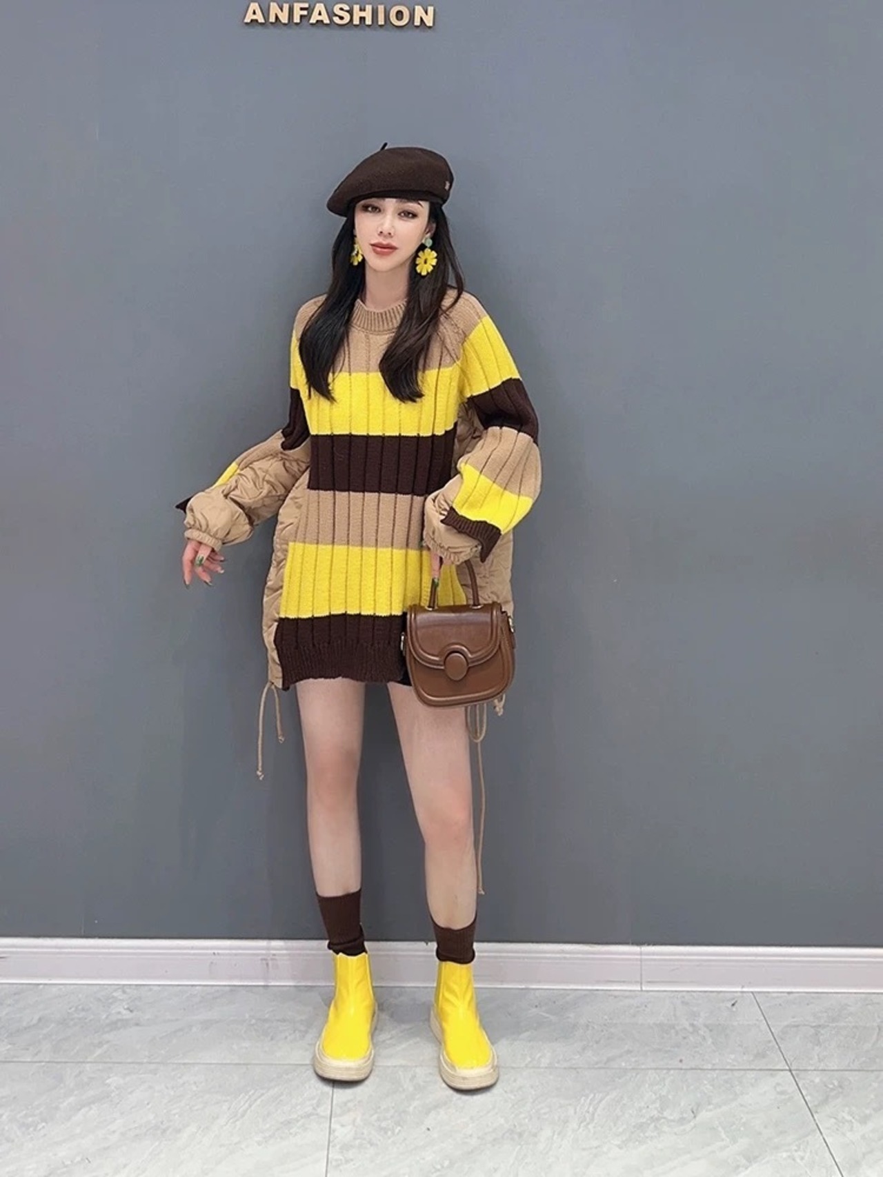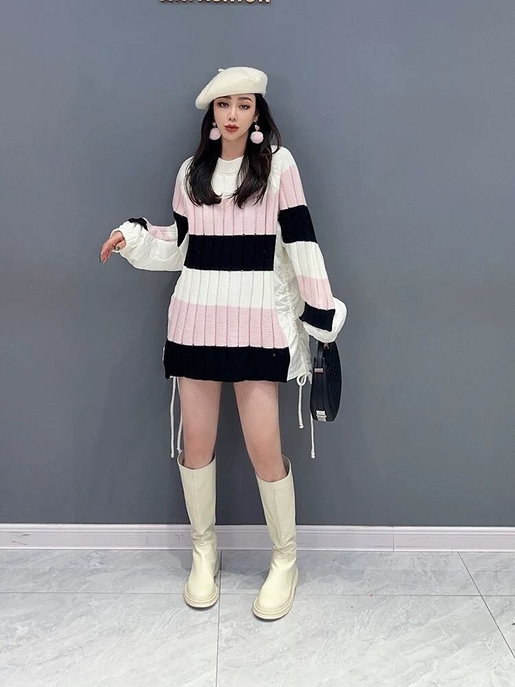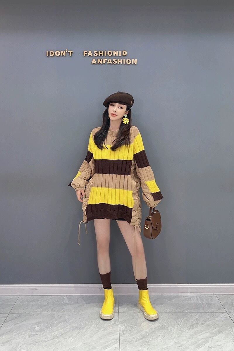 セーター 黄色 ボーダー 白 ピンク チェック ニット カーディガン ワンピース