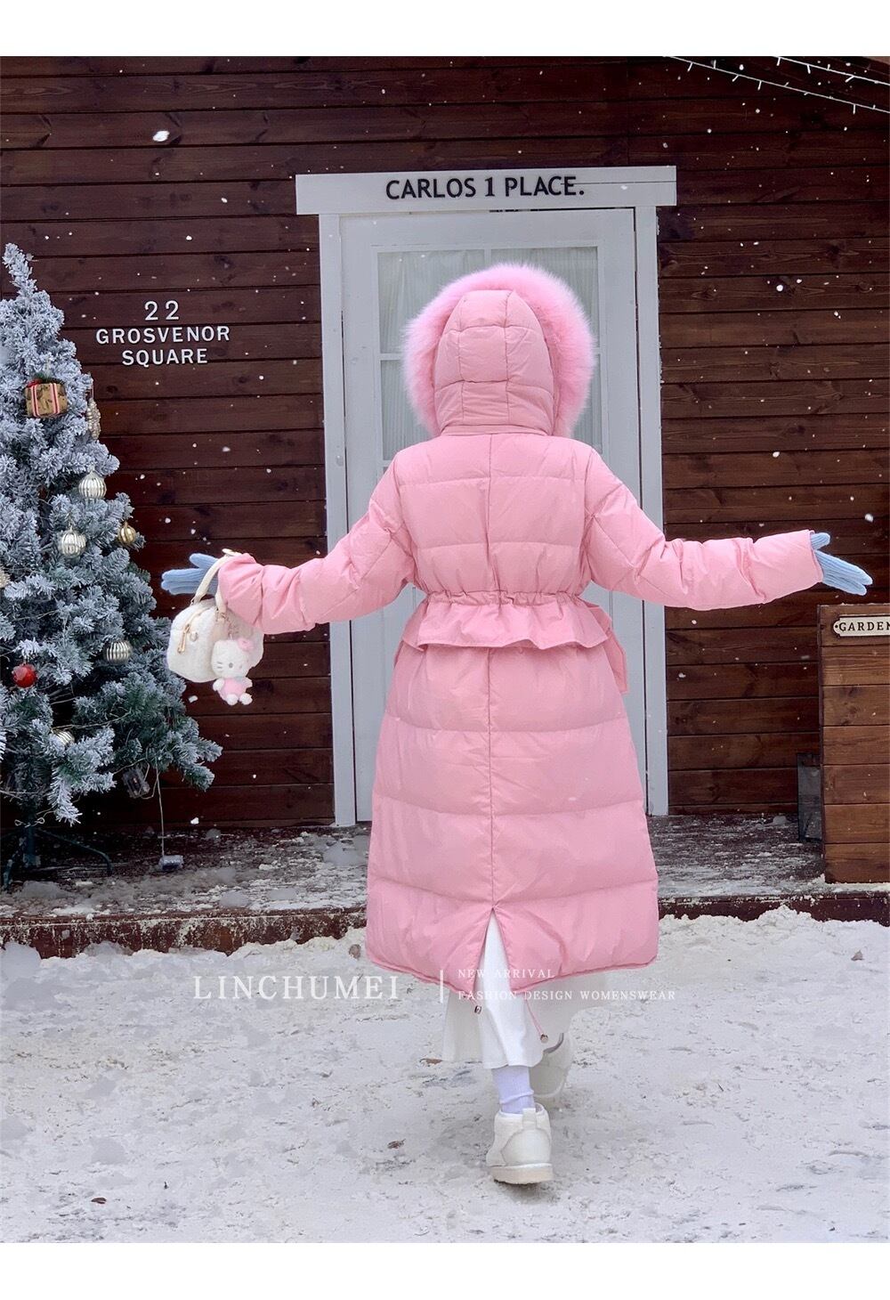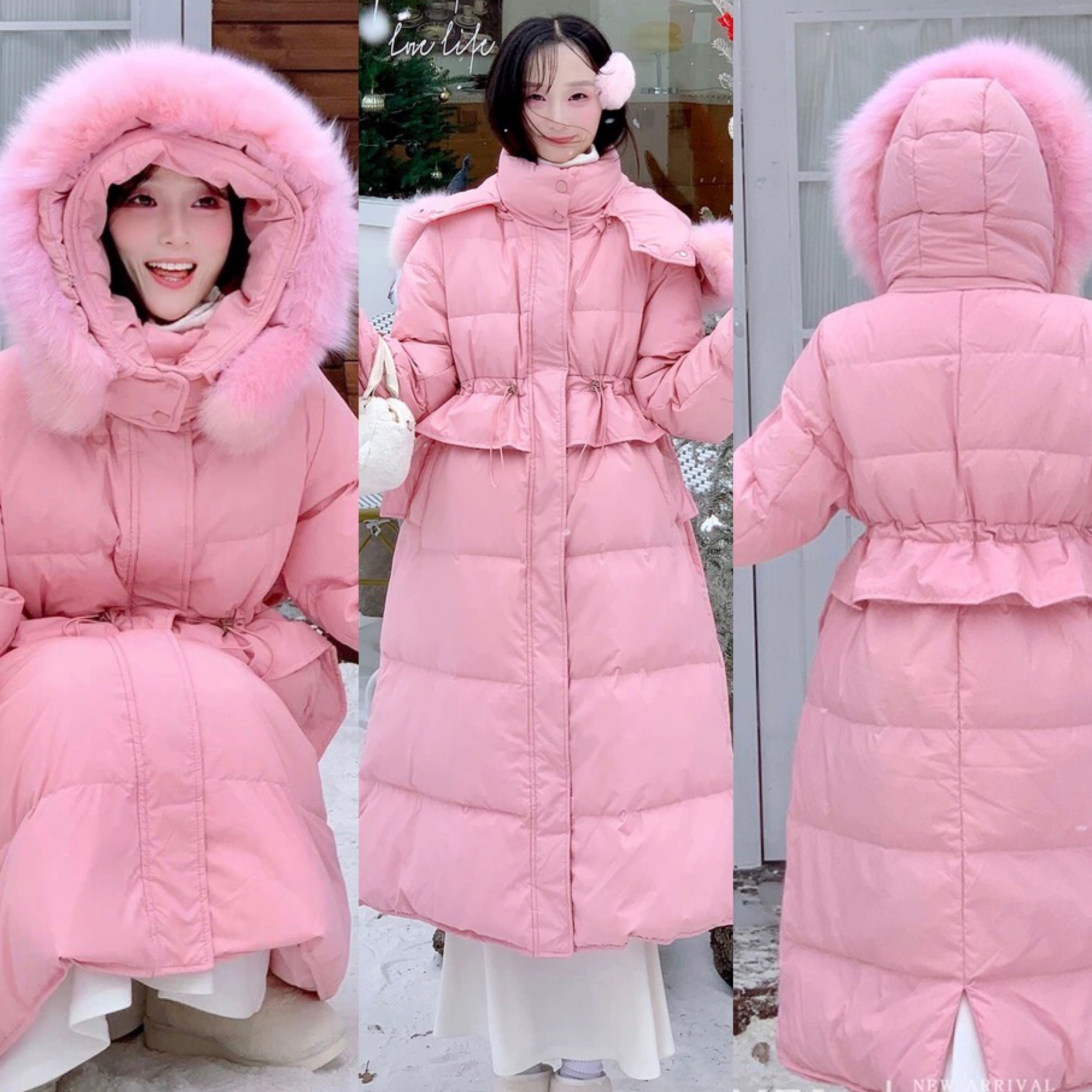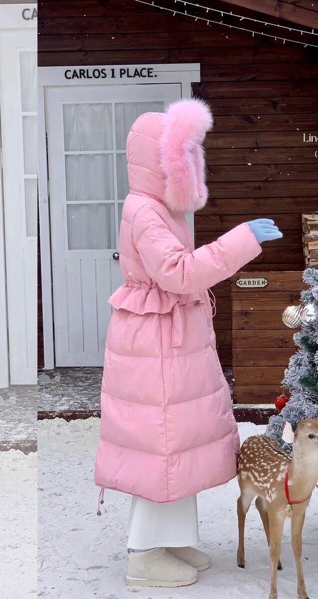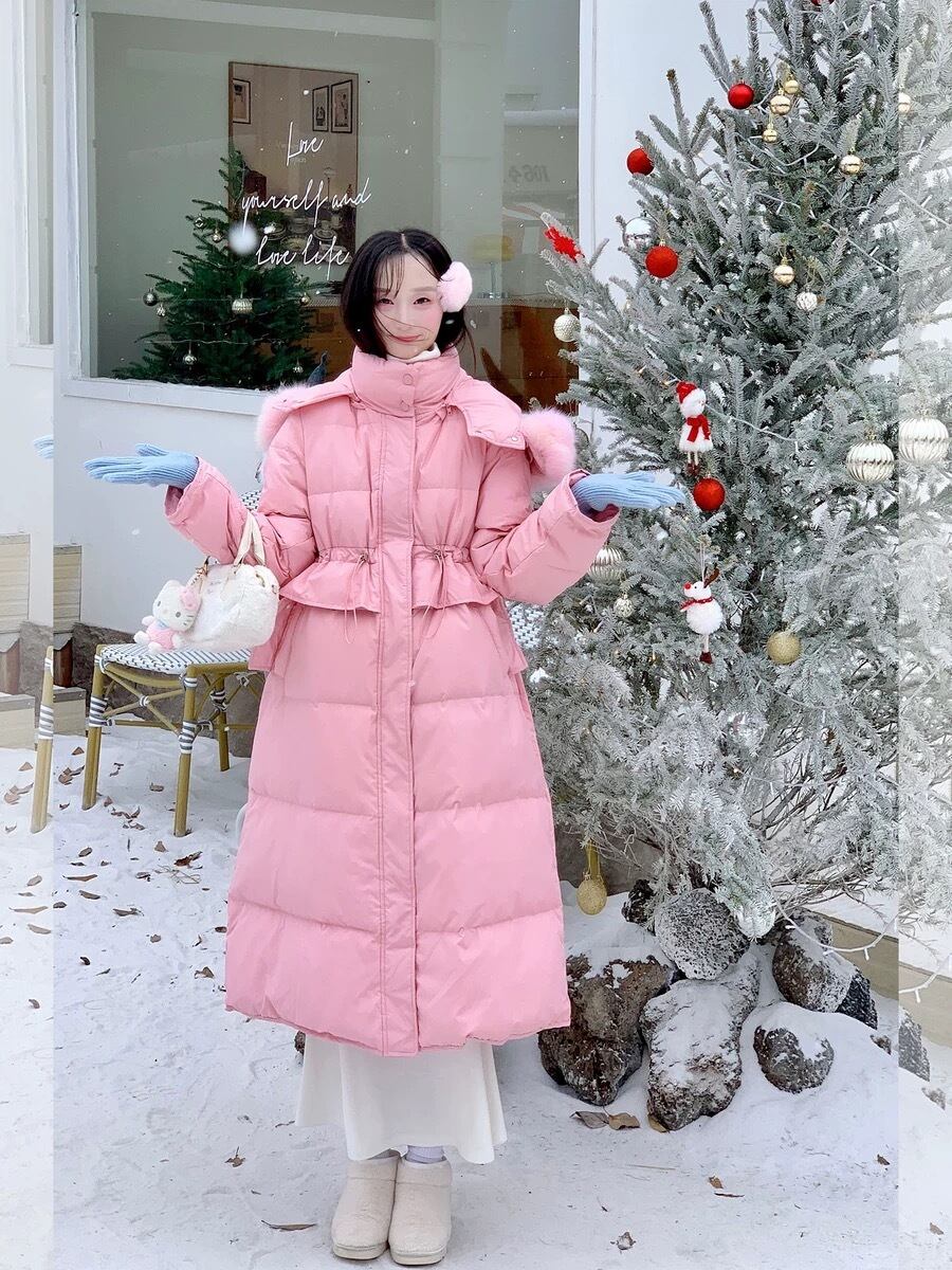 アウター コート フード パーカー ピンク フリル ファー ダウン