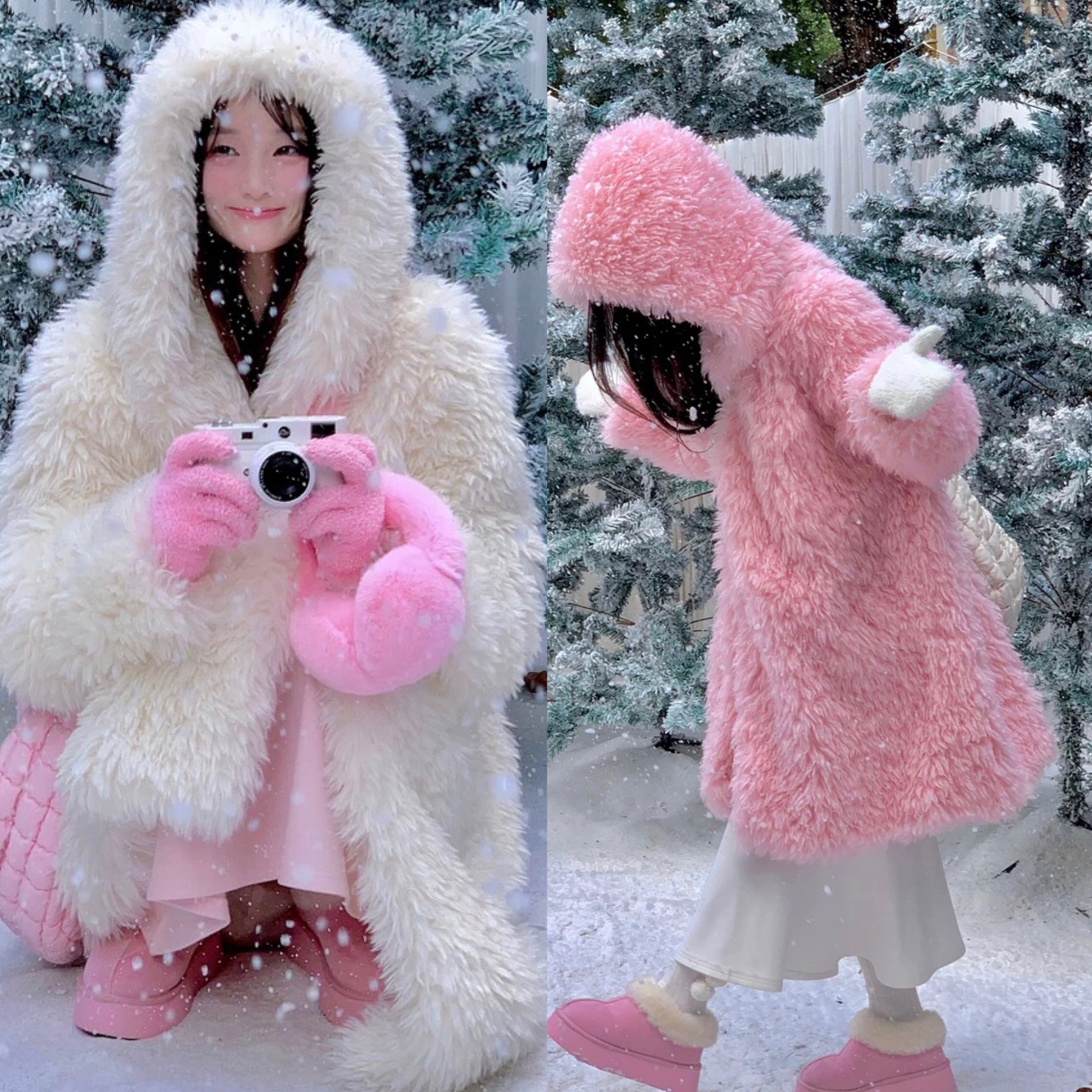 ピンク 白 フード パーカー コート アウター ジャケット ワンピース カーディガン