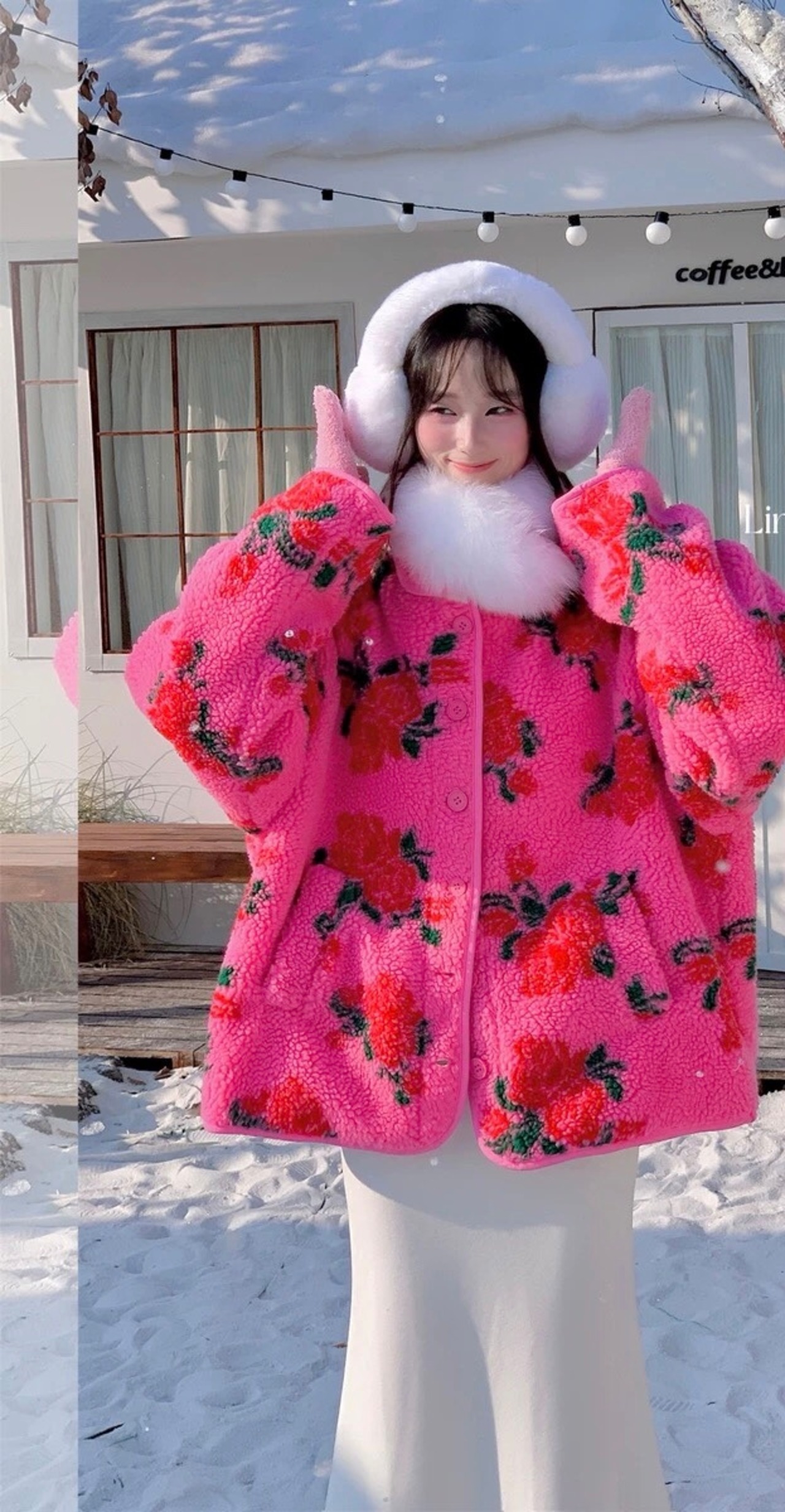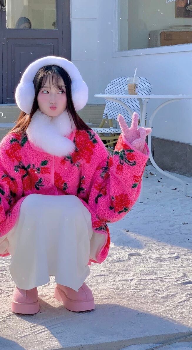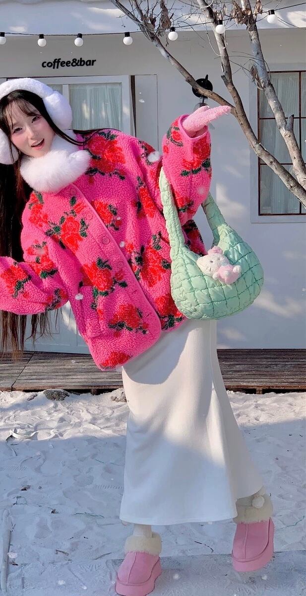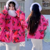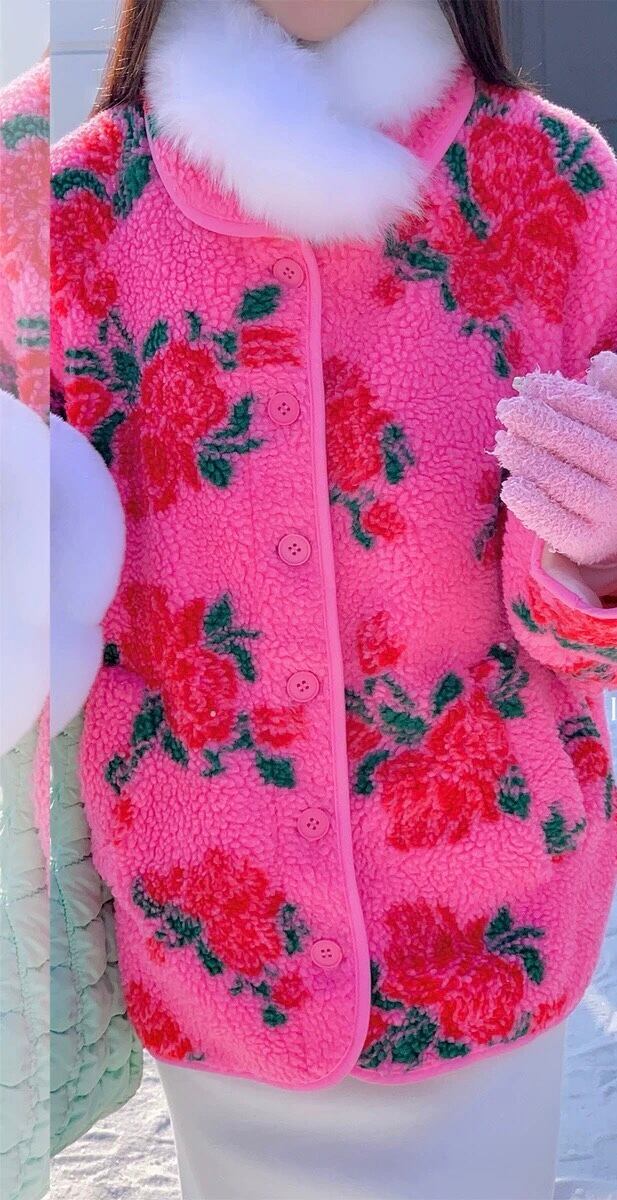 アウター コート ジャケット フリース 花柄 ピンク フラワー ゆったり
