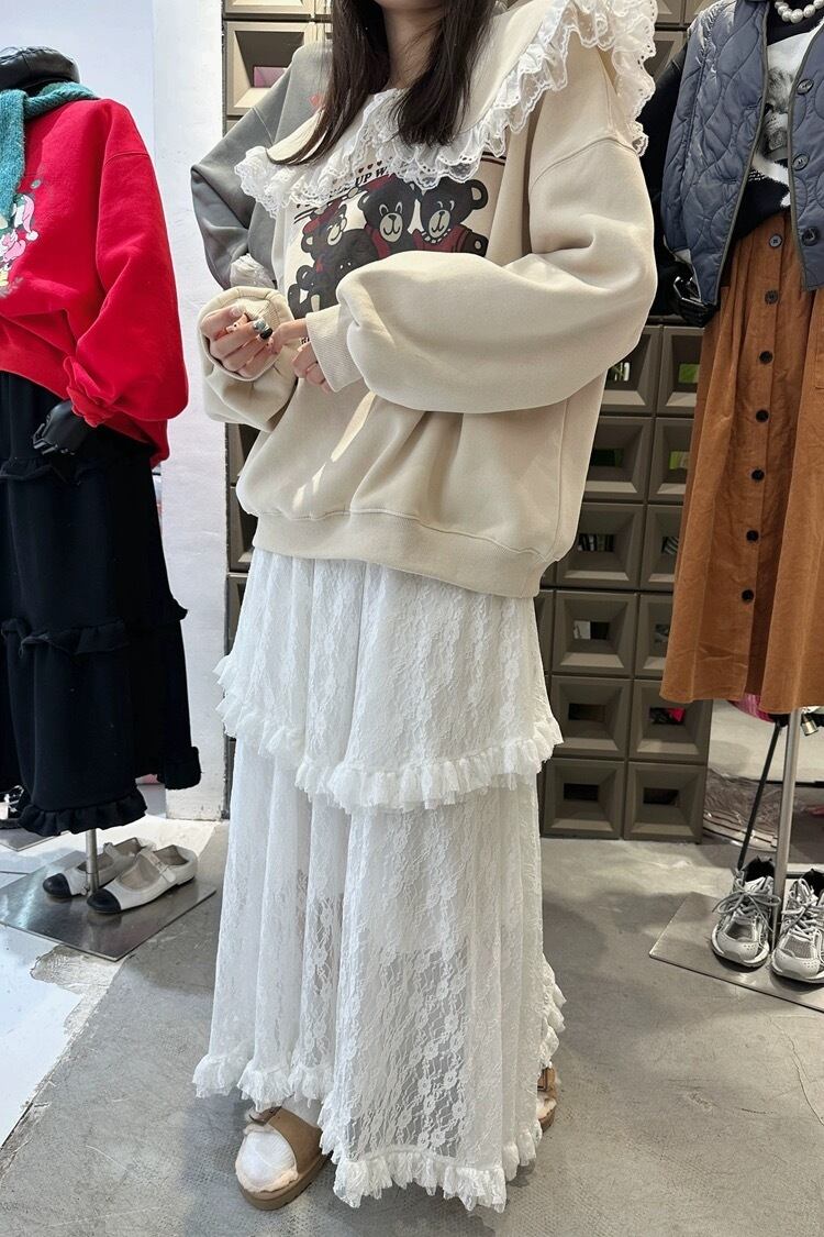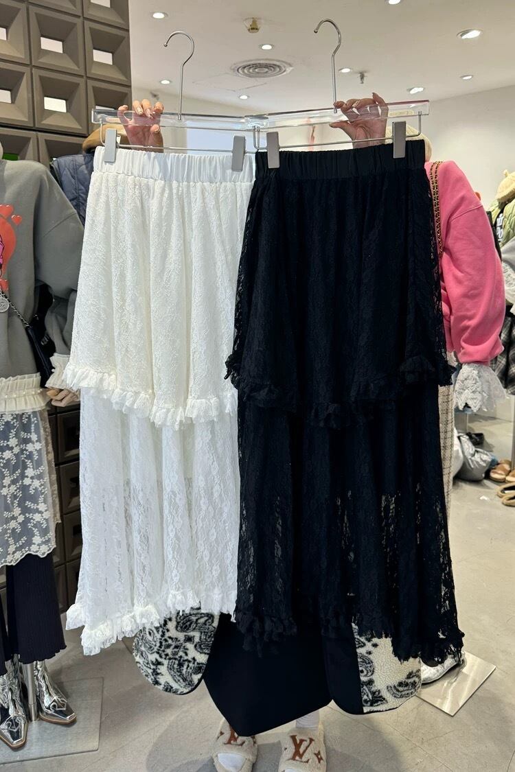 スカート 黒 レース 白 カジュアル シンプル ガーリー